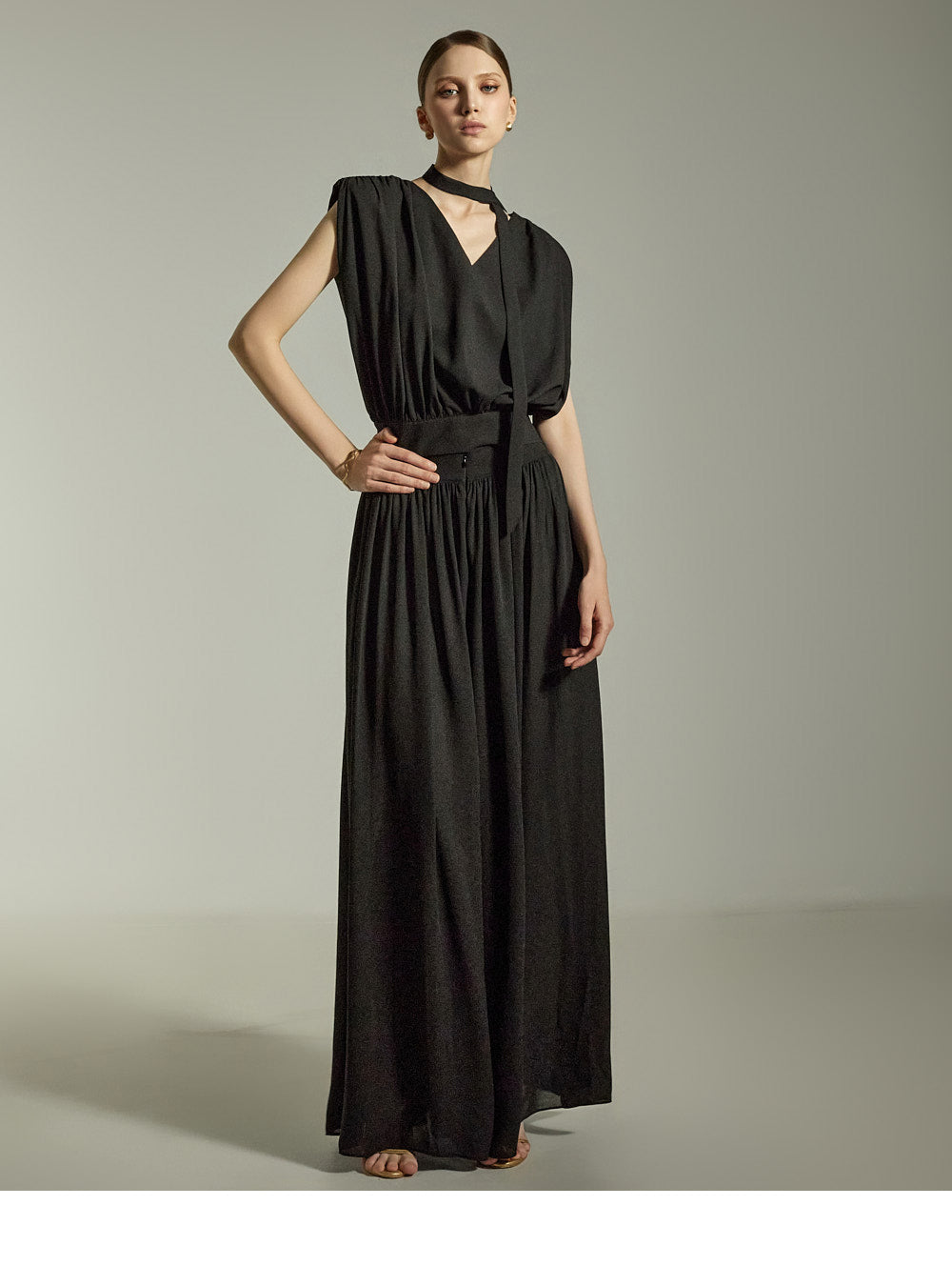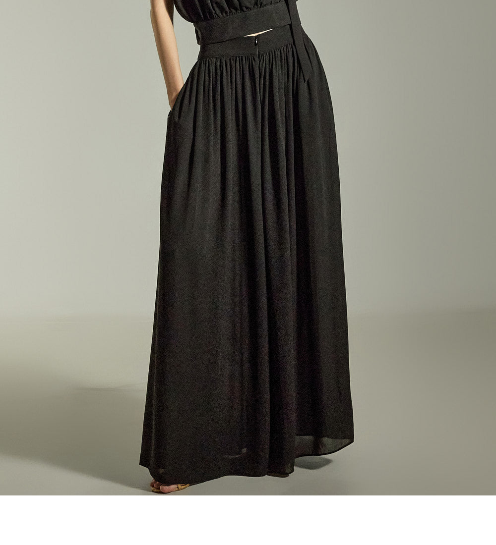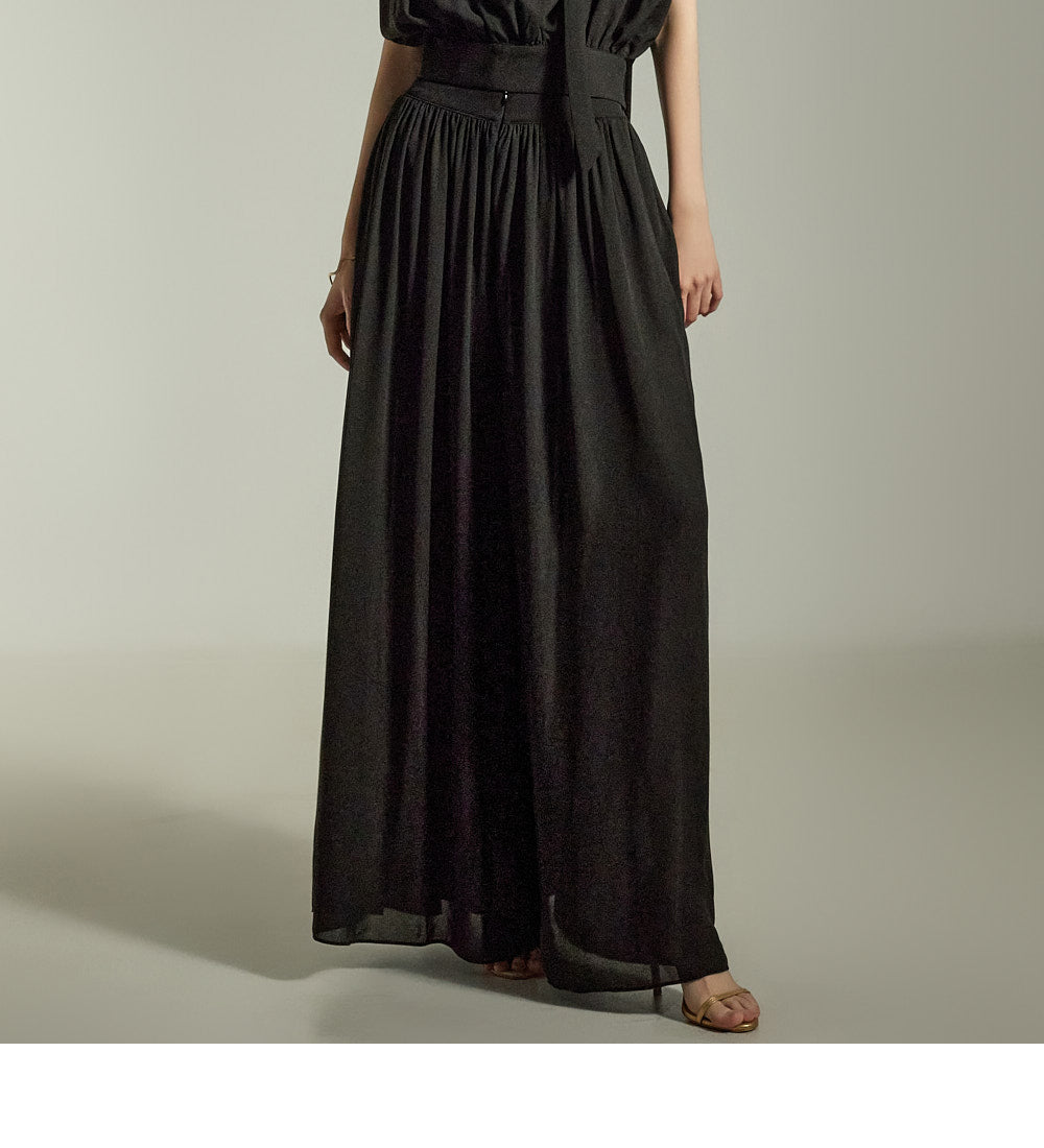 The loose wide-leg silhouette creates a graceful and stylish outline,