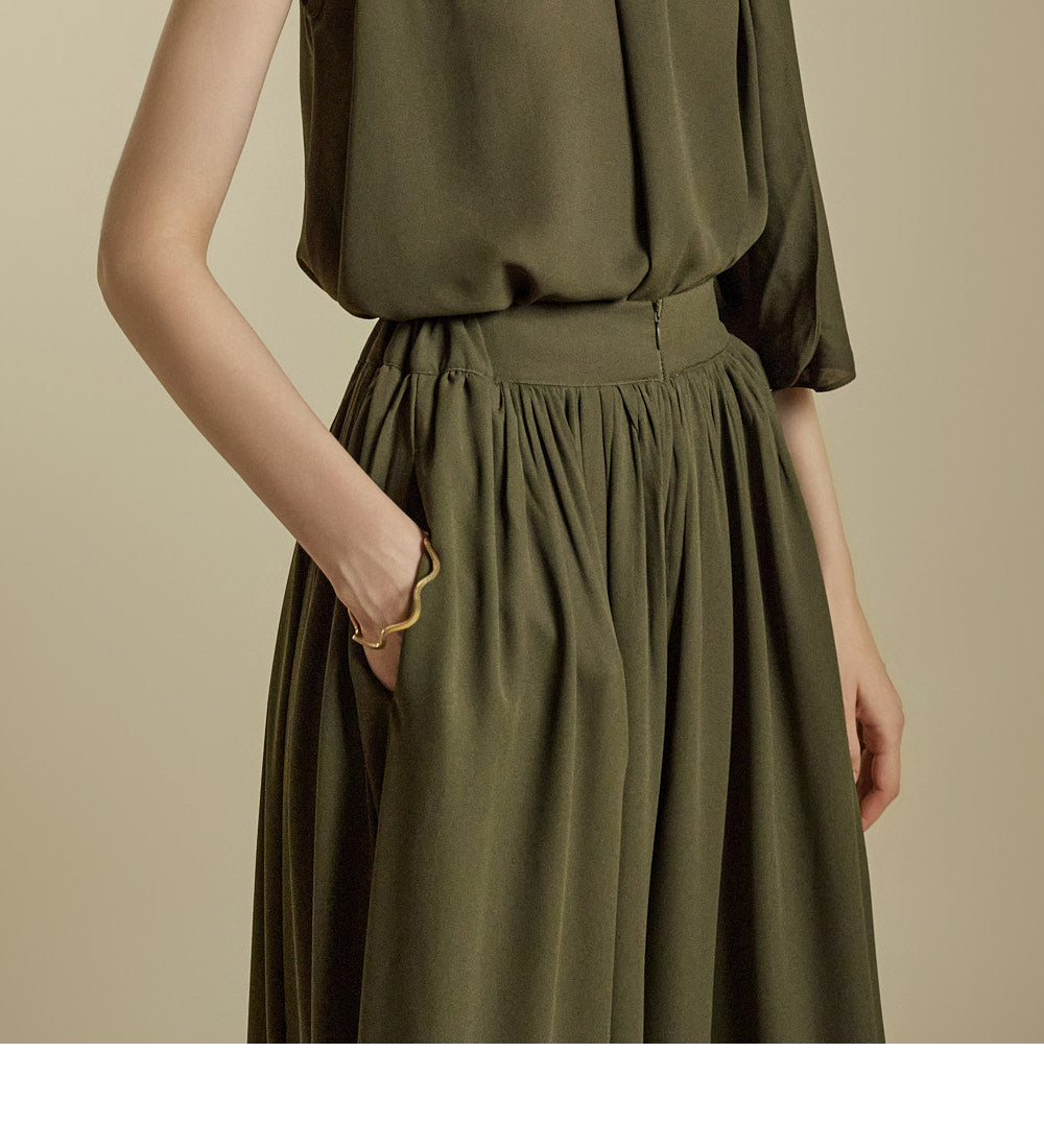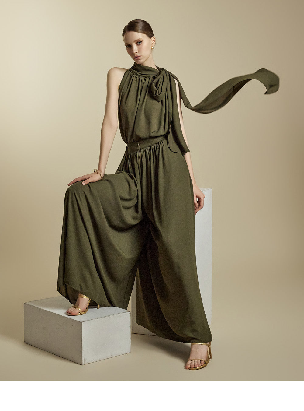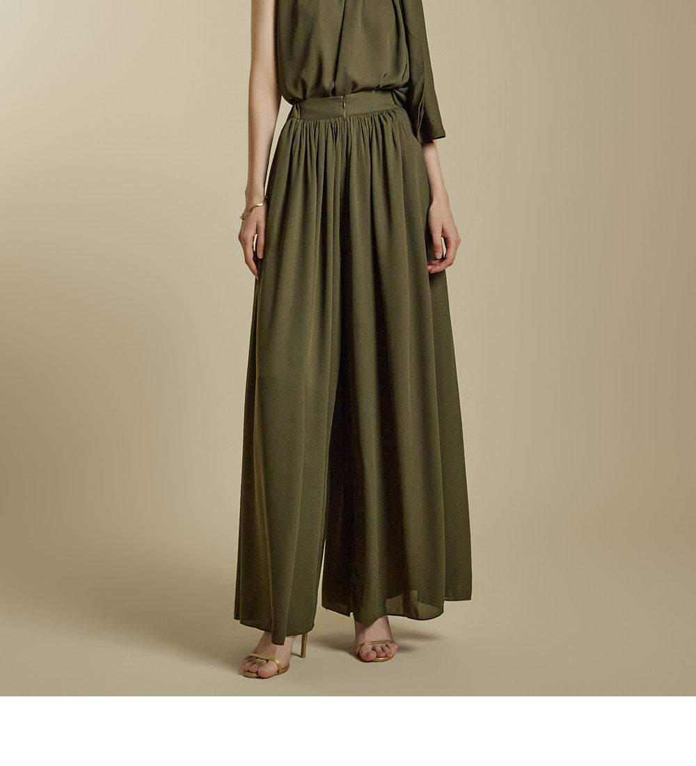 The loose wide-leg silhouette creates a graceful and stylish outline,