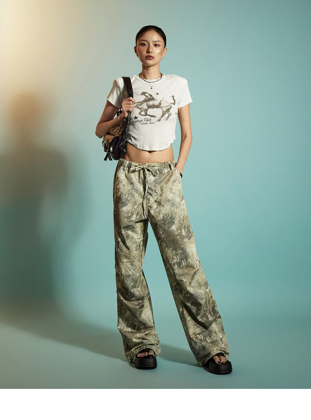 while the elastic waistband with drawstring allows for an adjustable and secure fit.