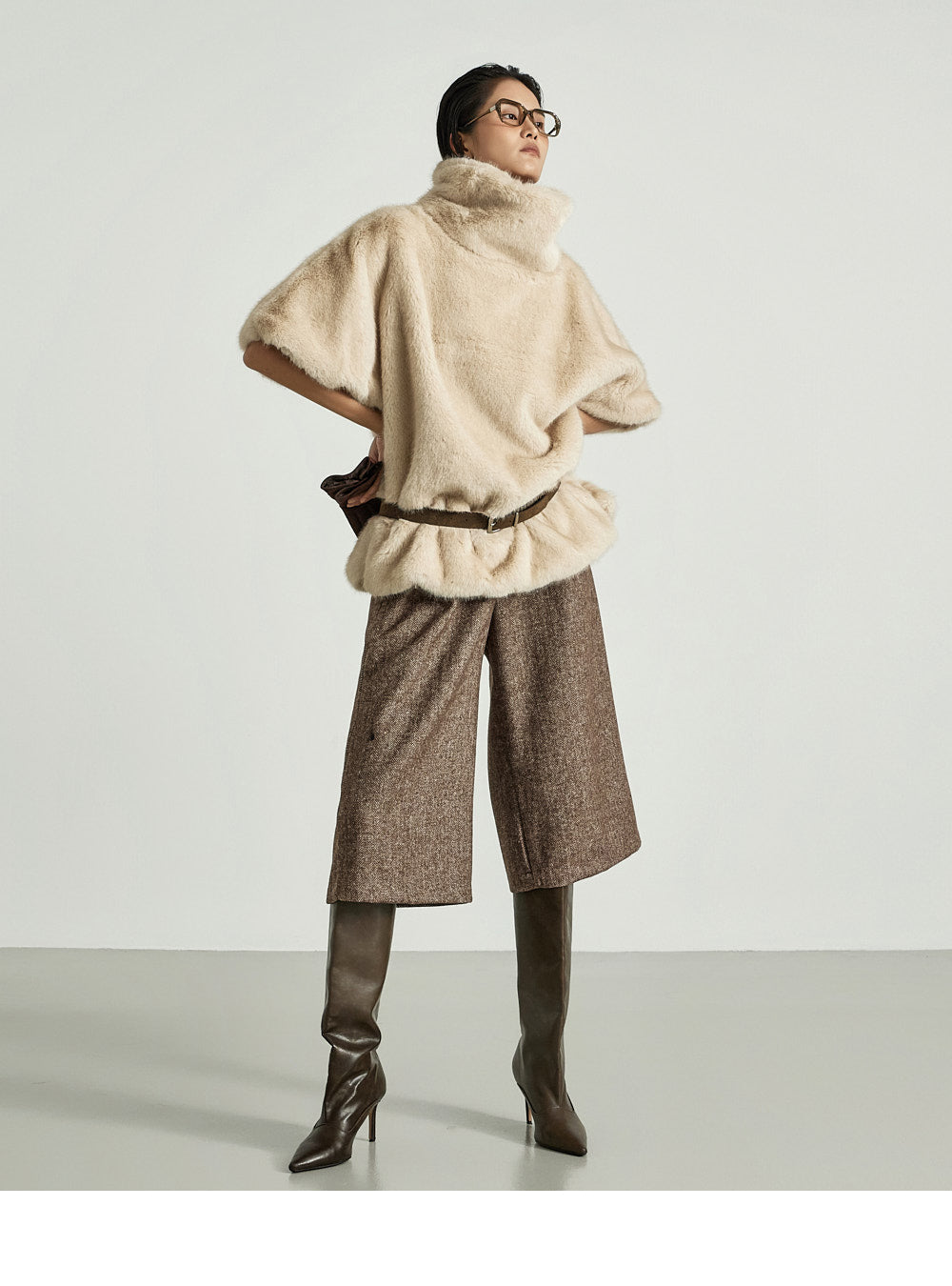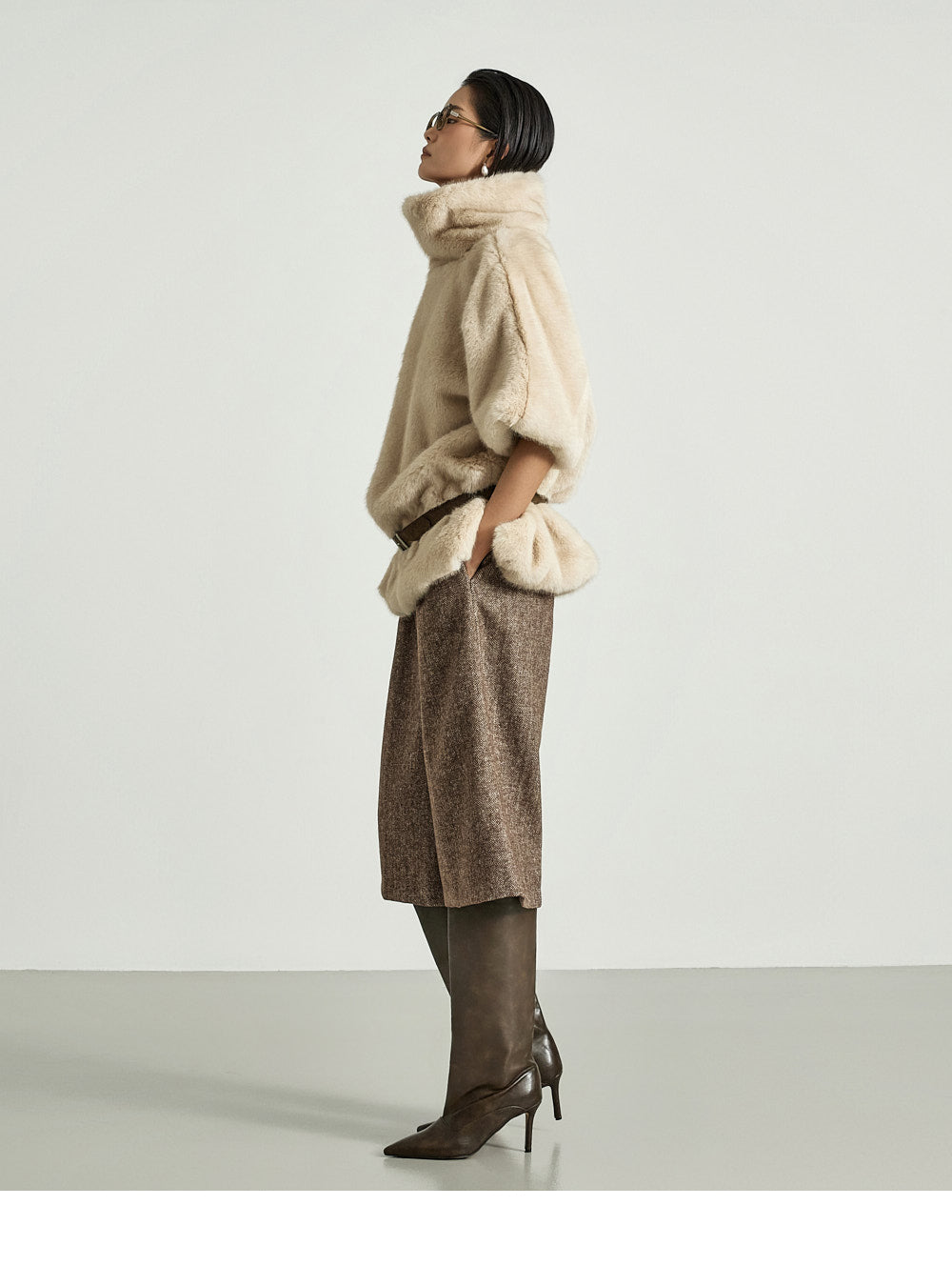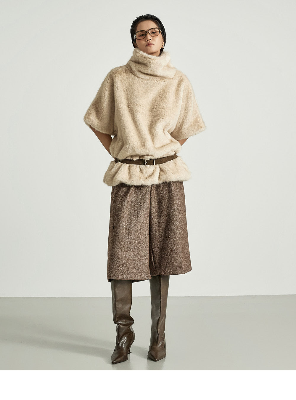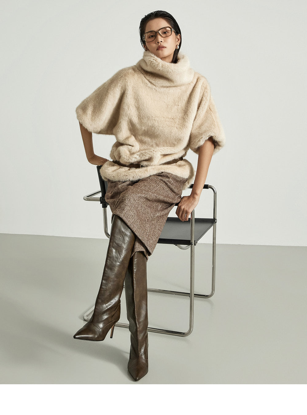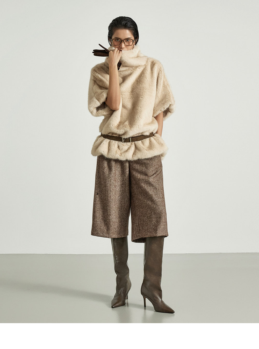 The 173cm model is wearing size ONE in BROWN.