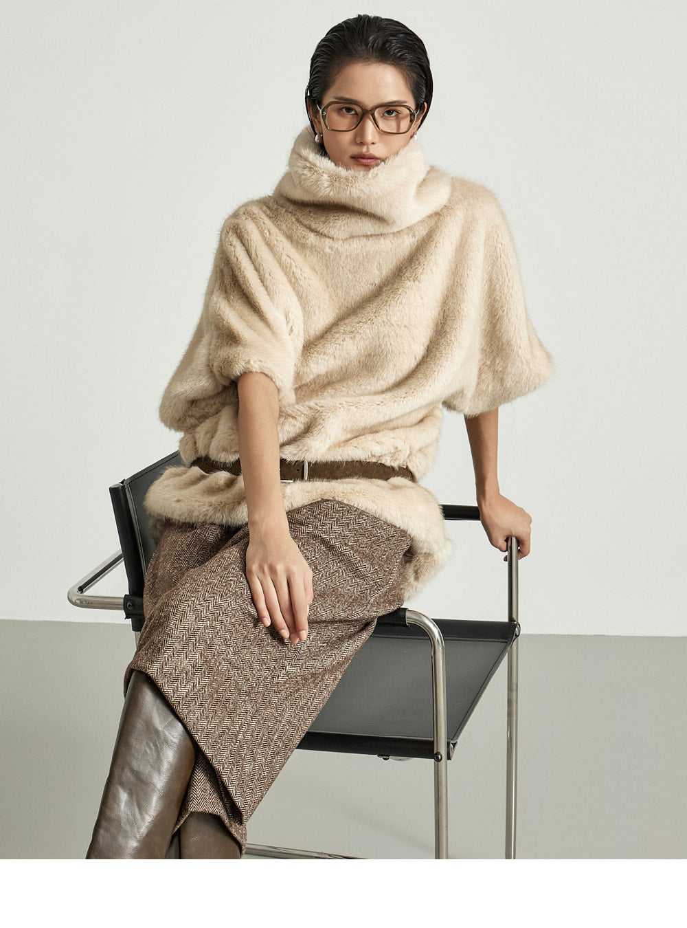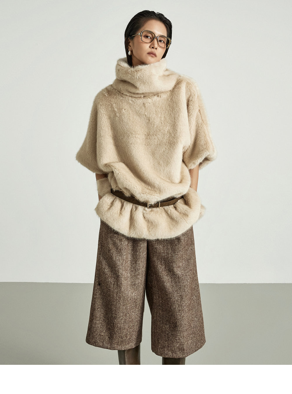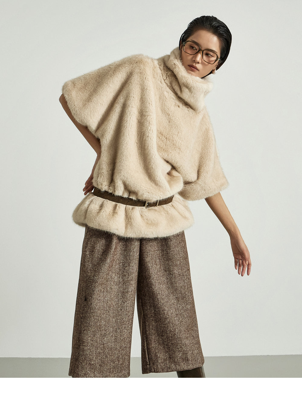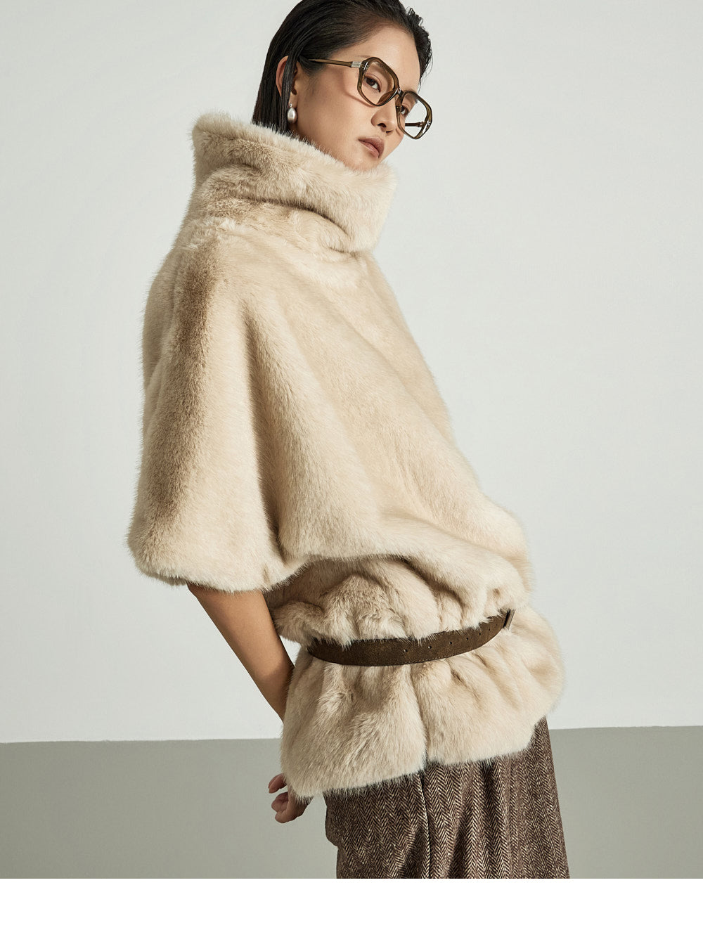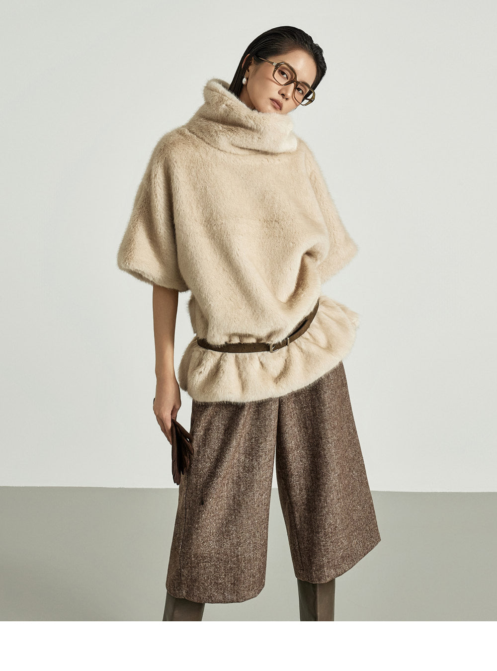 The 173cm model is wearing size ONE in BROWN.