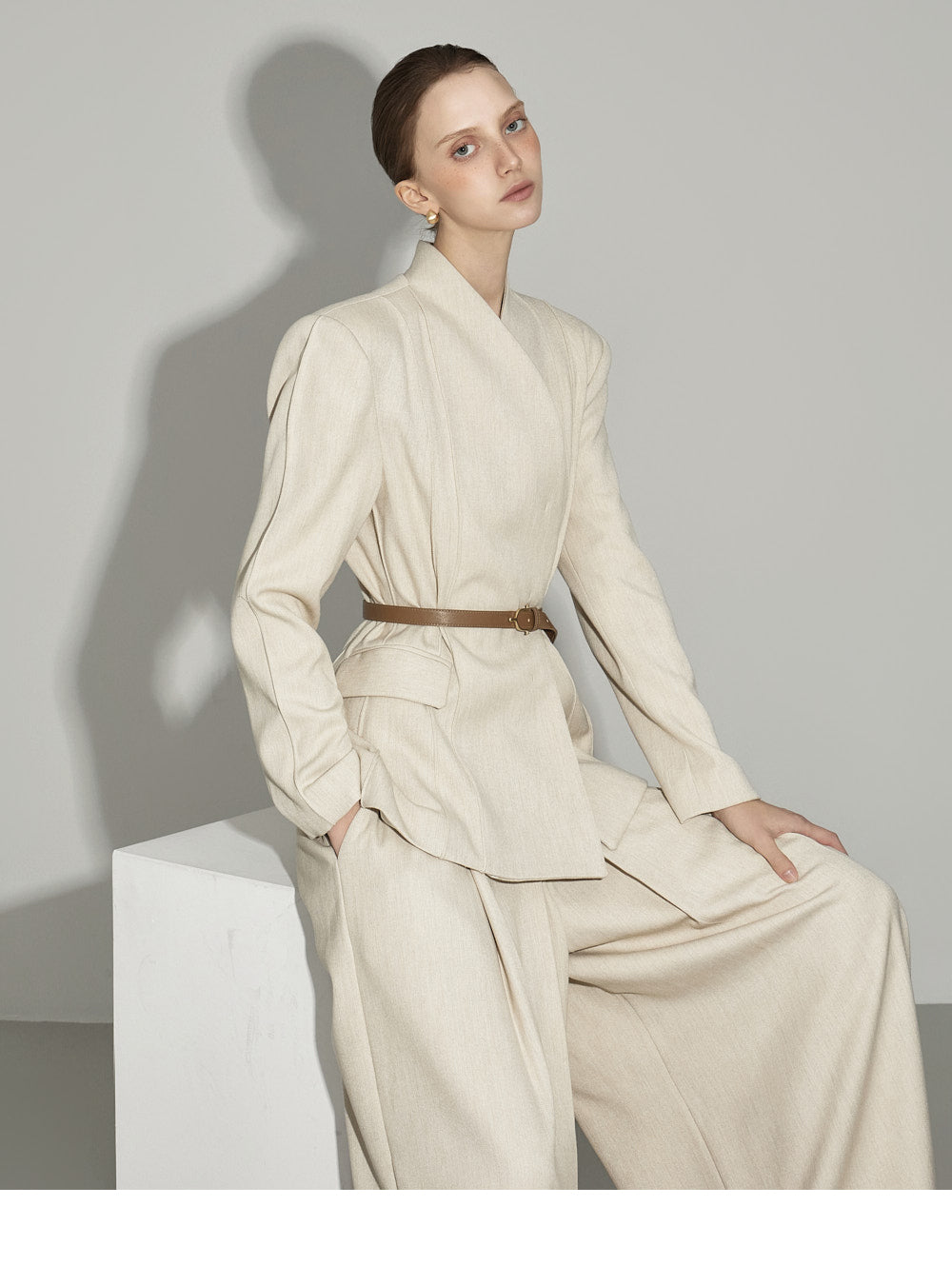 The model is 174cm tall and is wearing size ONE in IVORY.