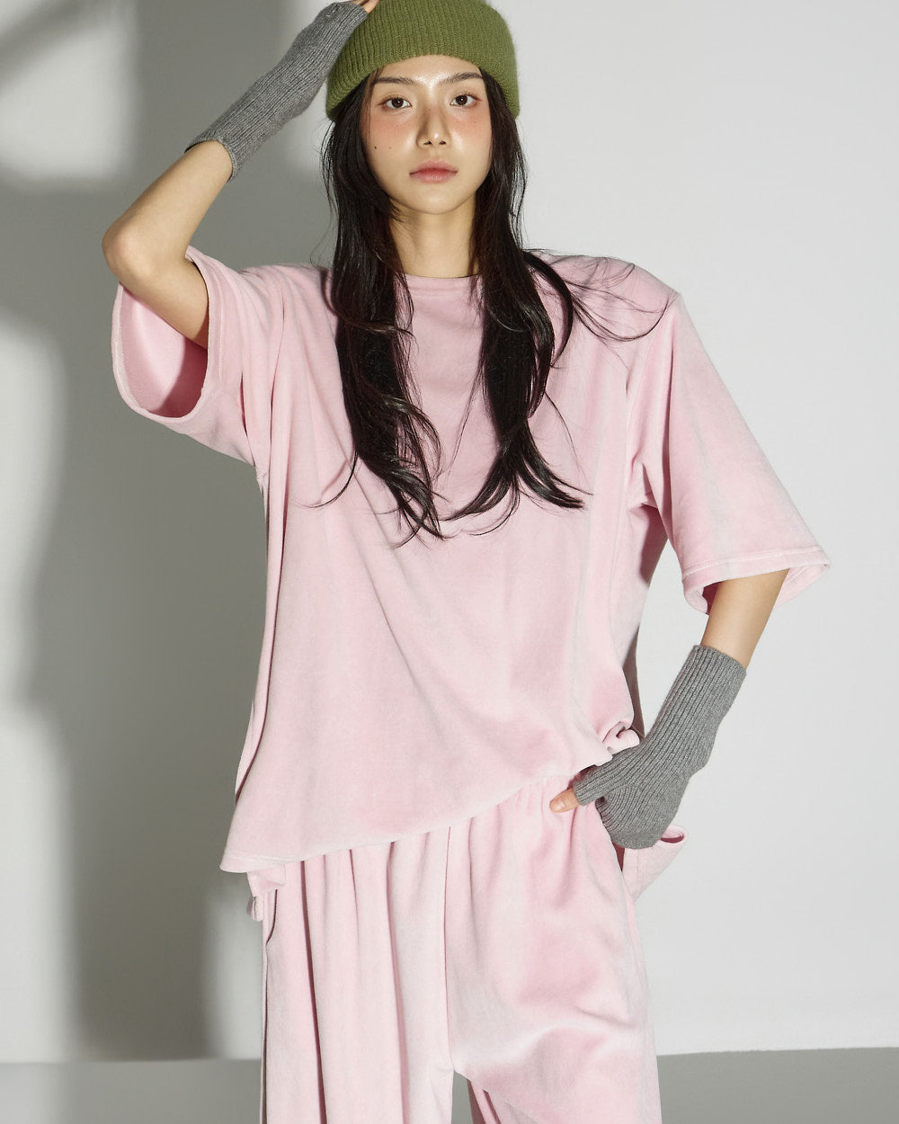 These velvet training pants have a casual vibe.