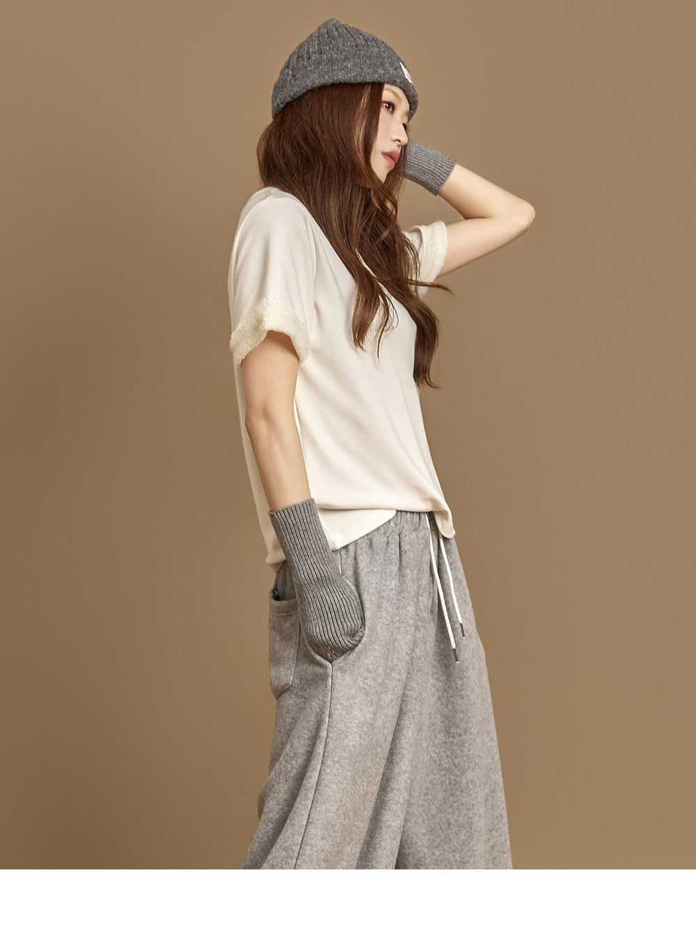 The model is 171cm tall and is wearing size ONE in GRAY.