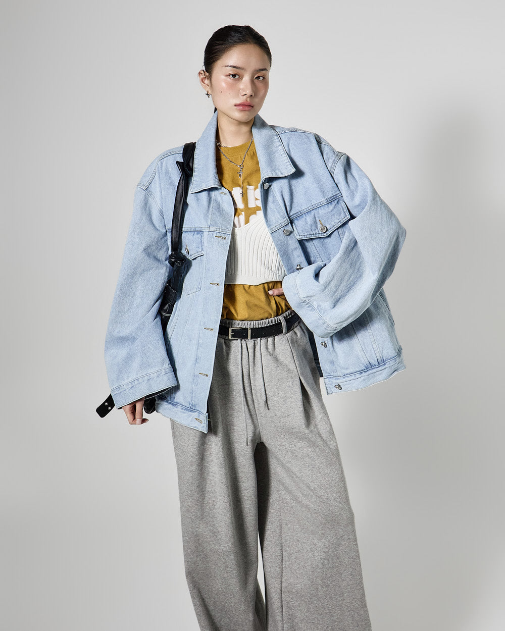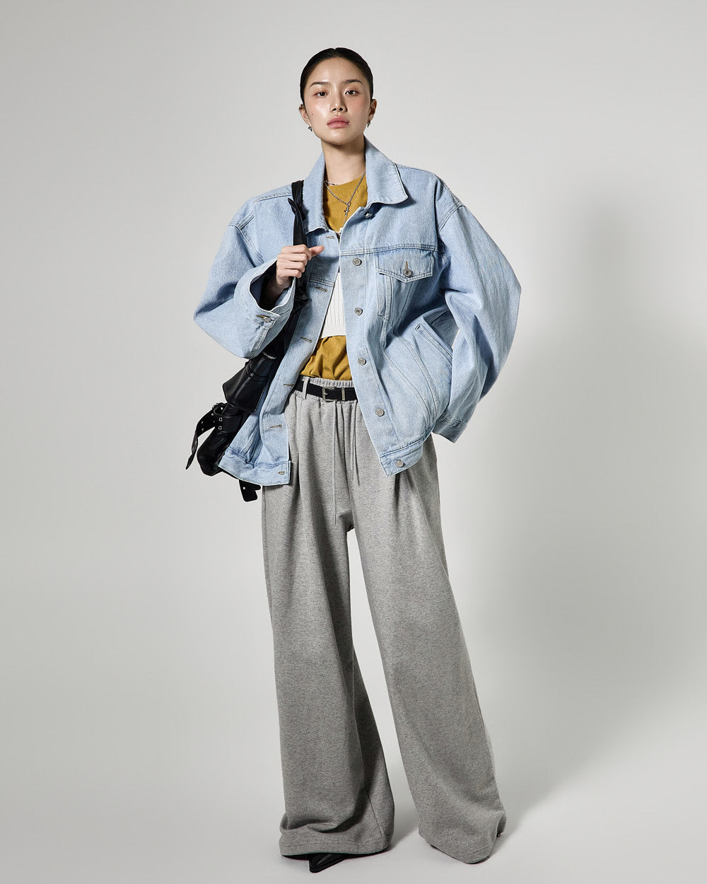 Denim (jeans, coated jeans) and other dark-dyed garments may experience color fading or transfer. Please take extra care before the first wash and while wearing them.
