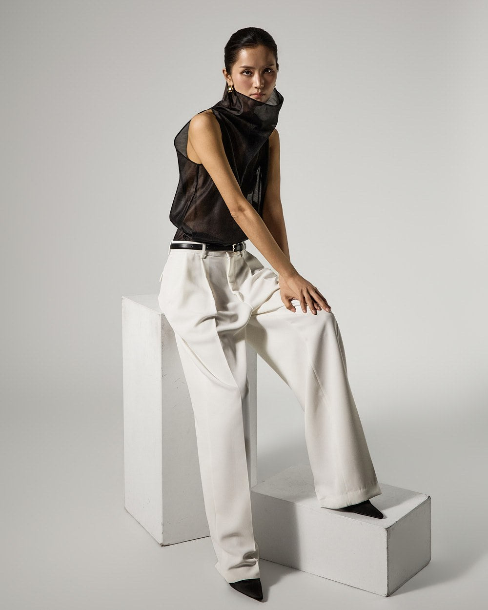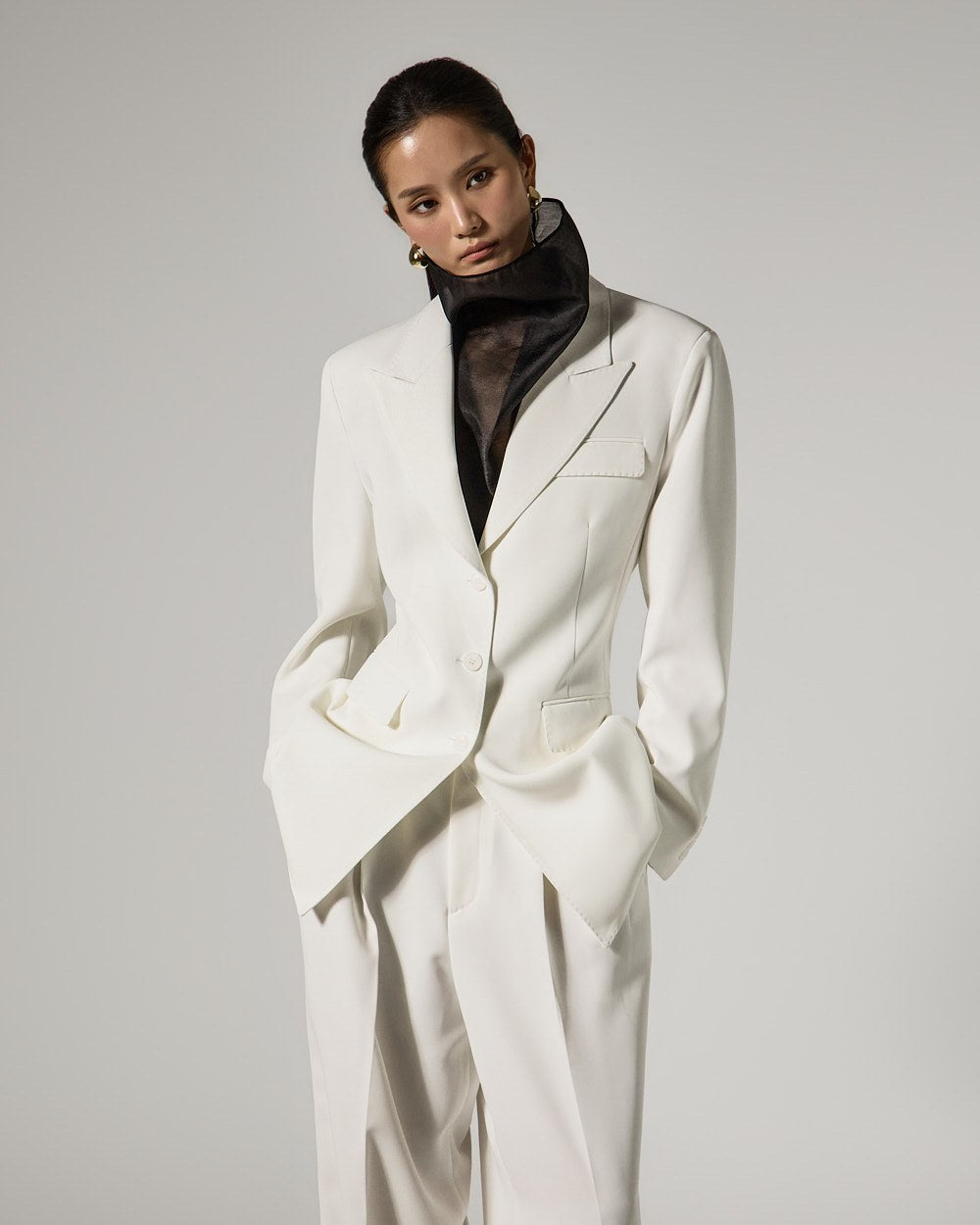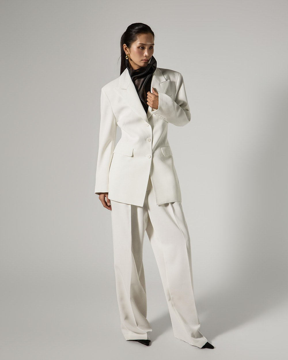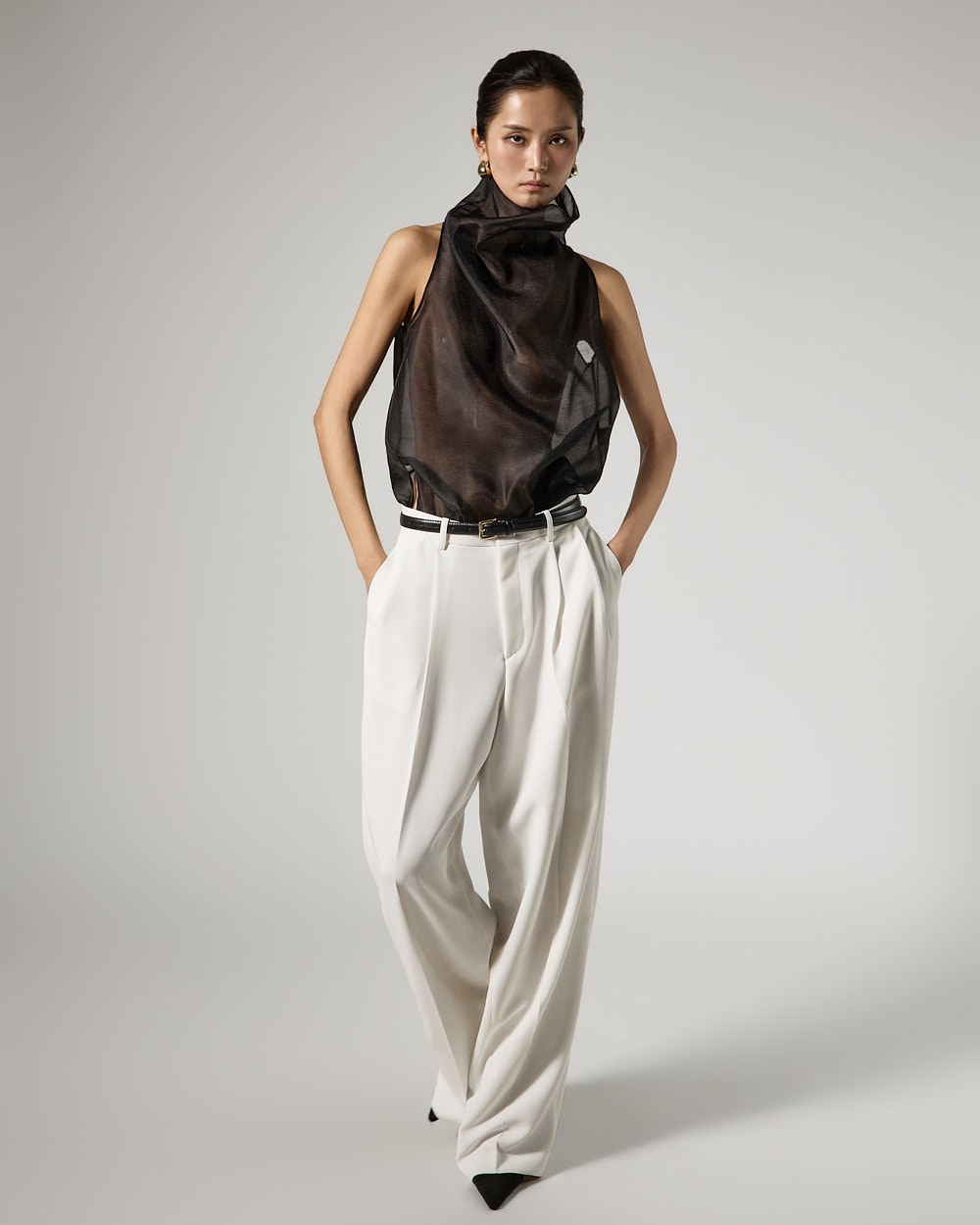These are double-pleat wide slacks with a modern vibe.