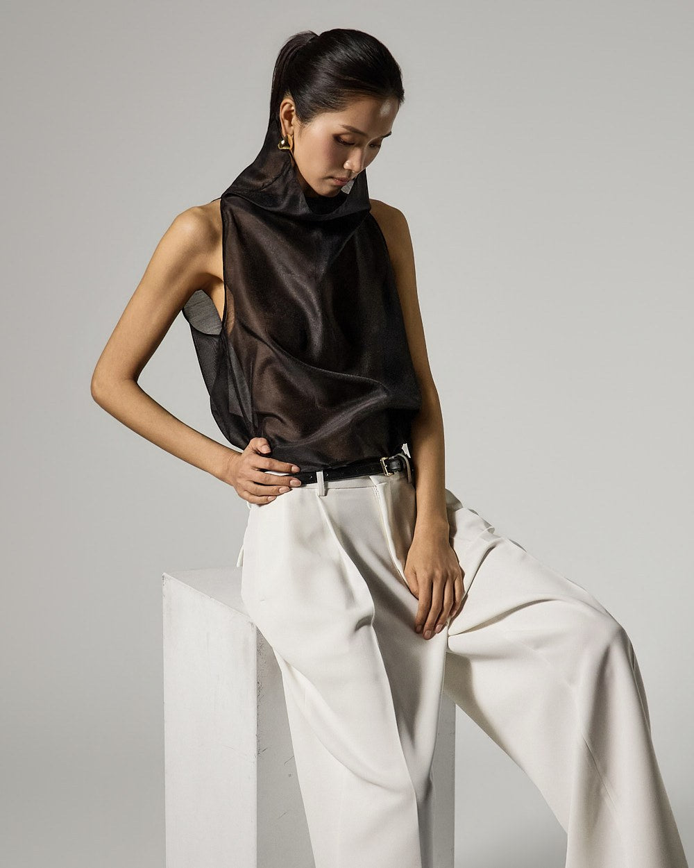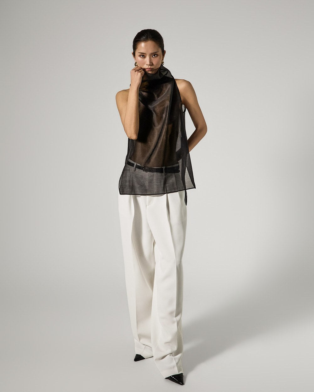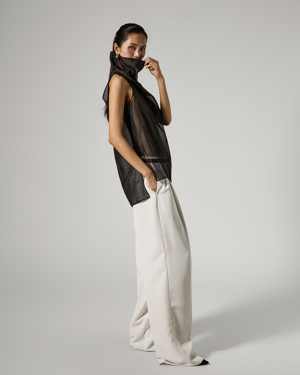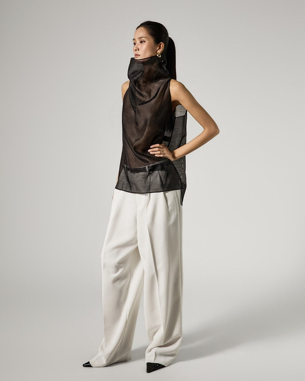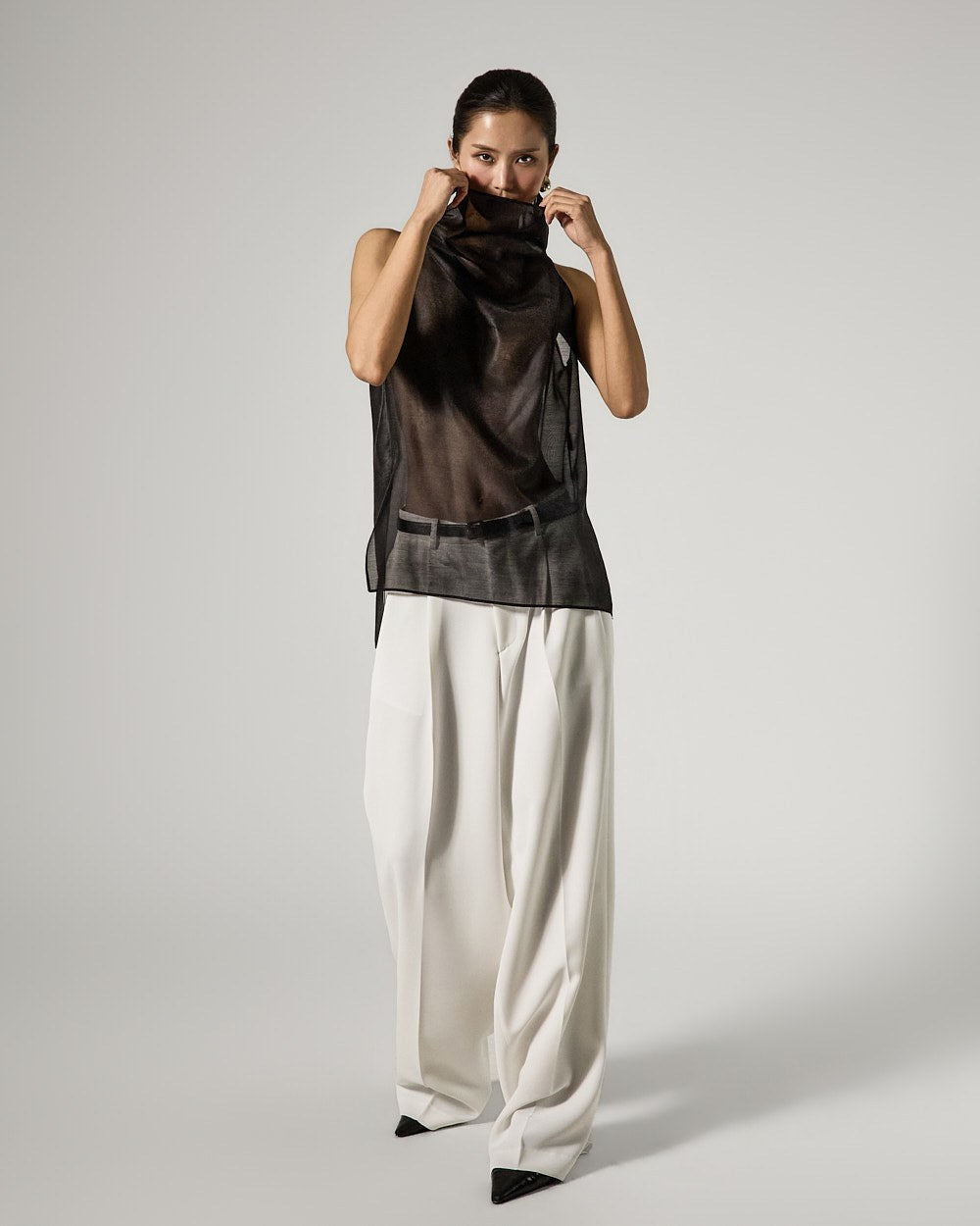 These are double-pleat wide slacks with a modern vibe.