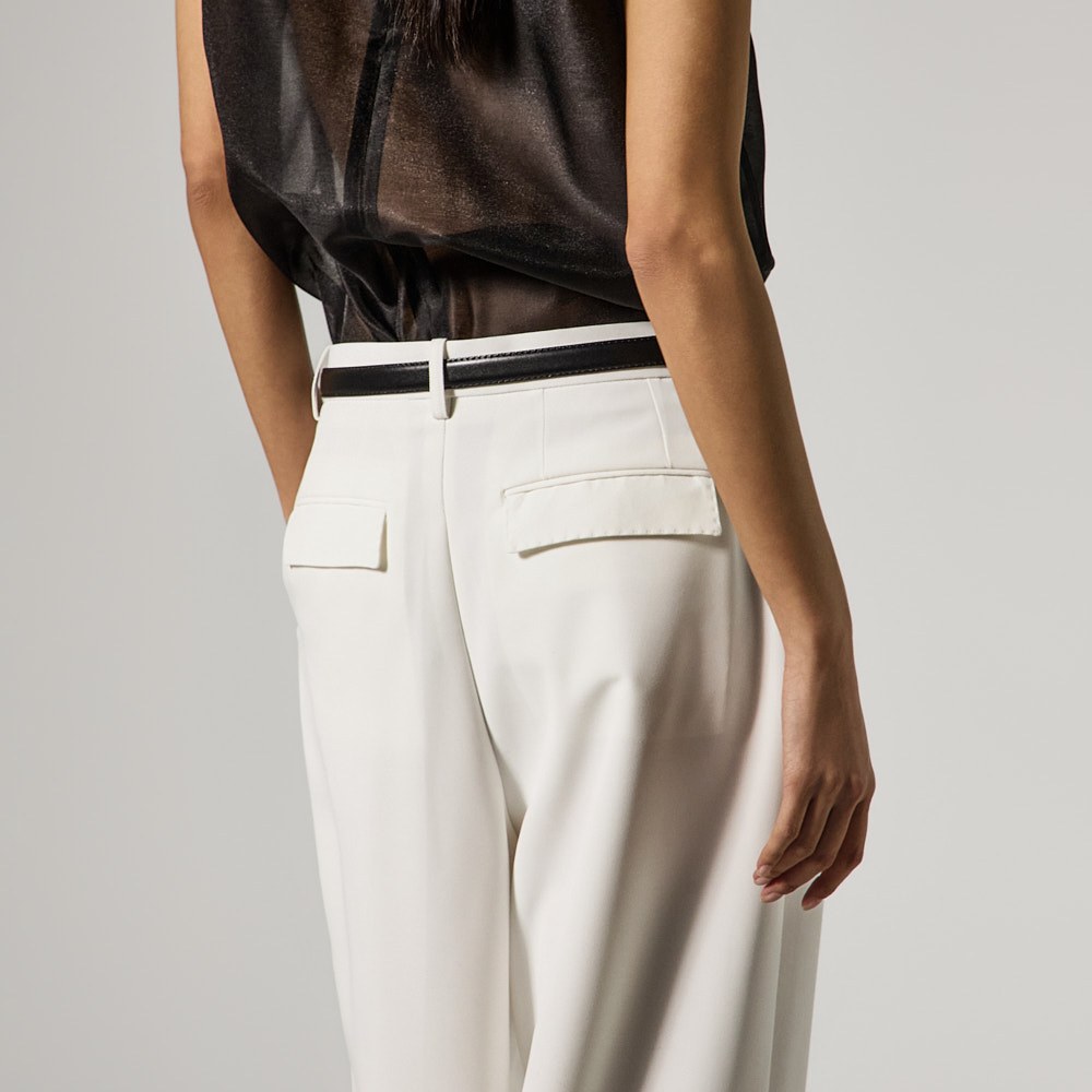 The wide-fit silhouette allows for a relaxed drape, while the front double-pleat detail creates a sophisticated silhouette.