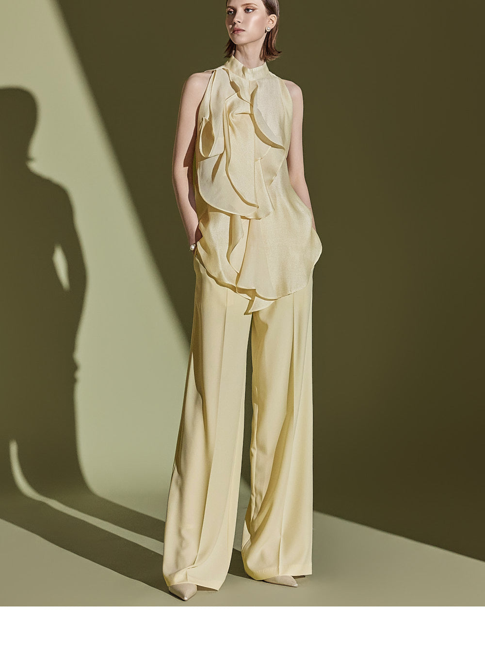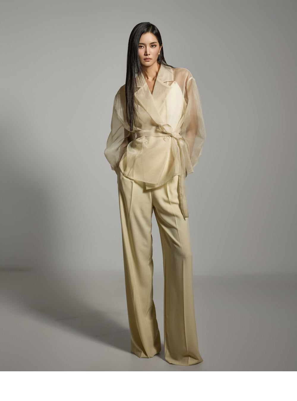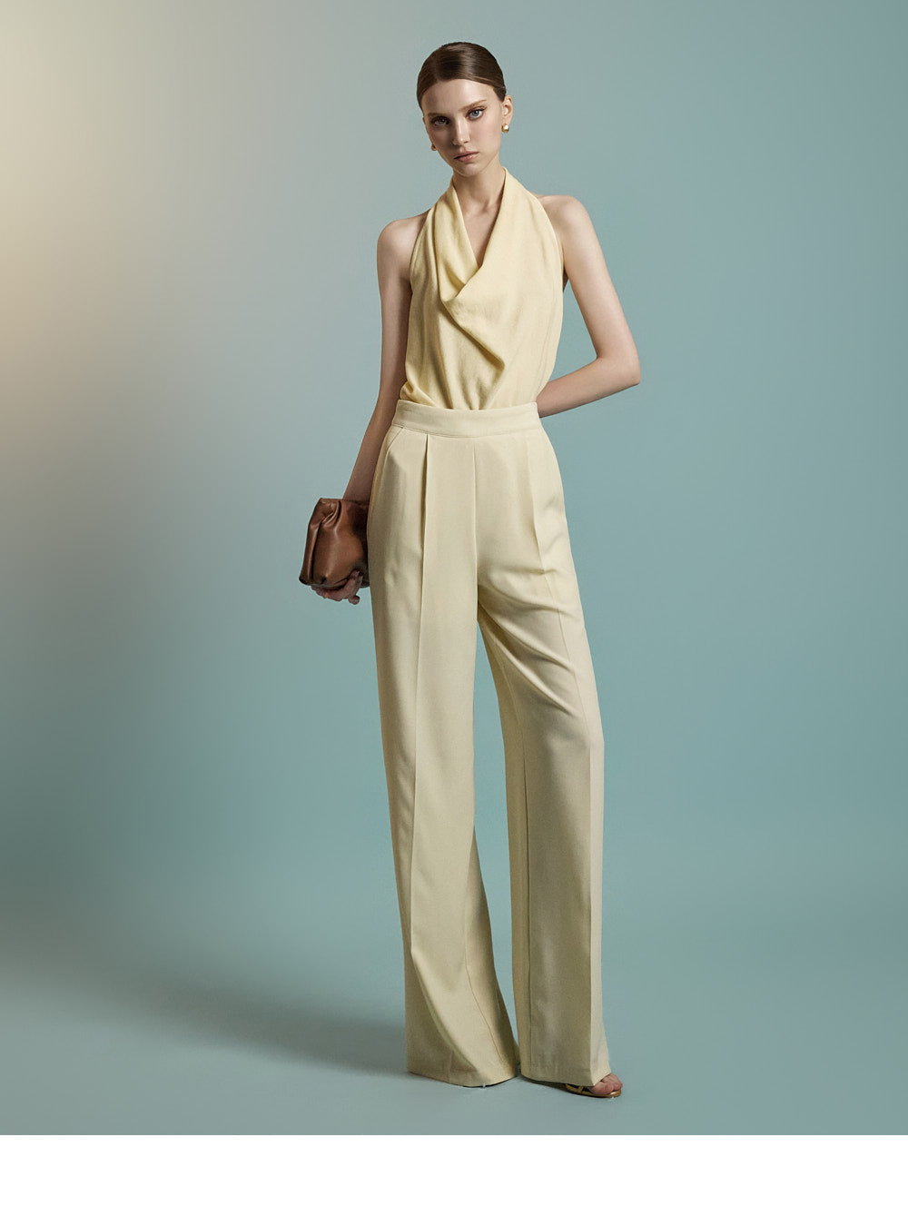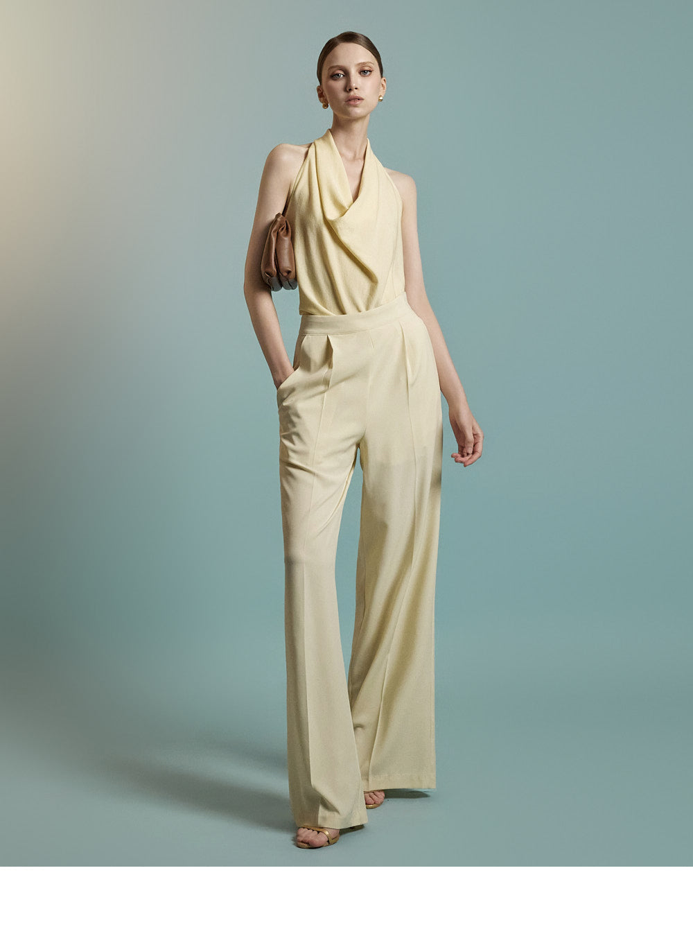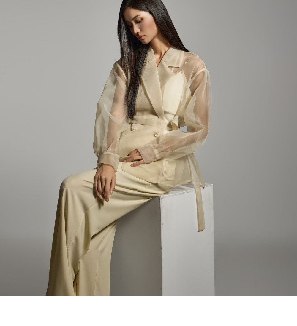 The model, 174cm tall, wears size S in YELLOW BEIGE color.