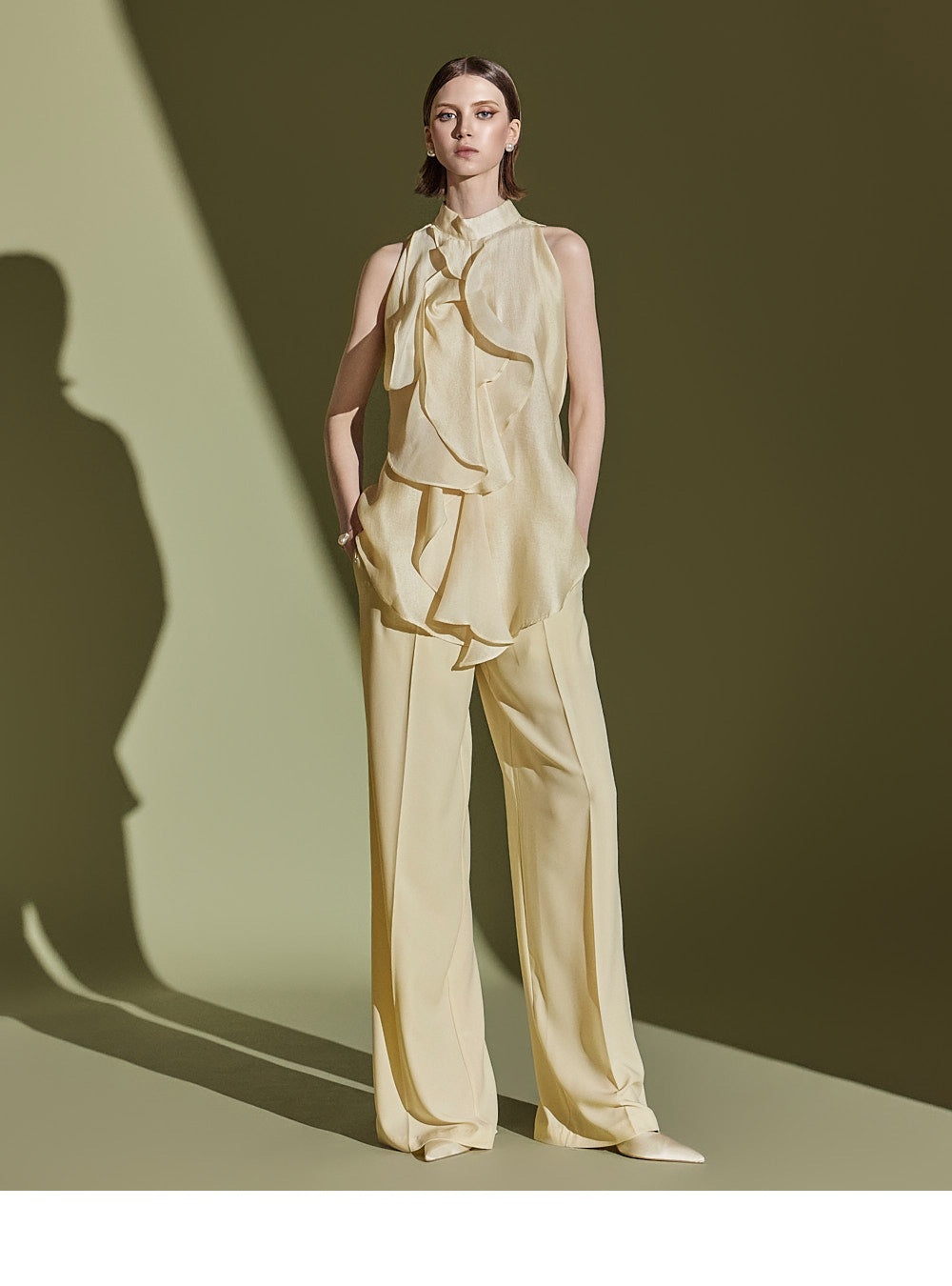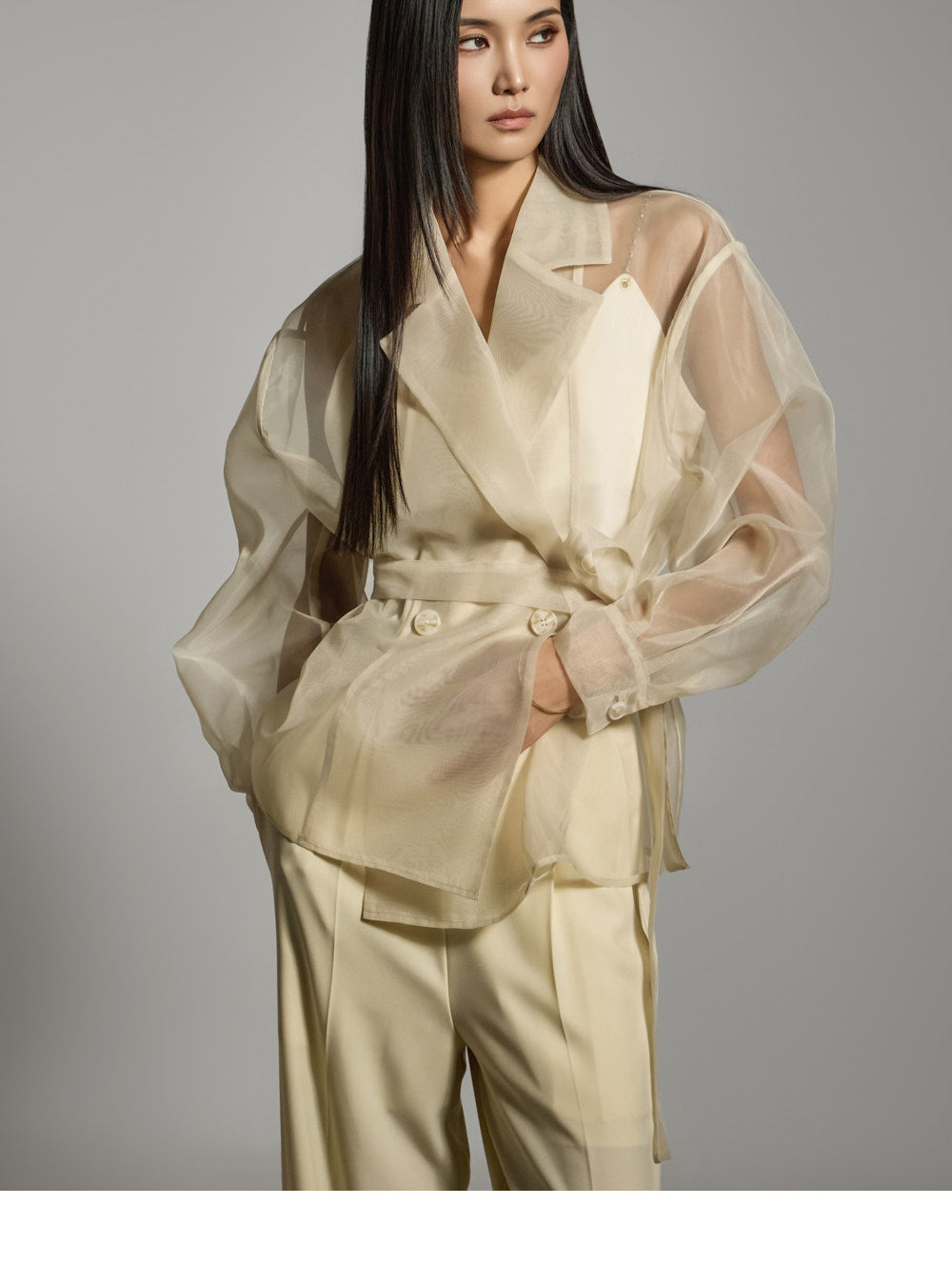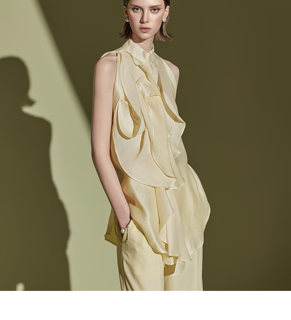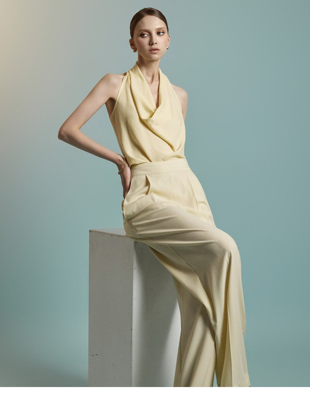 The model, 174cm tall, wears size S in YELLOW BEIGE color.