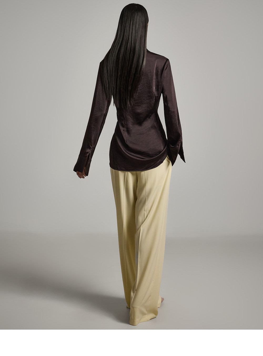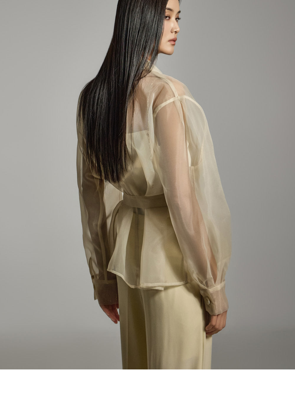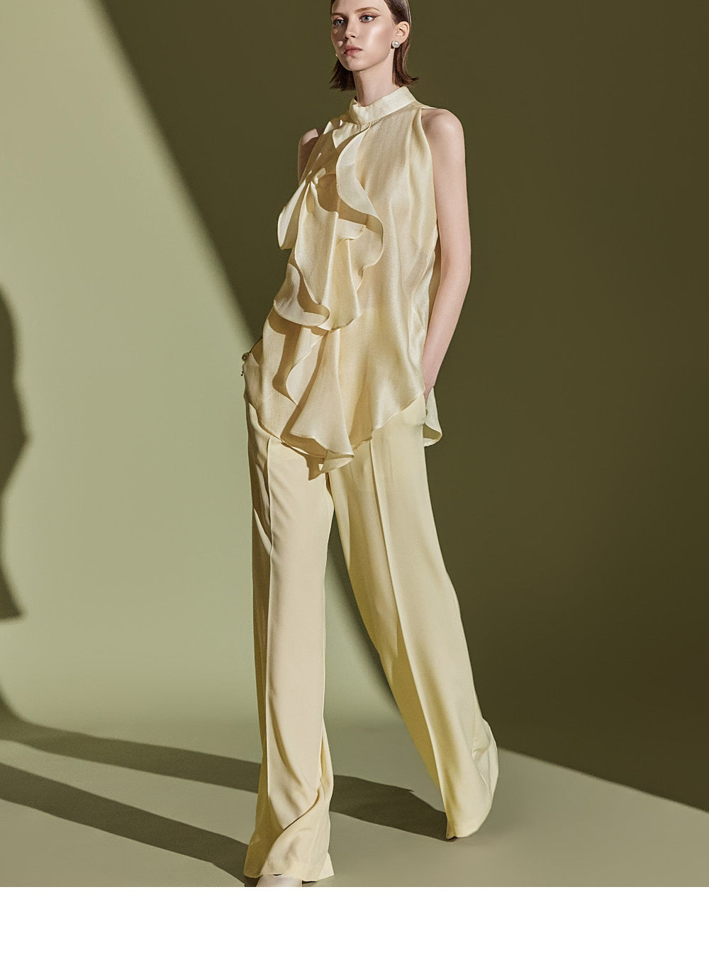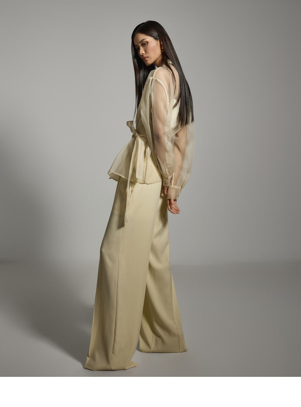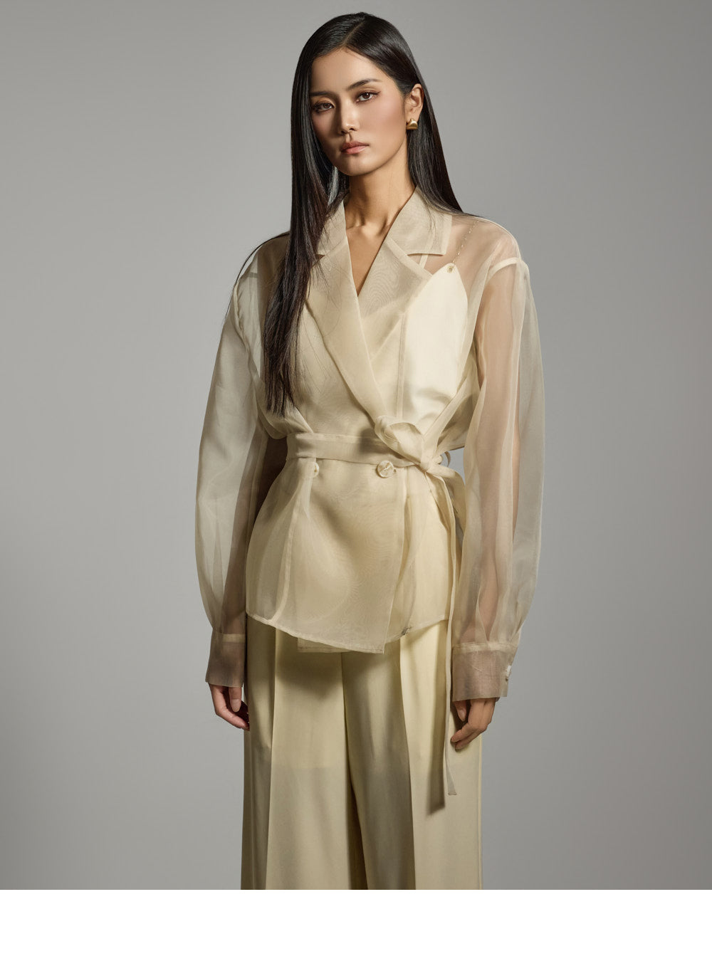 The model, 174cm tall, wears size S in YELLOW BEIGE color.