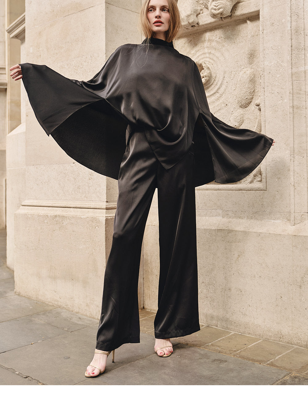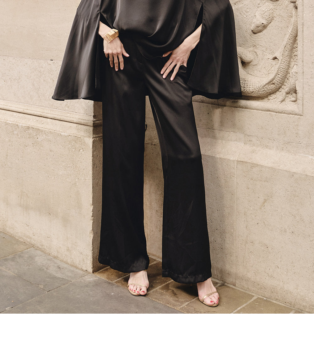 These are sophisticated wide-leg slacks.