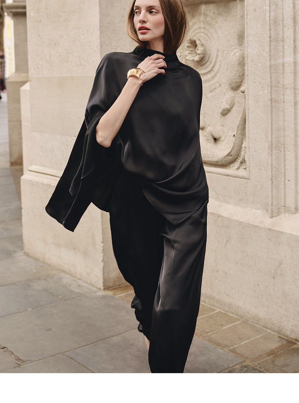 while the wide silhouette