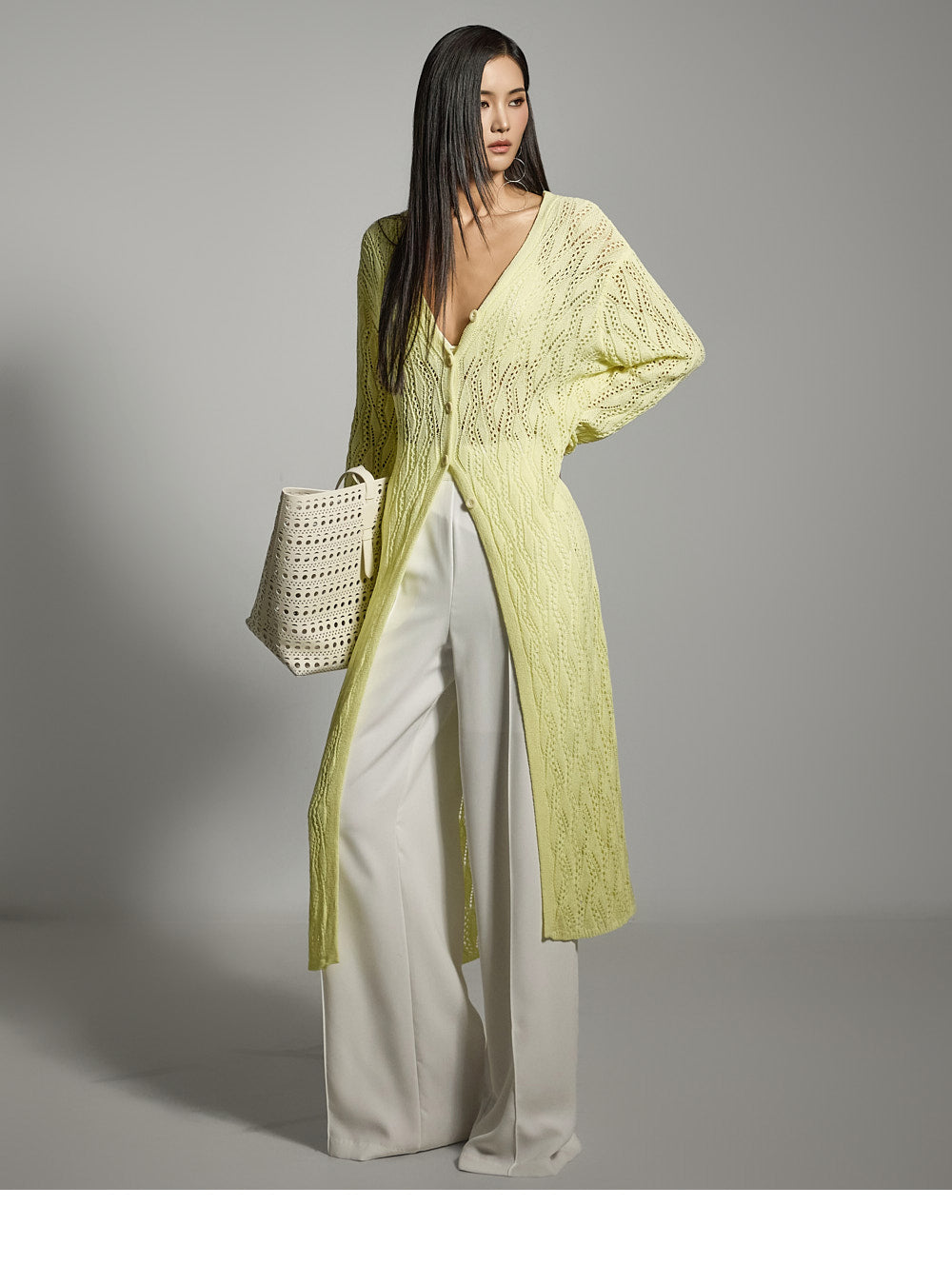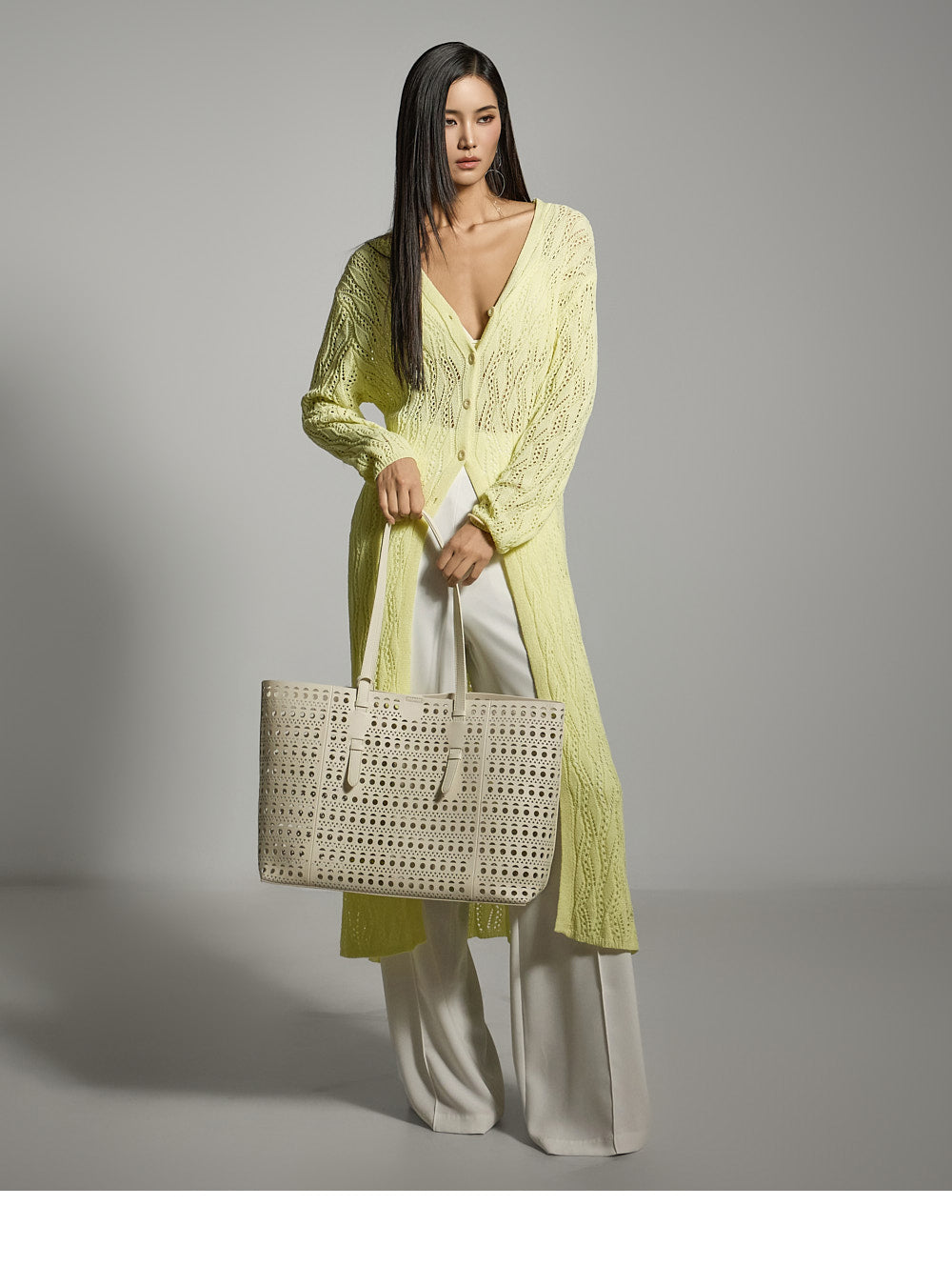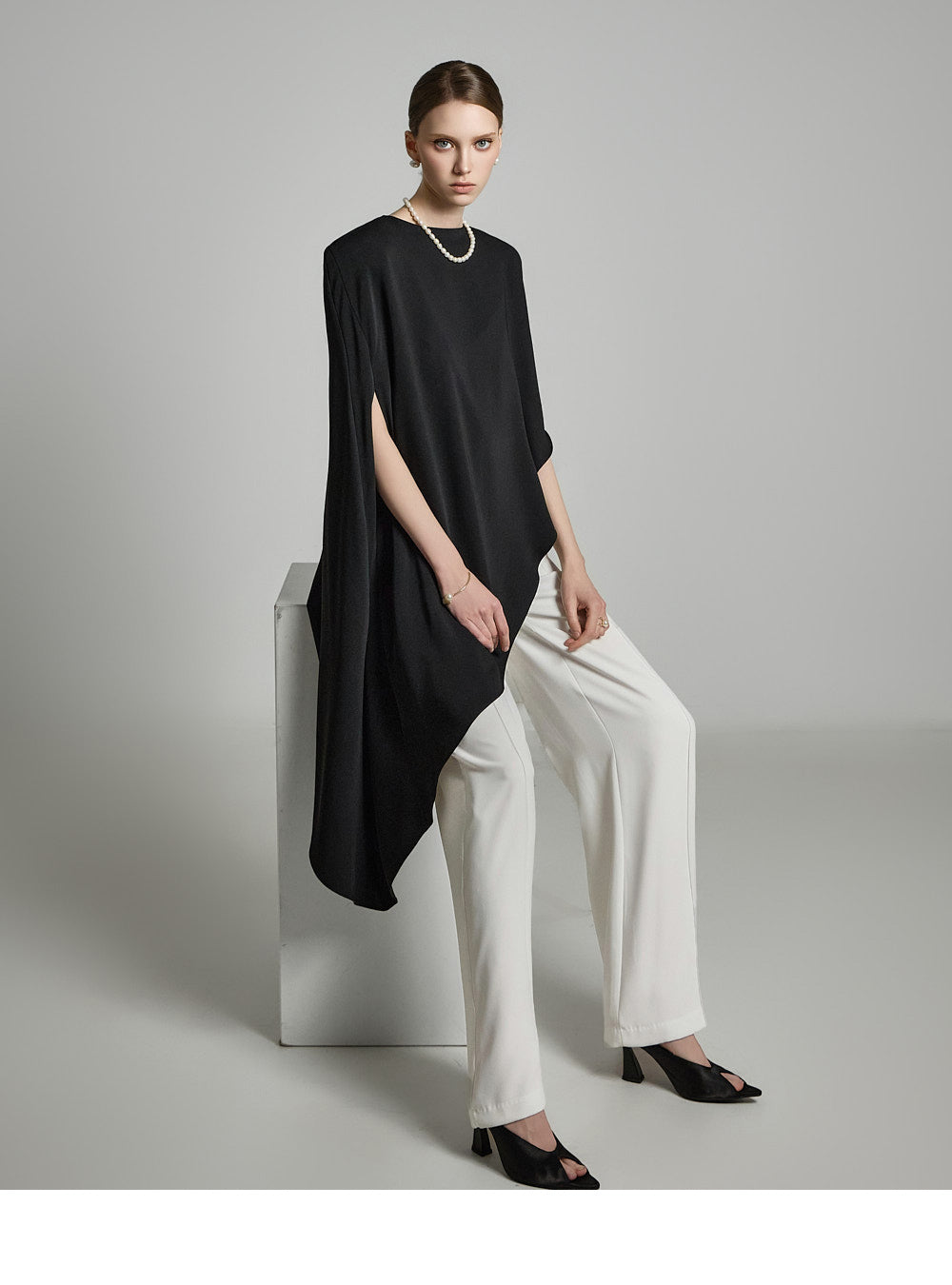 The model is 174 cm tall and is wearing size S in WHITE