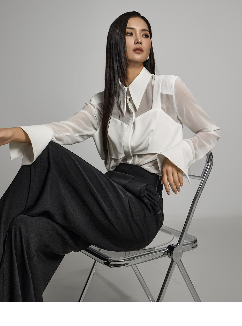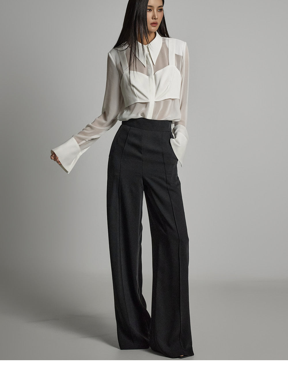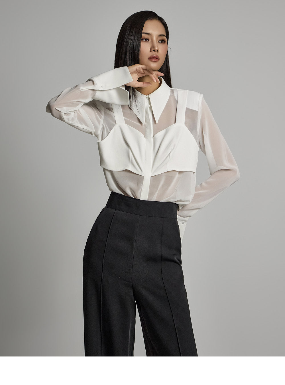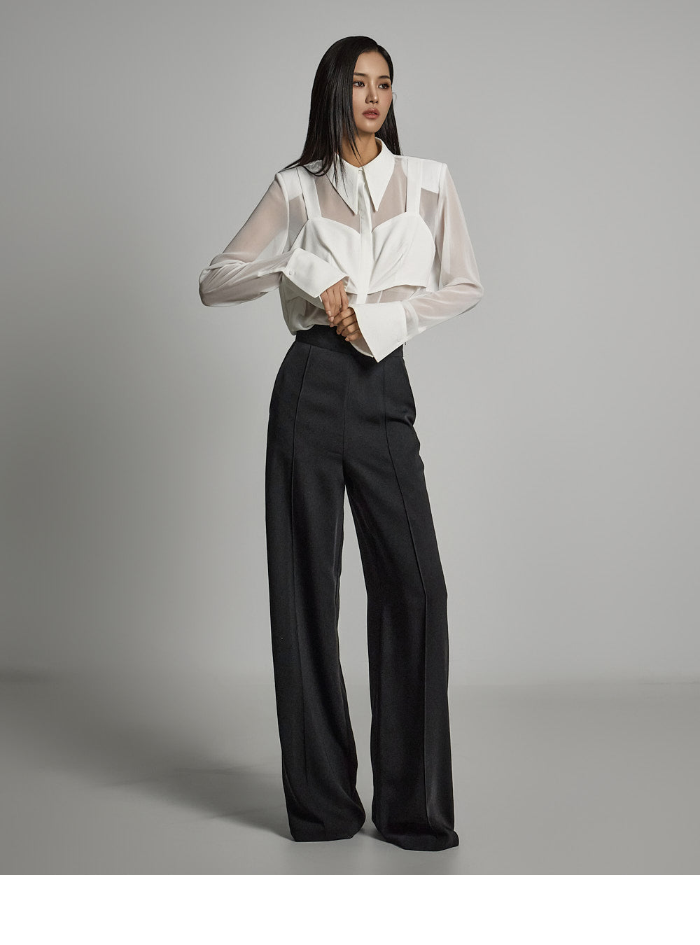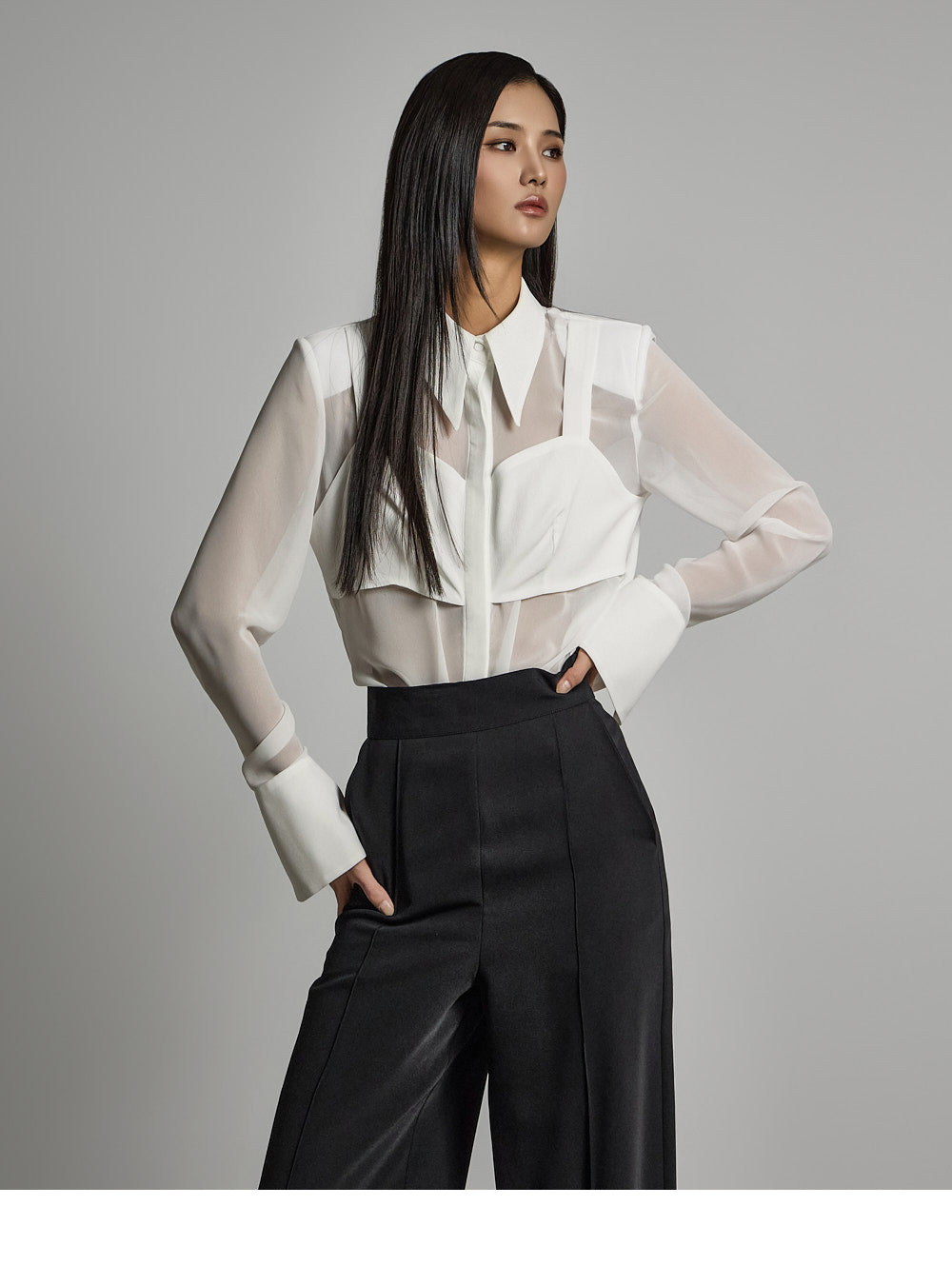 and create a refined silhouette with front pintuck details. ??