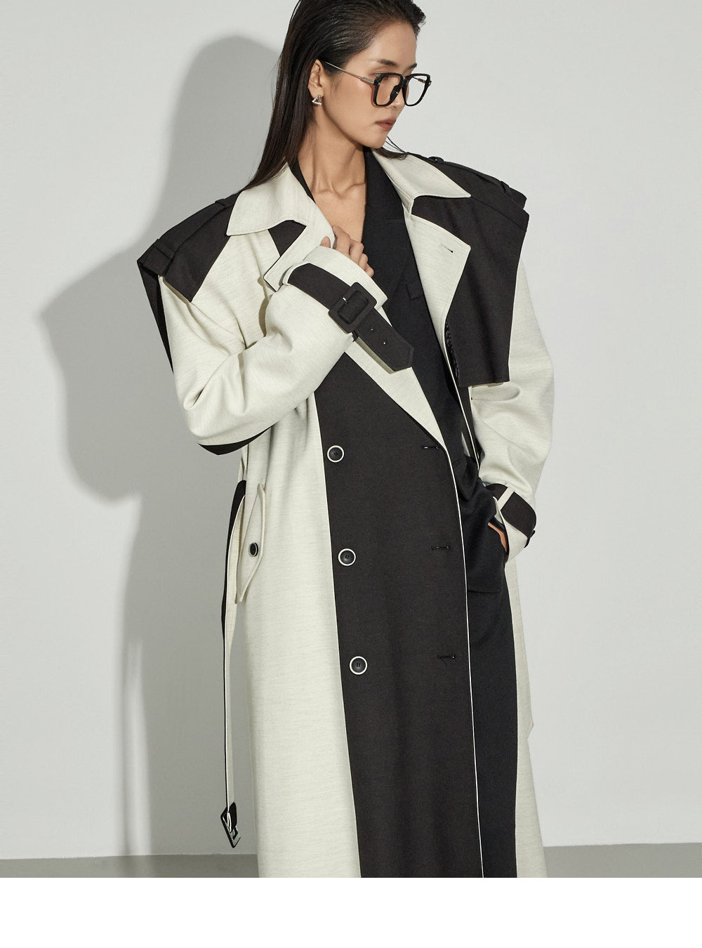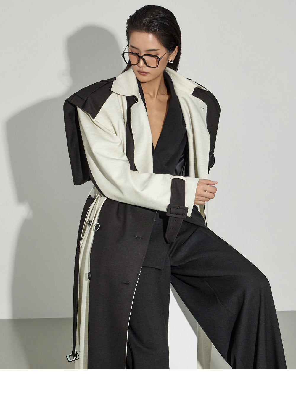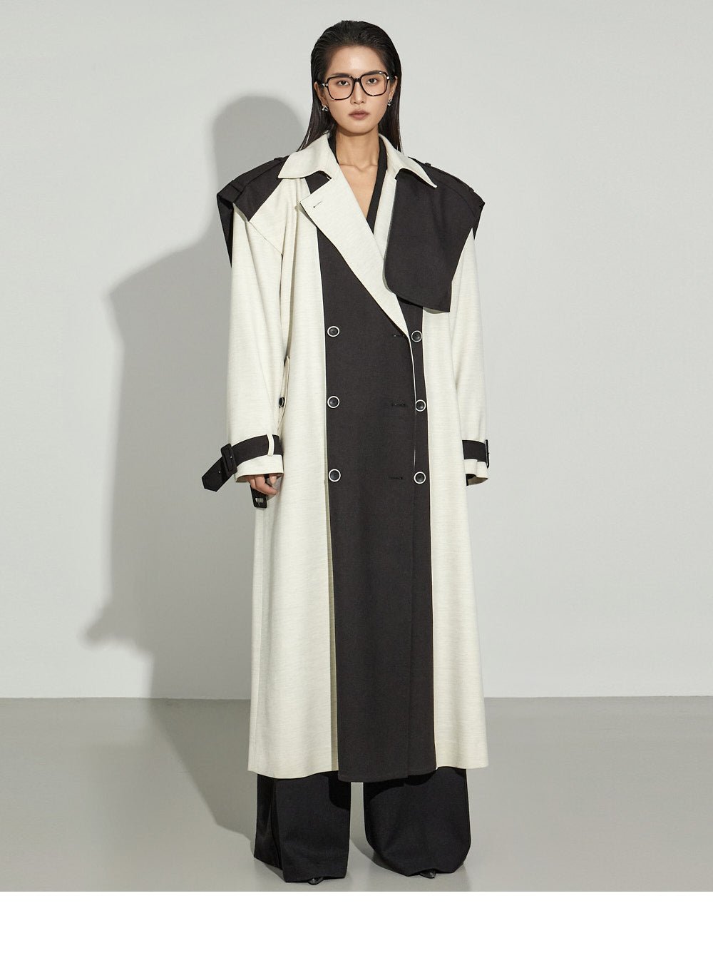 The wide silhouette and center-front pintuck detailing