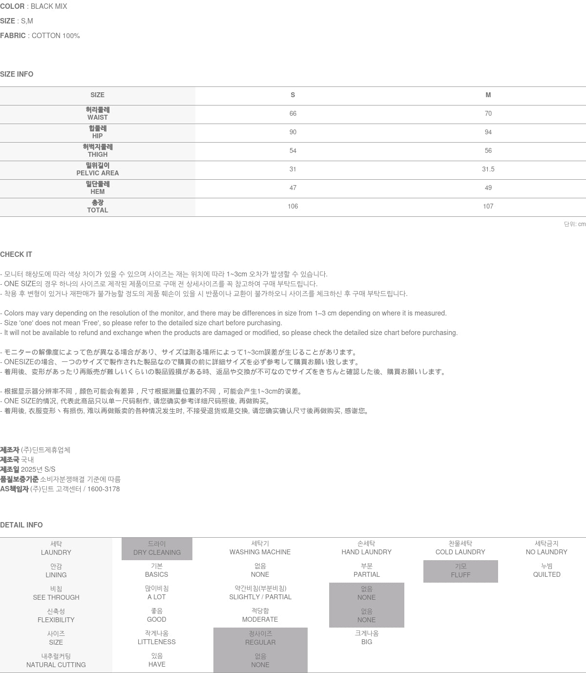 Clothing from DINT Co., Ltd. may become damaged or deformed if machine washed or tumble dried. We strongly recommend following the care instructions provided below.