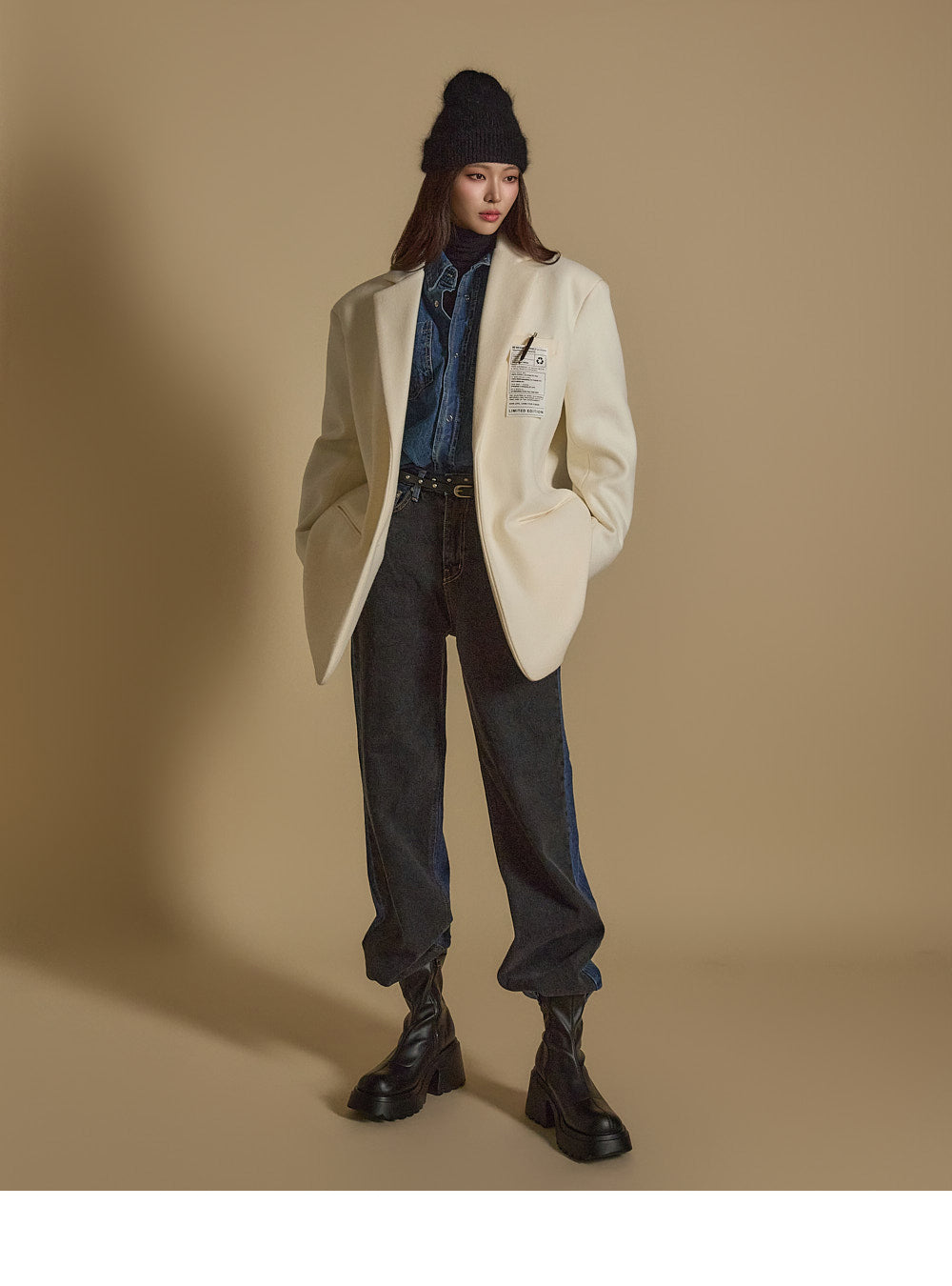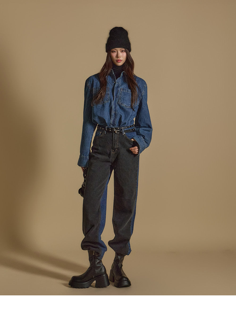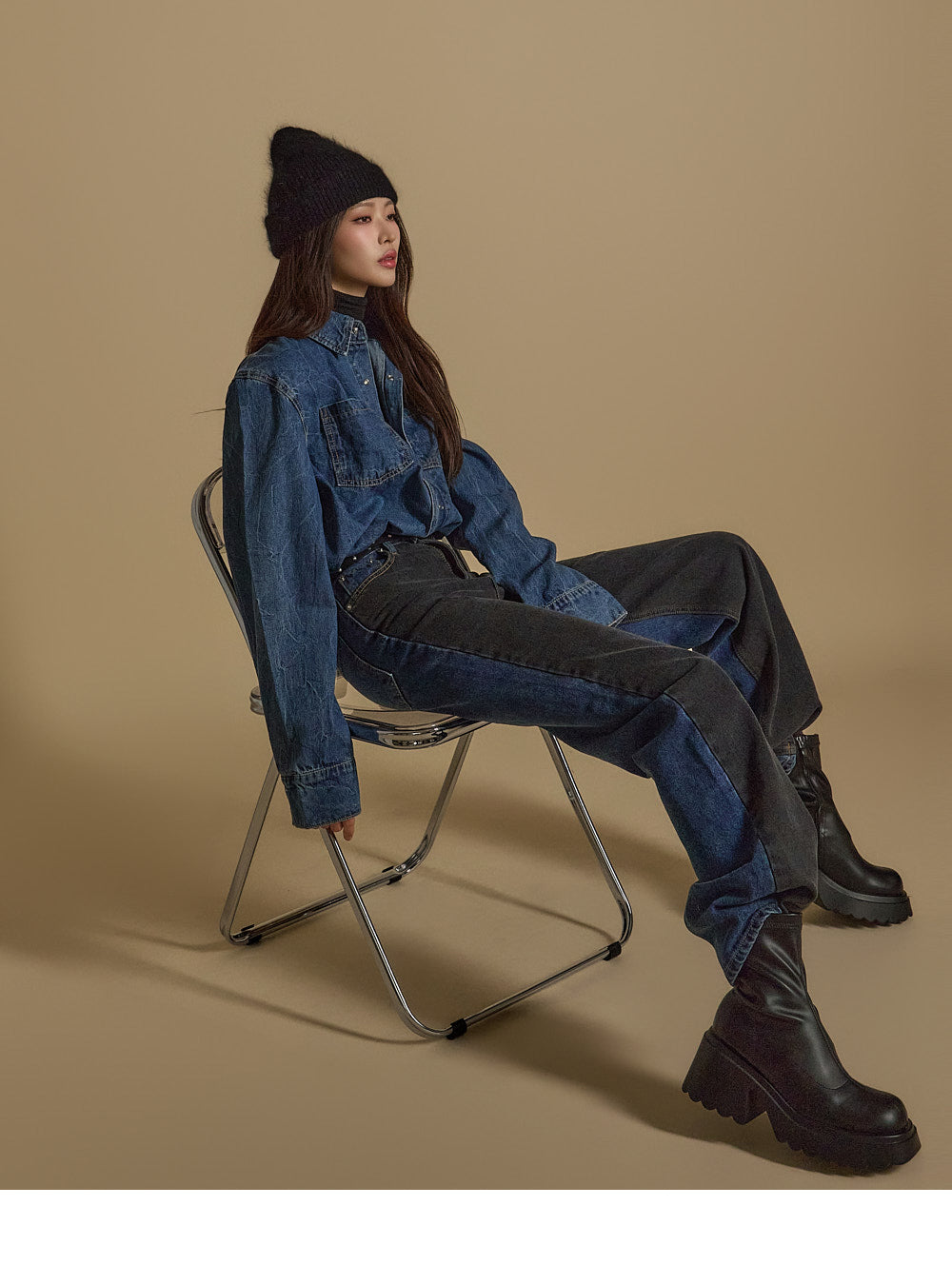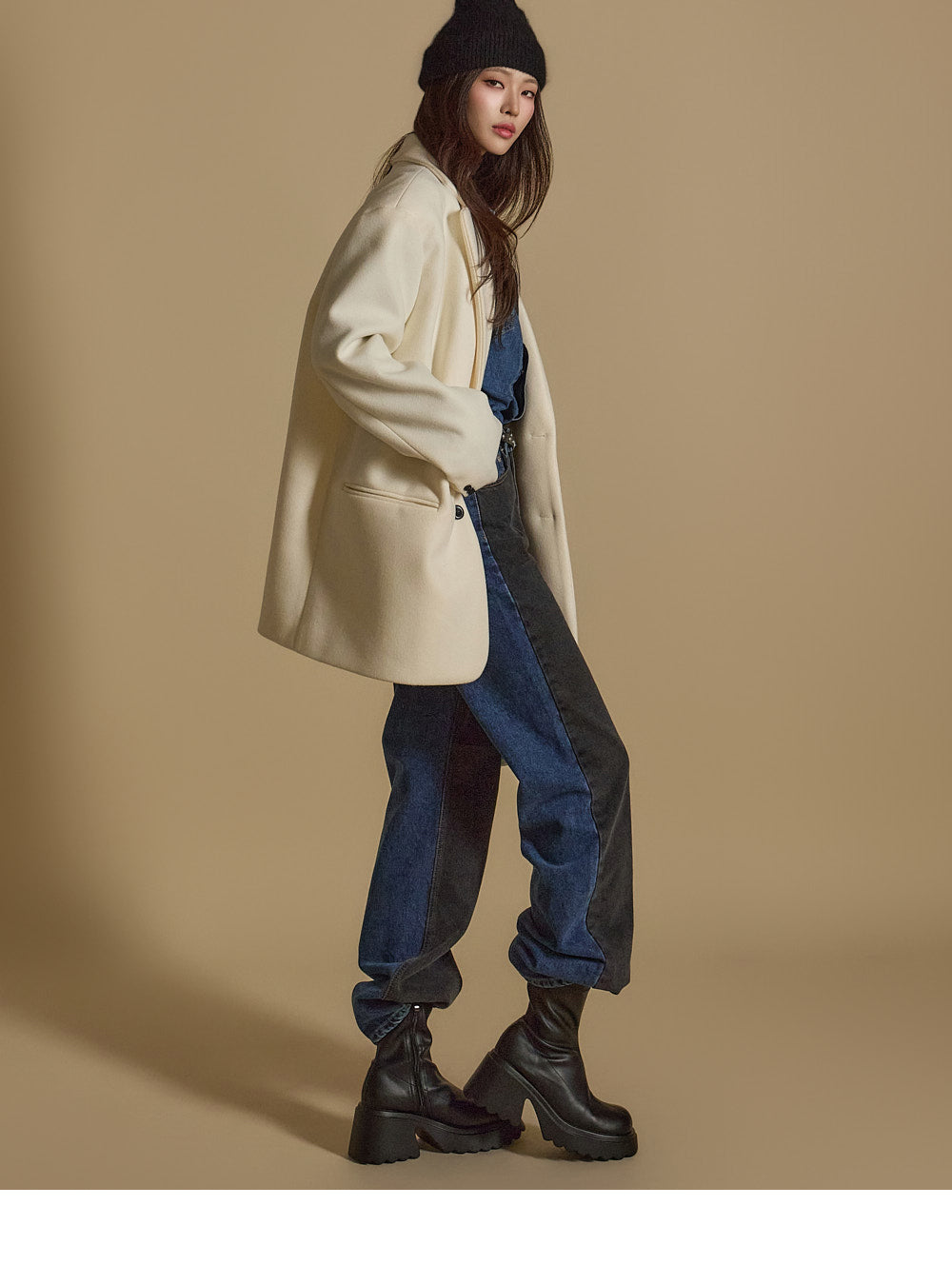 Denim (jeans, coated jeans) and other dark-dyed garments may experience color fading or transfer. Please take extra care before the first wash and while wearing them.