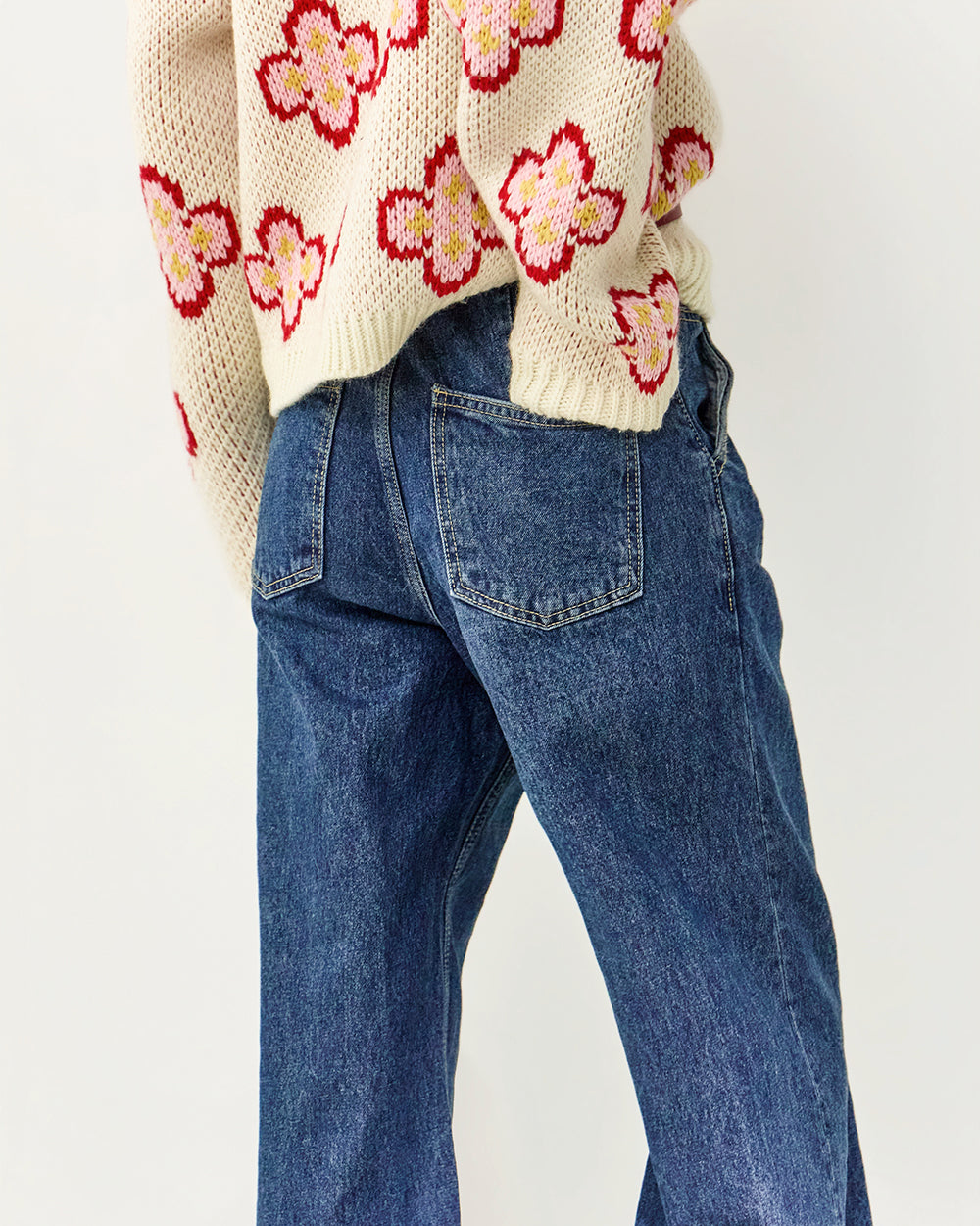 The neutral mid-blue color blends effortlessly with a variety of tops,