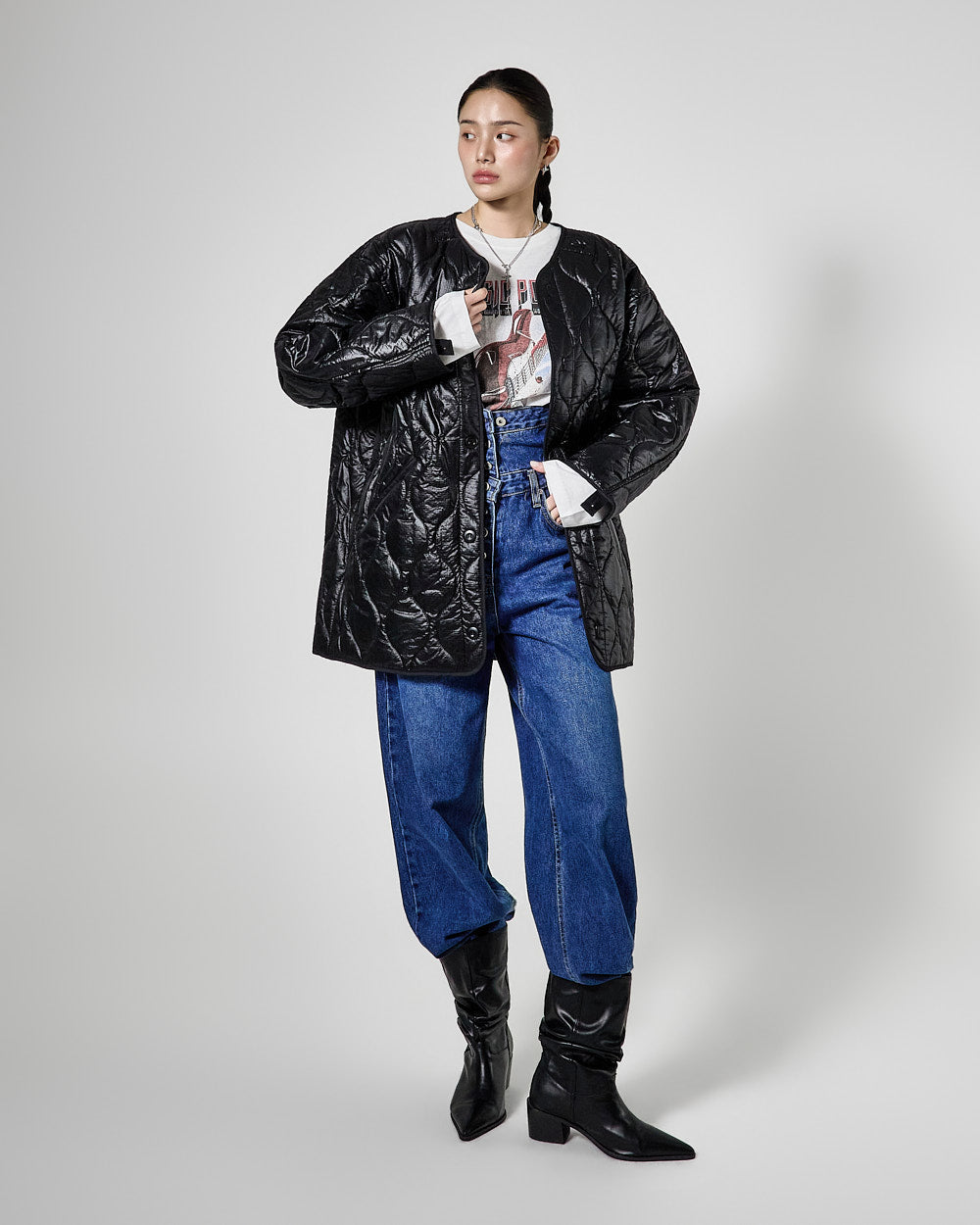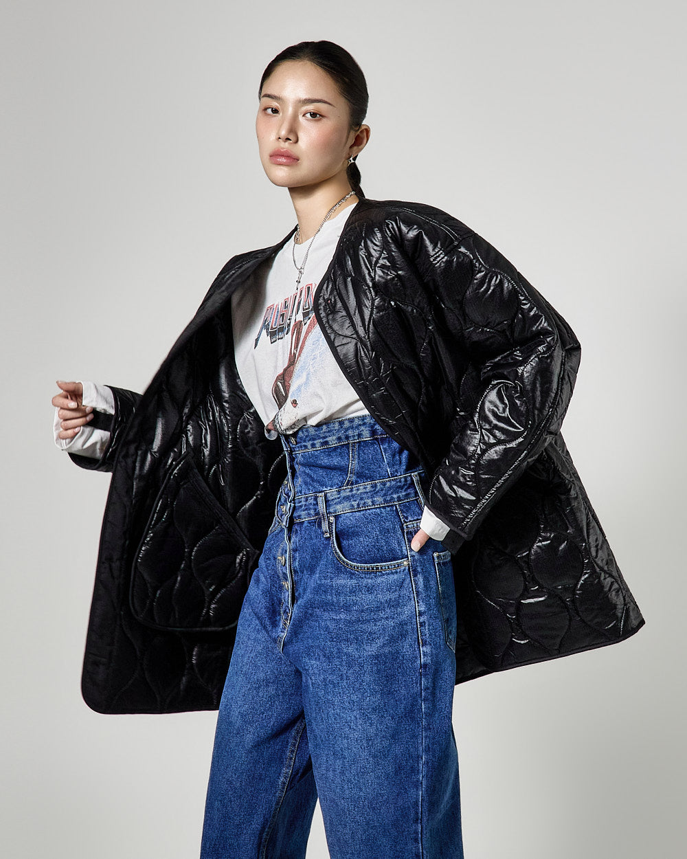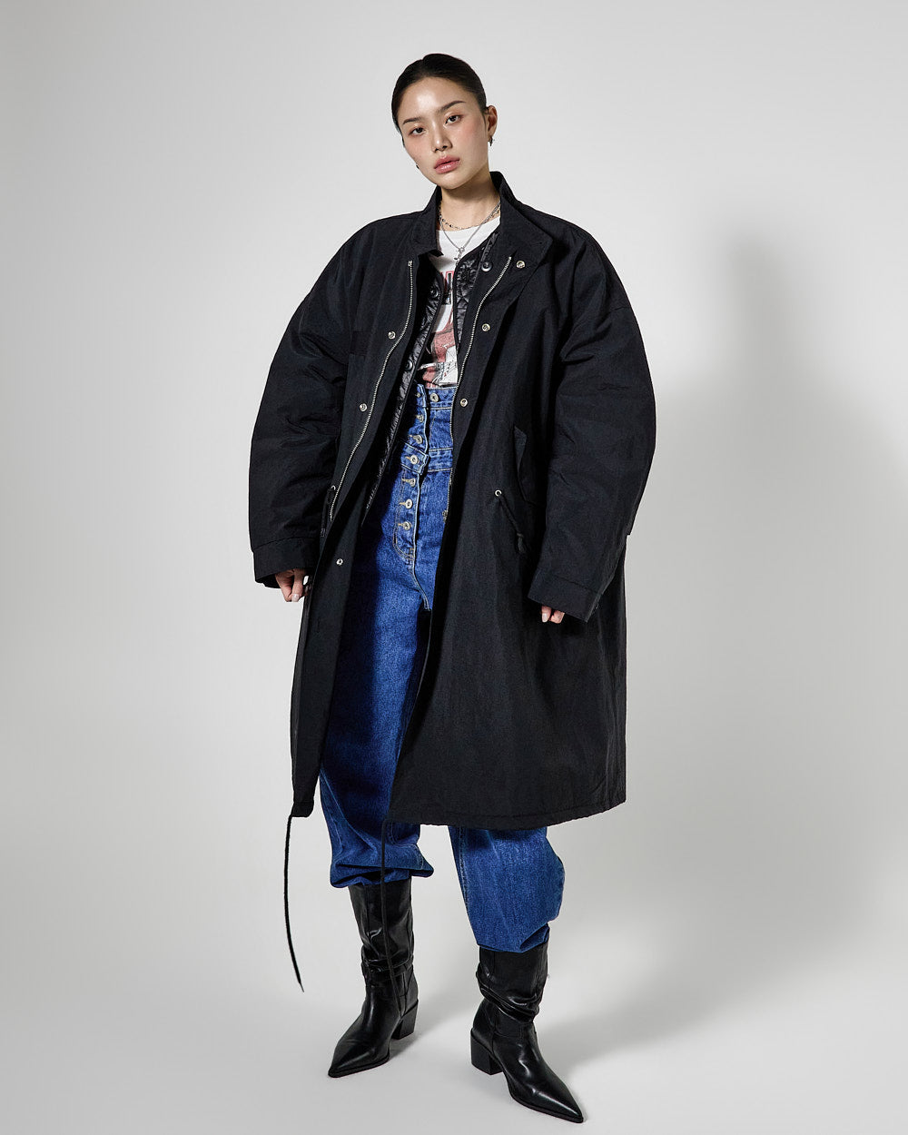 Denim (jeans, coated jeans) and other dark-dyed garments may experience color fading or transfer. Please take extra care before the first wash and while wearing them.