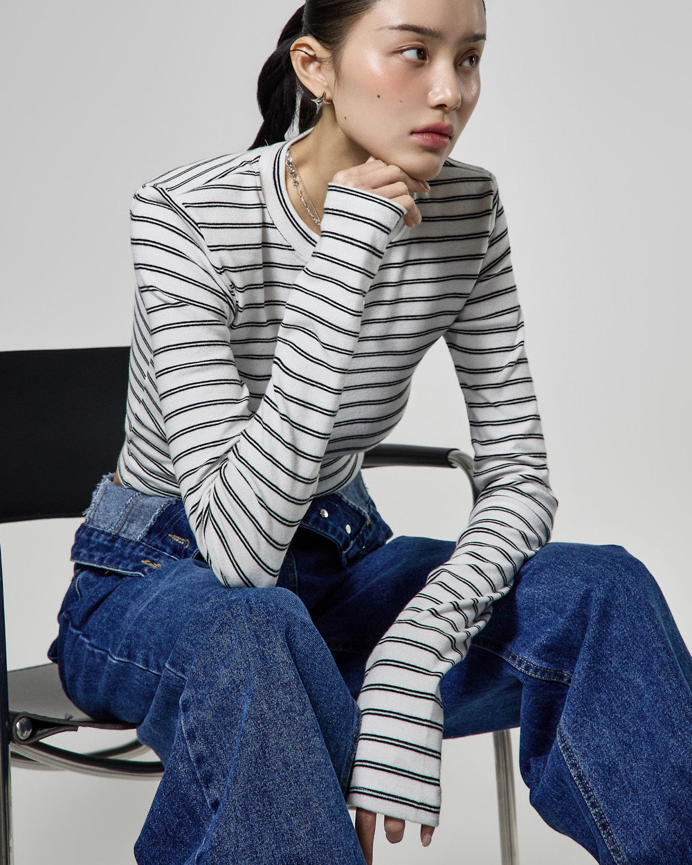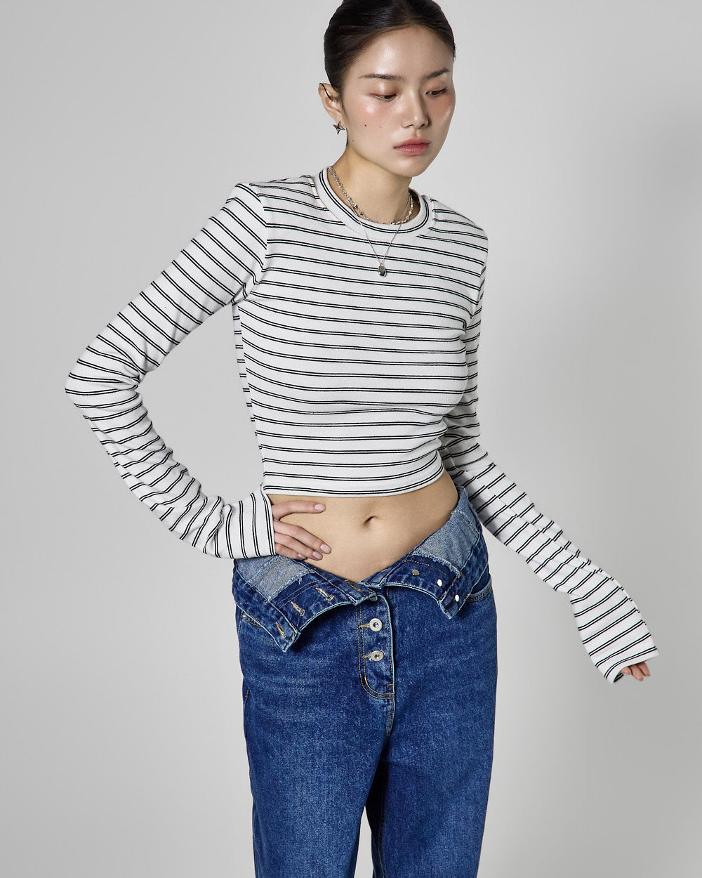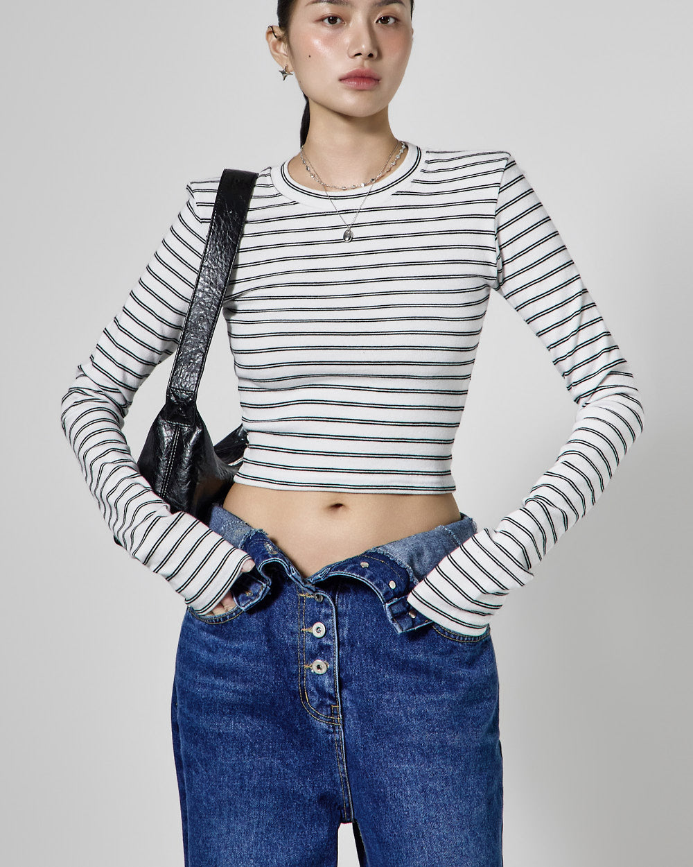 These high-waisted jeans have a retro vibe.