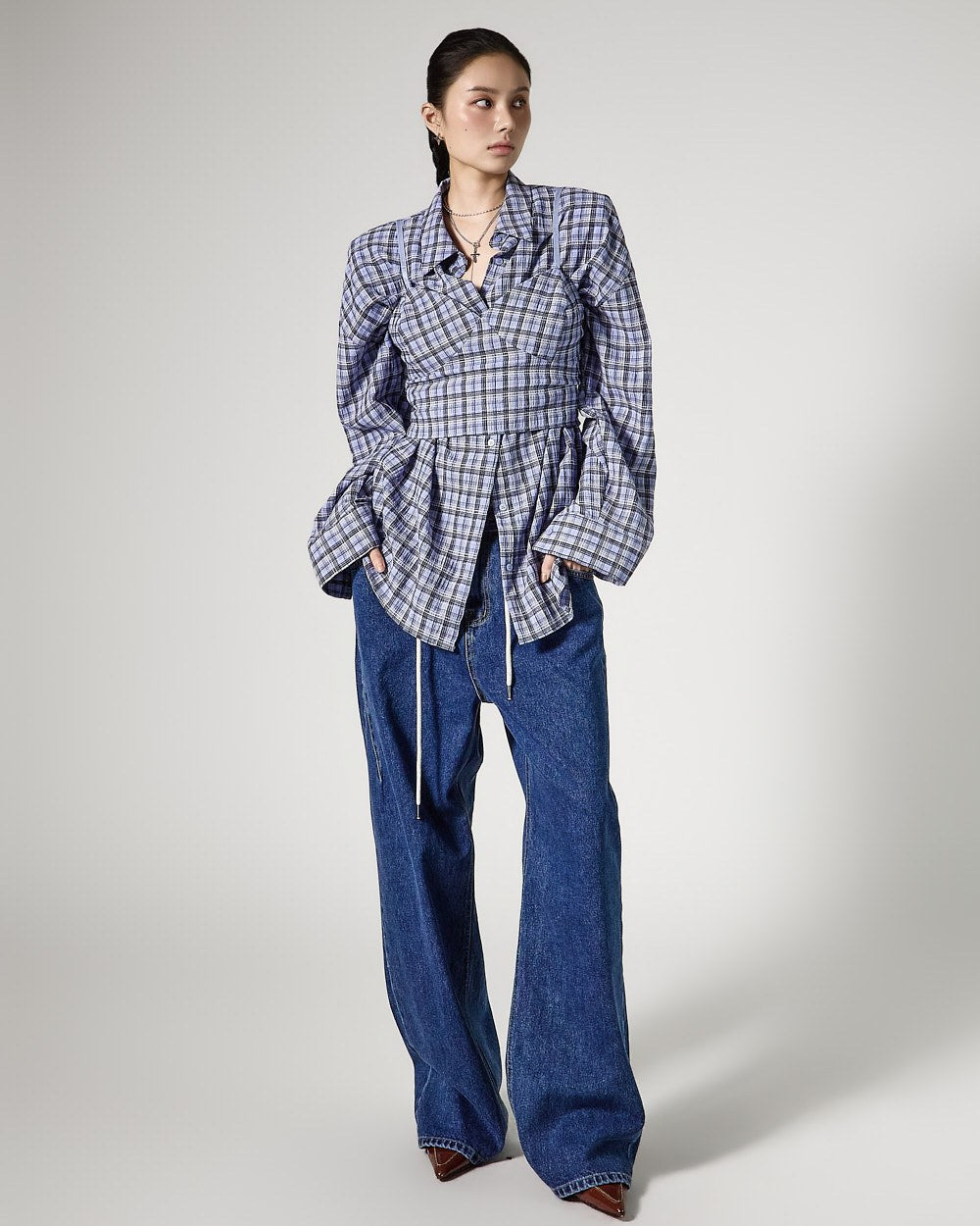 A 171cm model is wearing size ONE in BLUE.