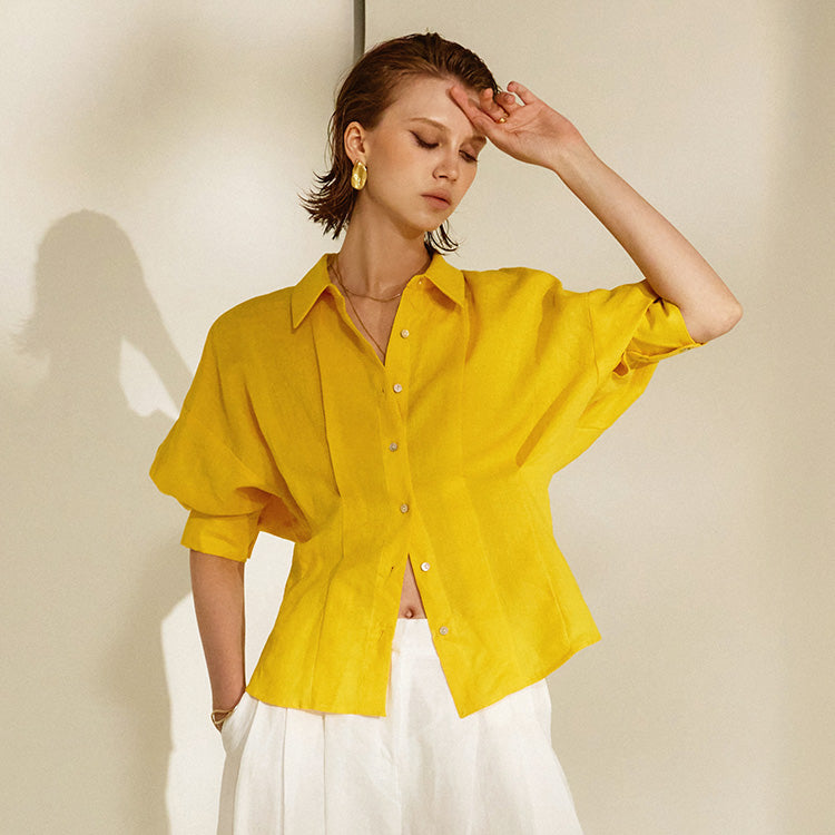 "Linen Collar Puff Pintuck Shirt."