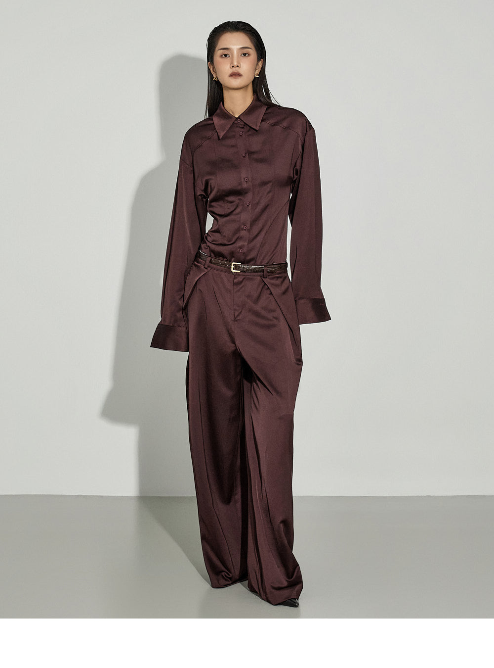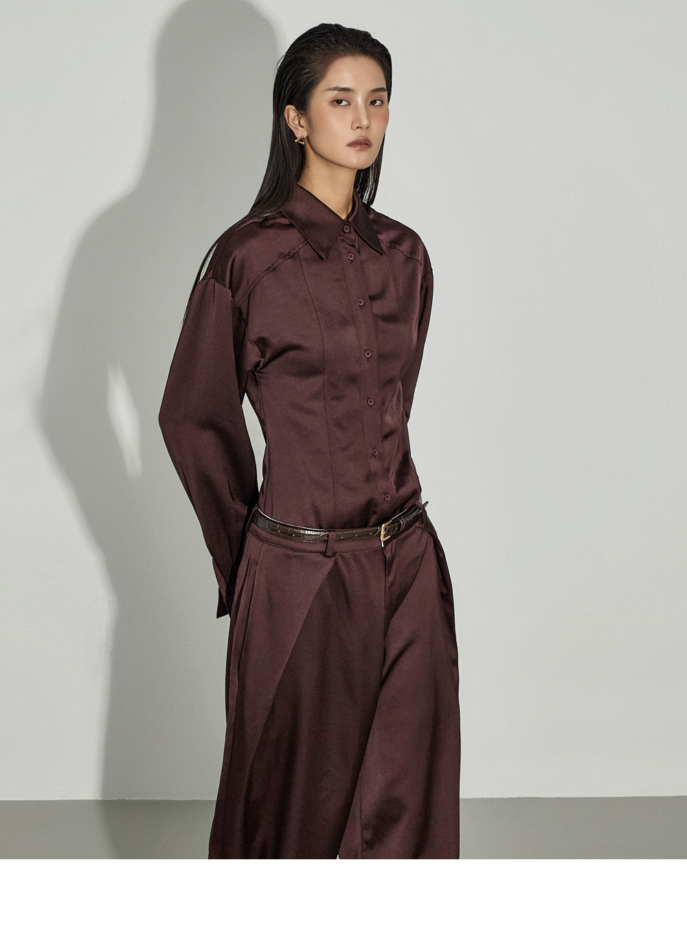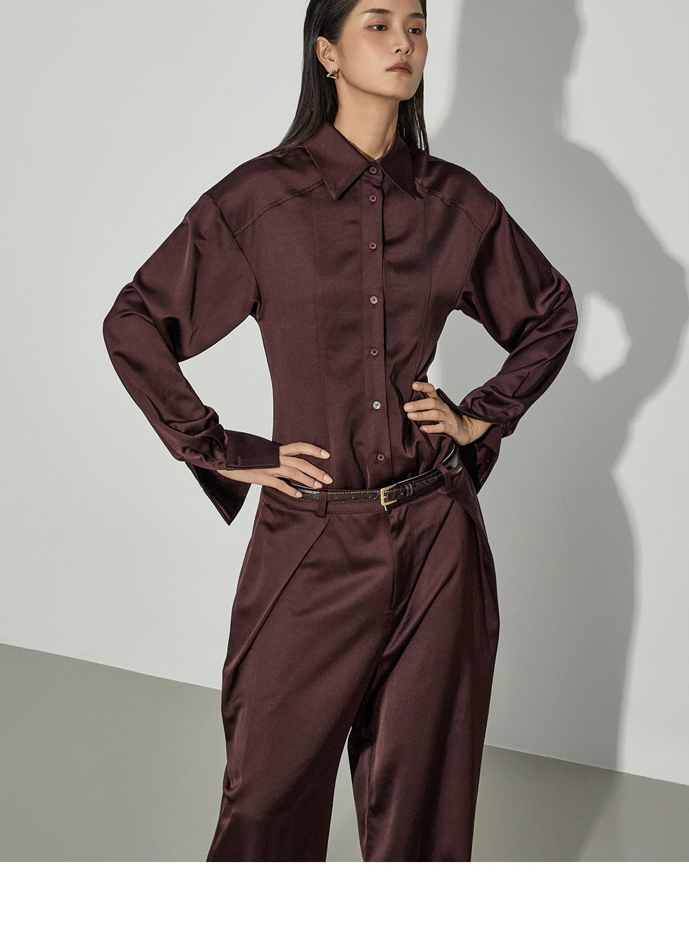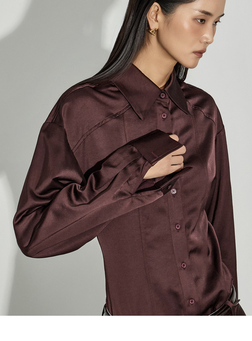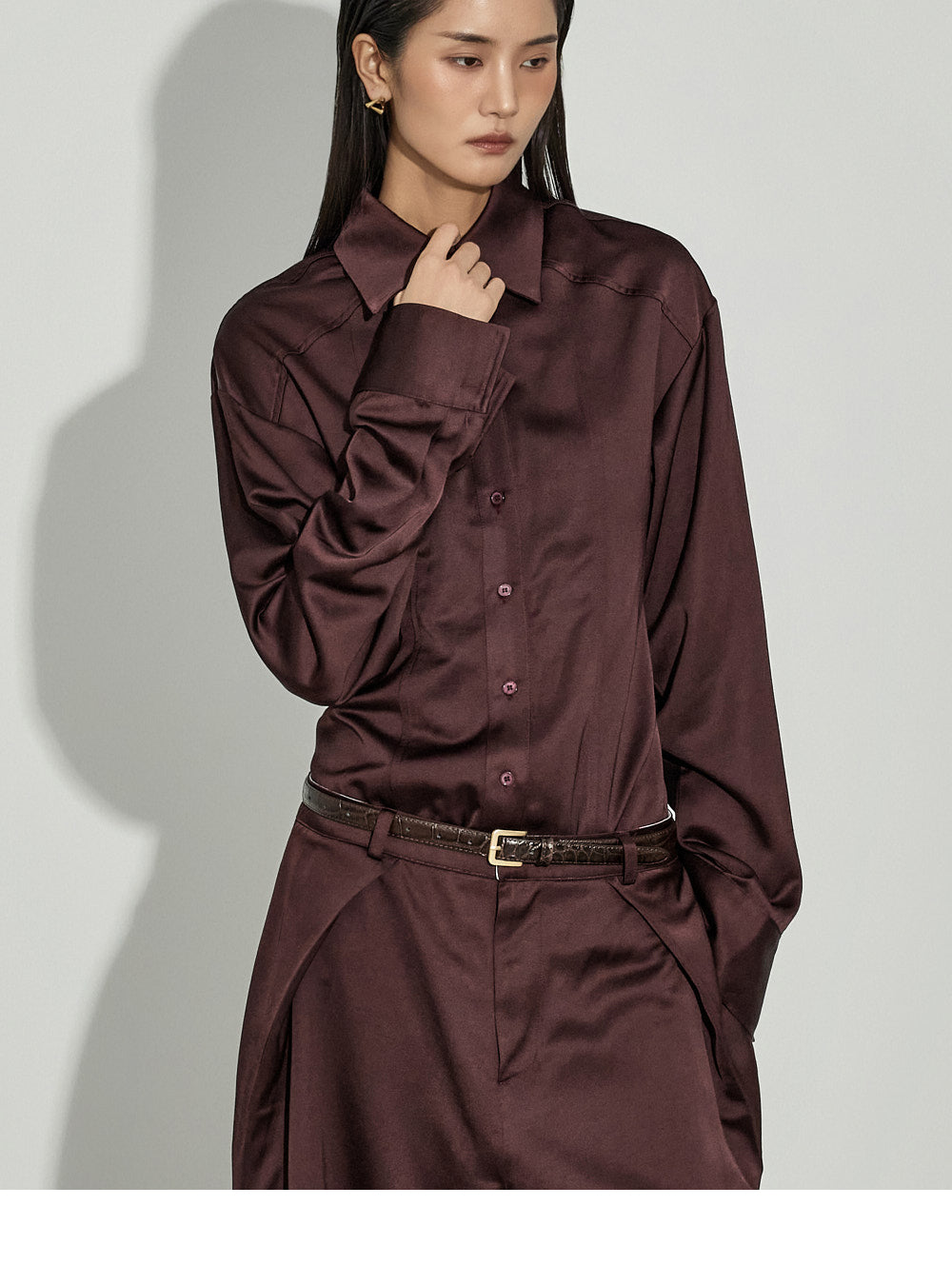 This satin shirt exudes a sophisticated vibe.