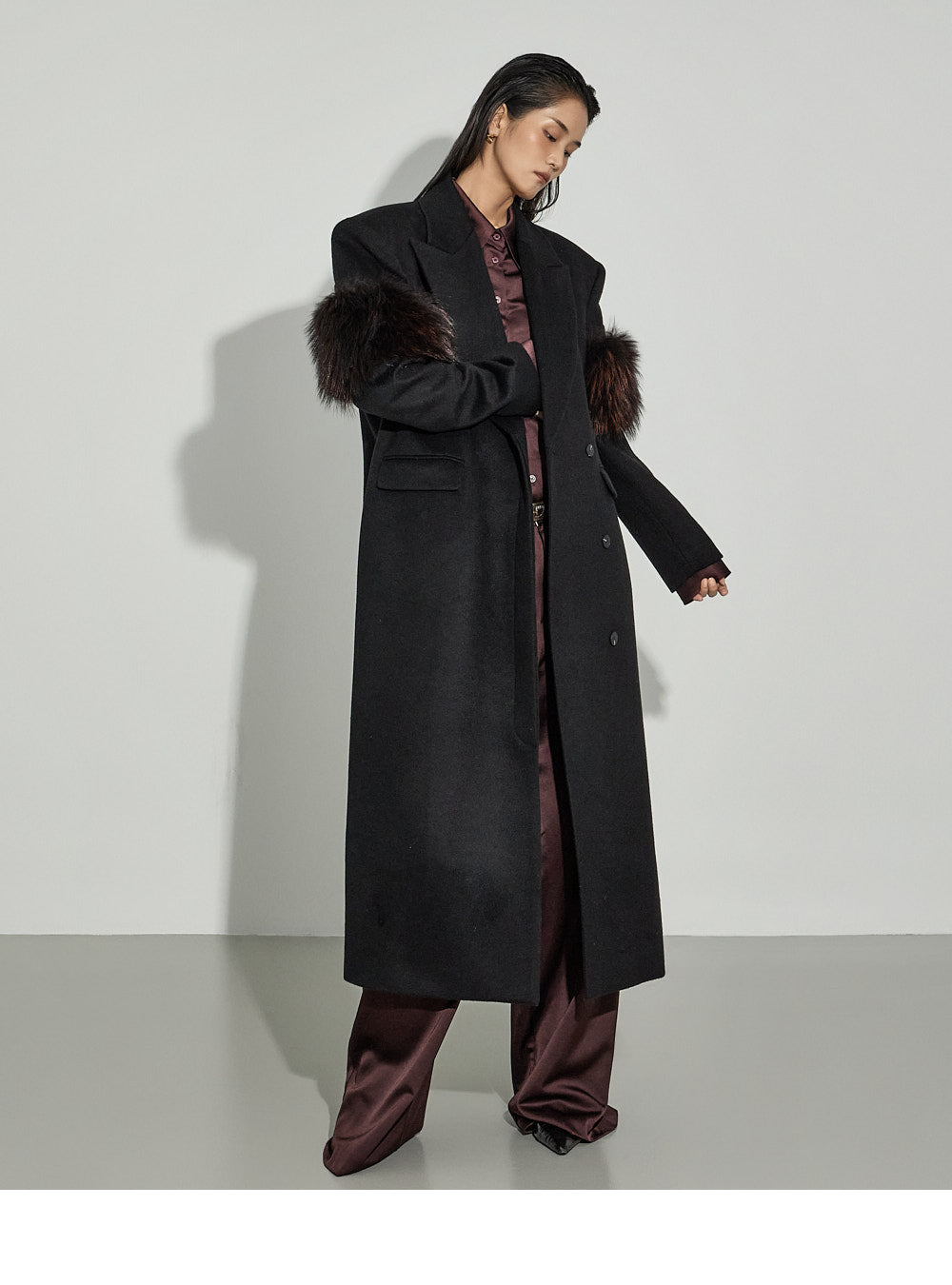 The 173cm model is wearing size ONE, color WINE.