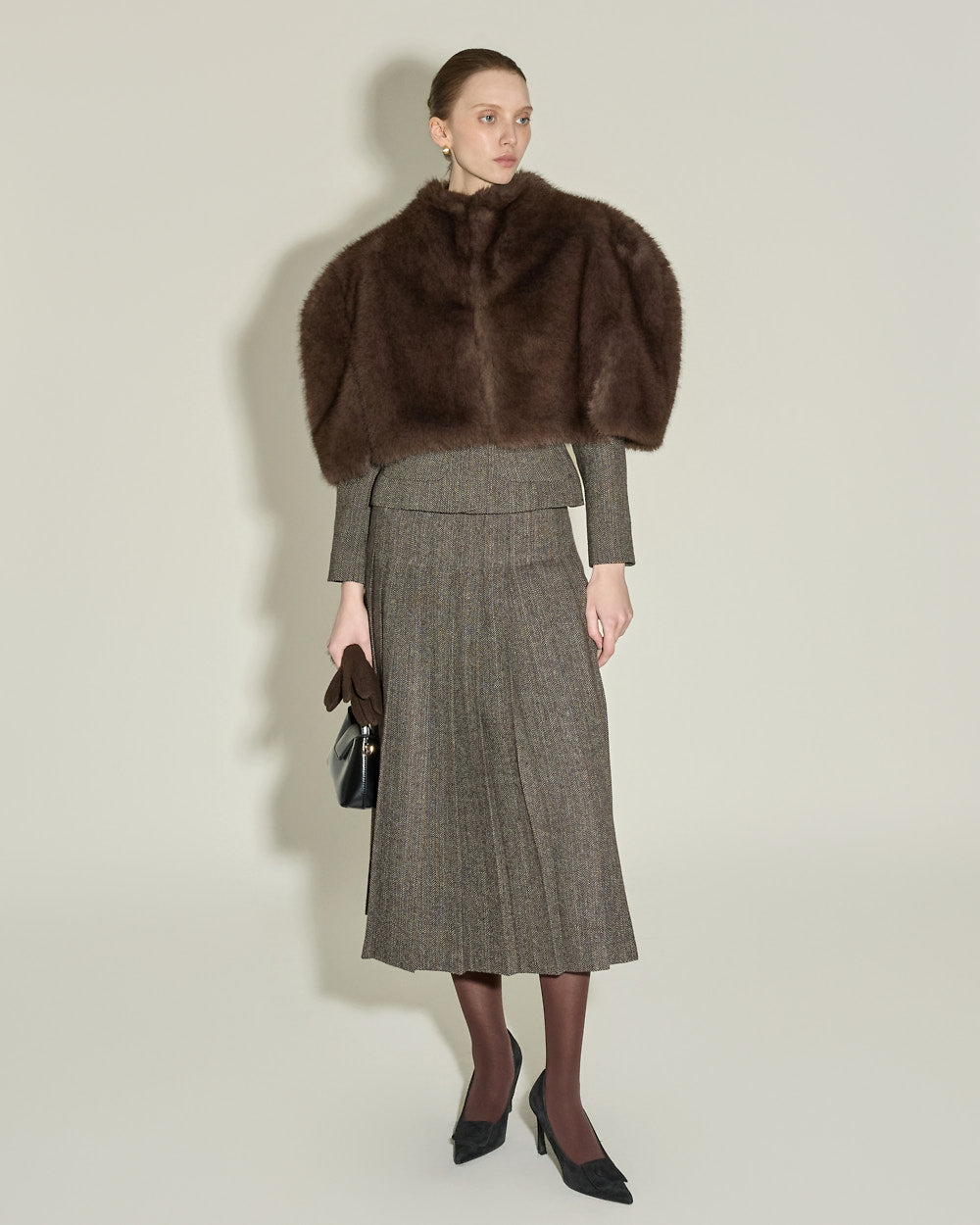 The pleated detail at the hem adds an elegant and timeless touch.