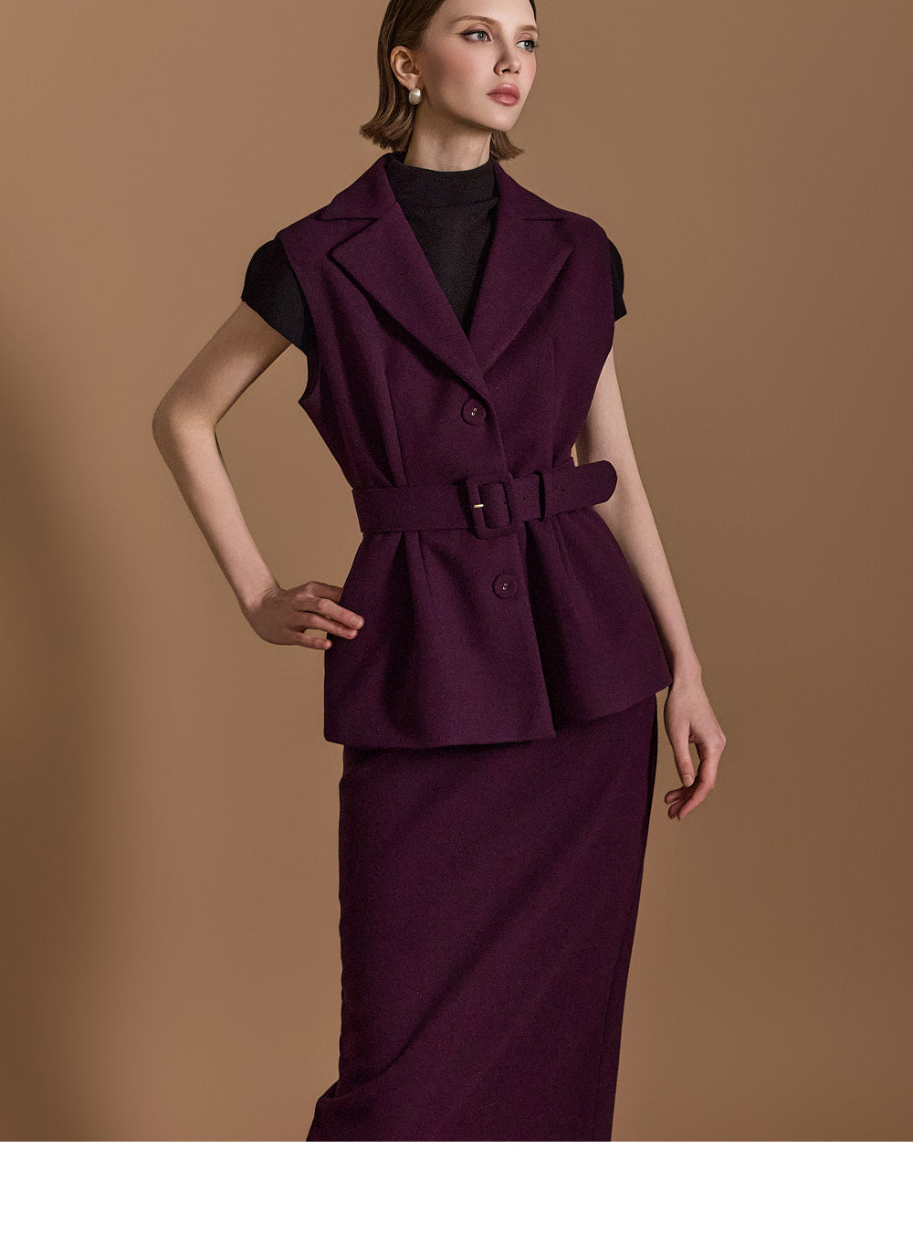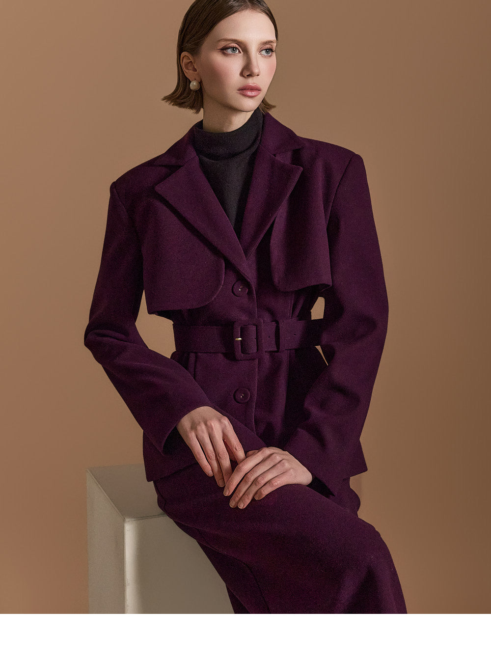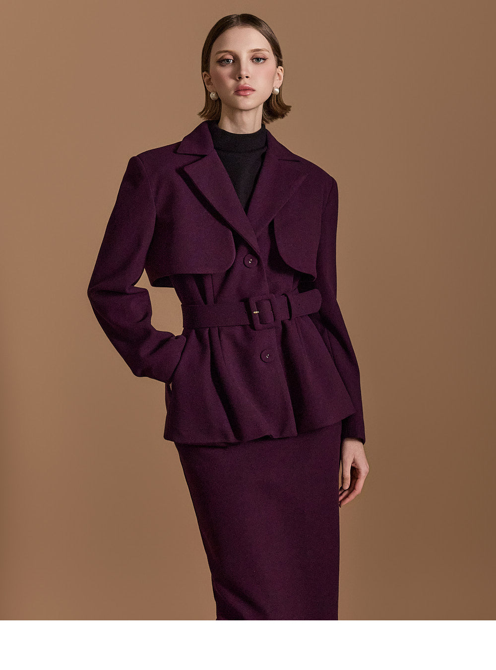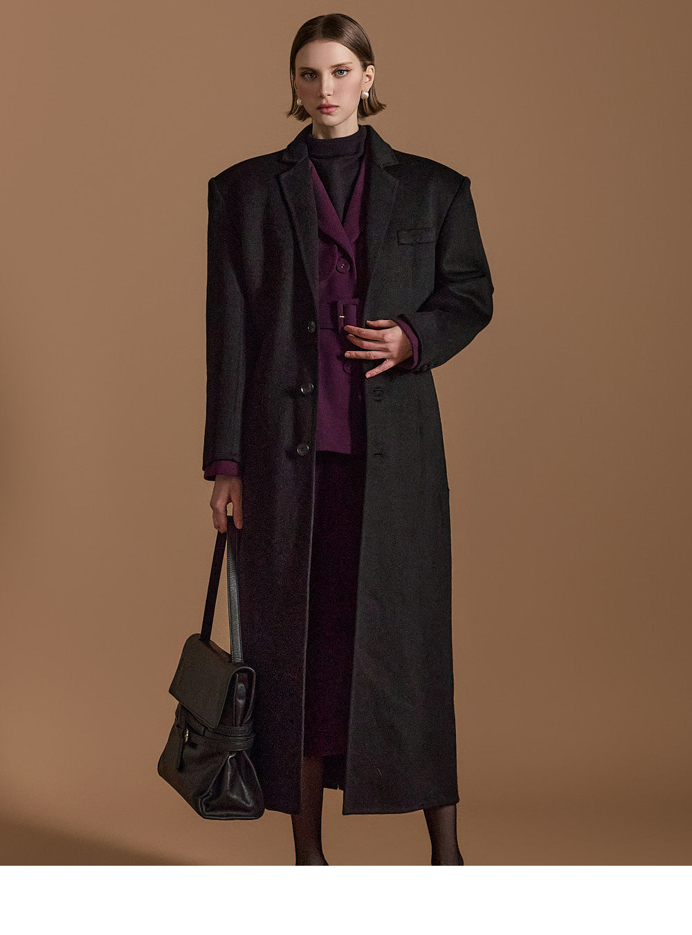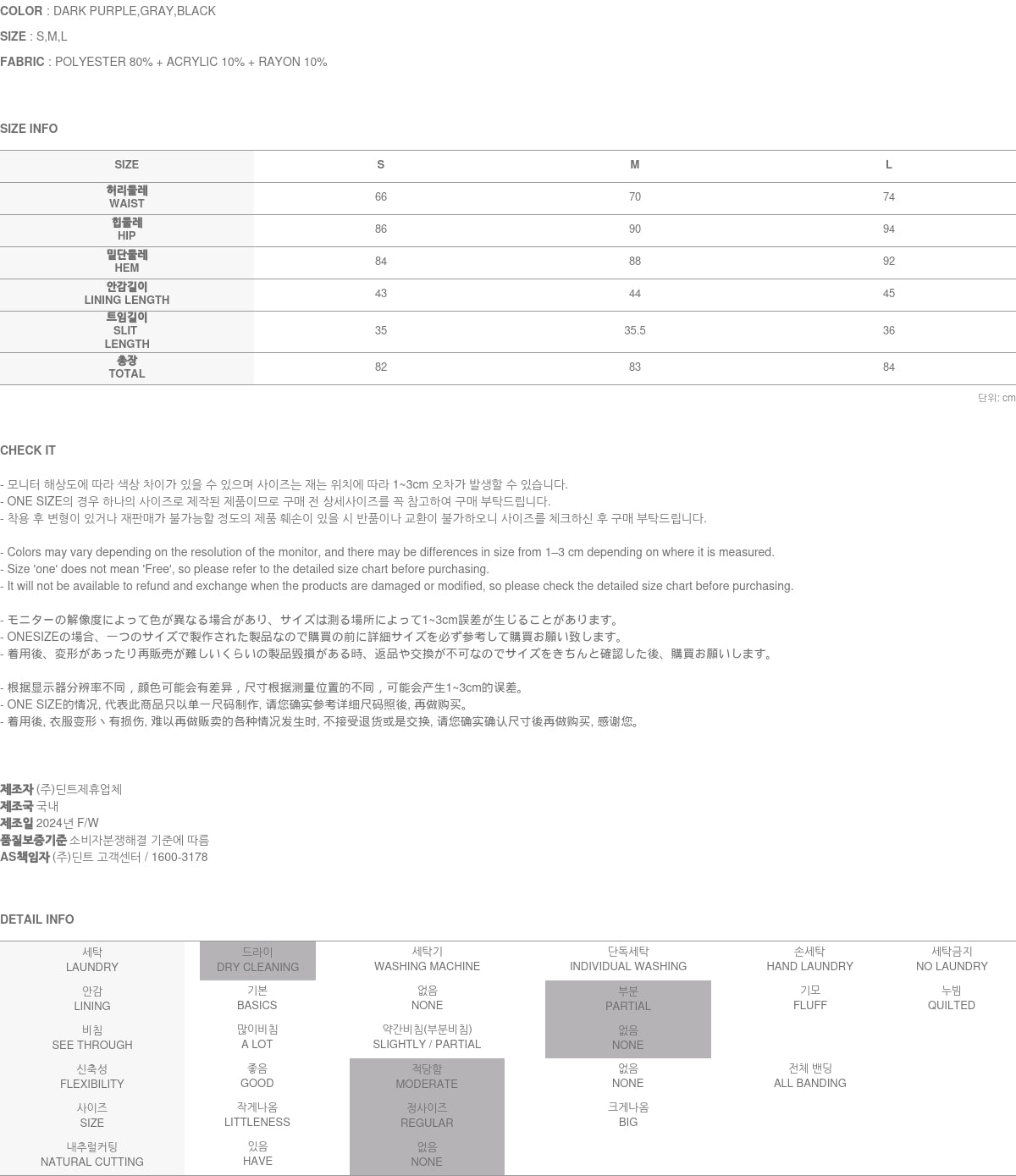 Model is 174cm tall, wearing size S in DARK PURPLE.