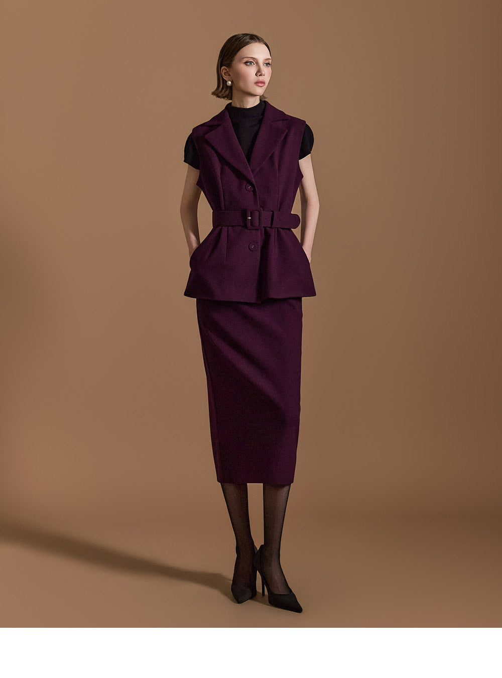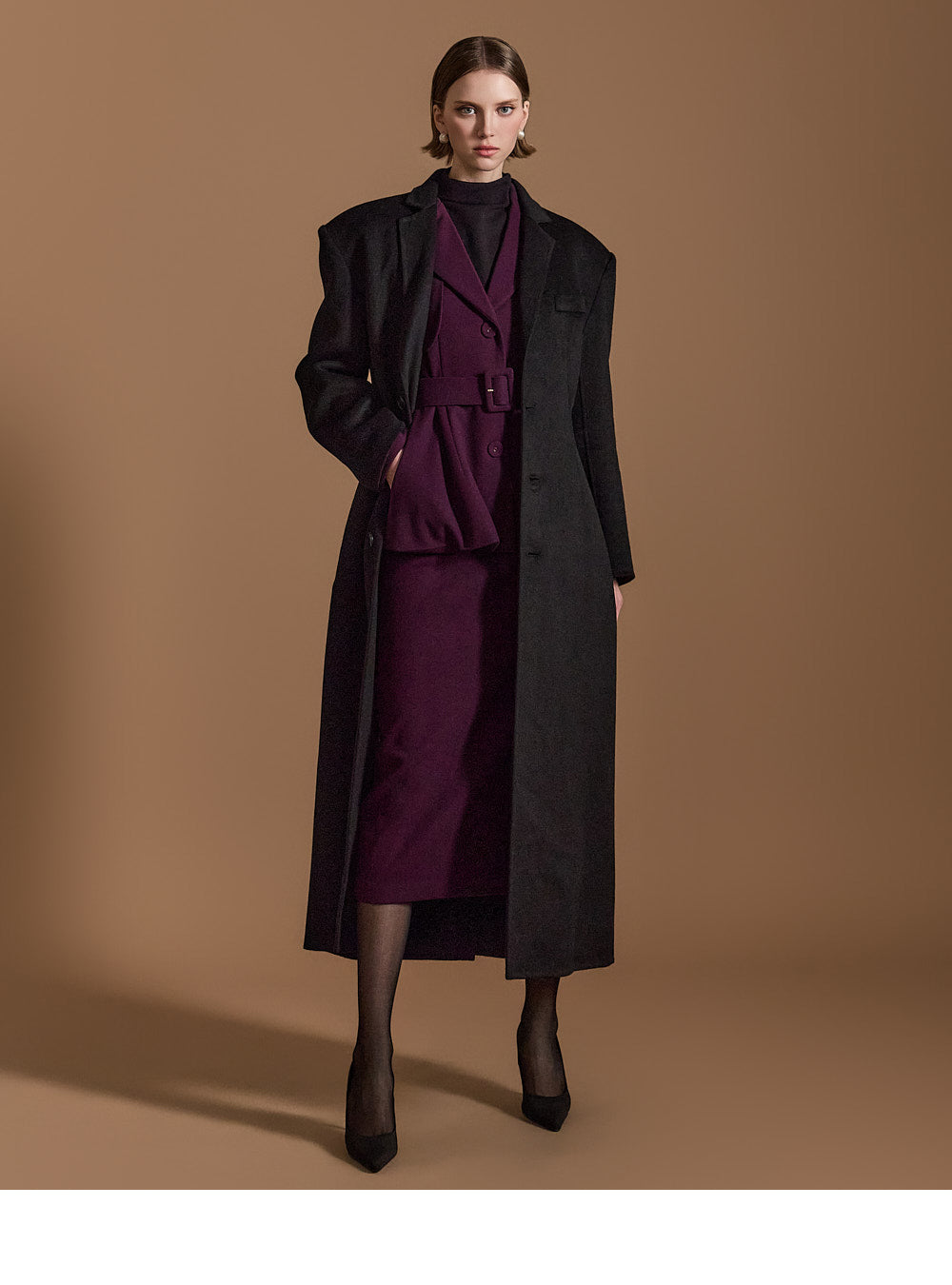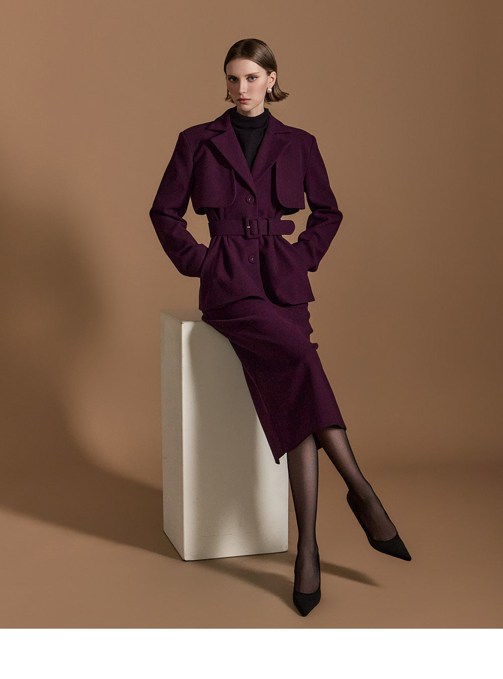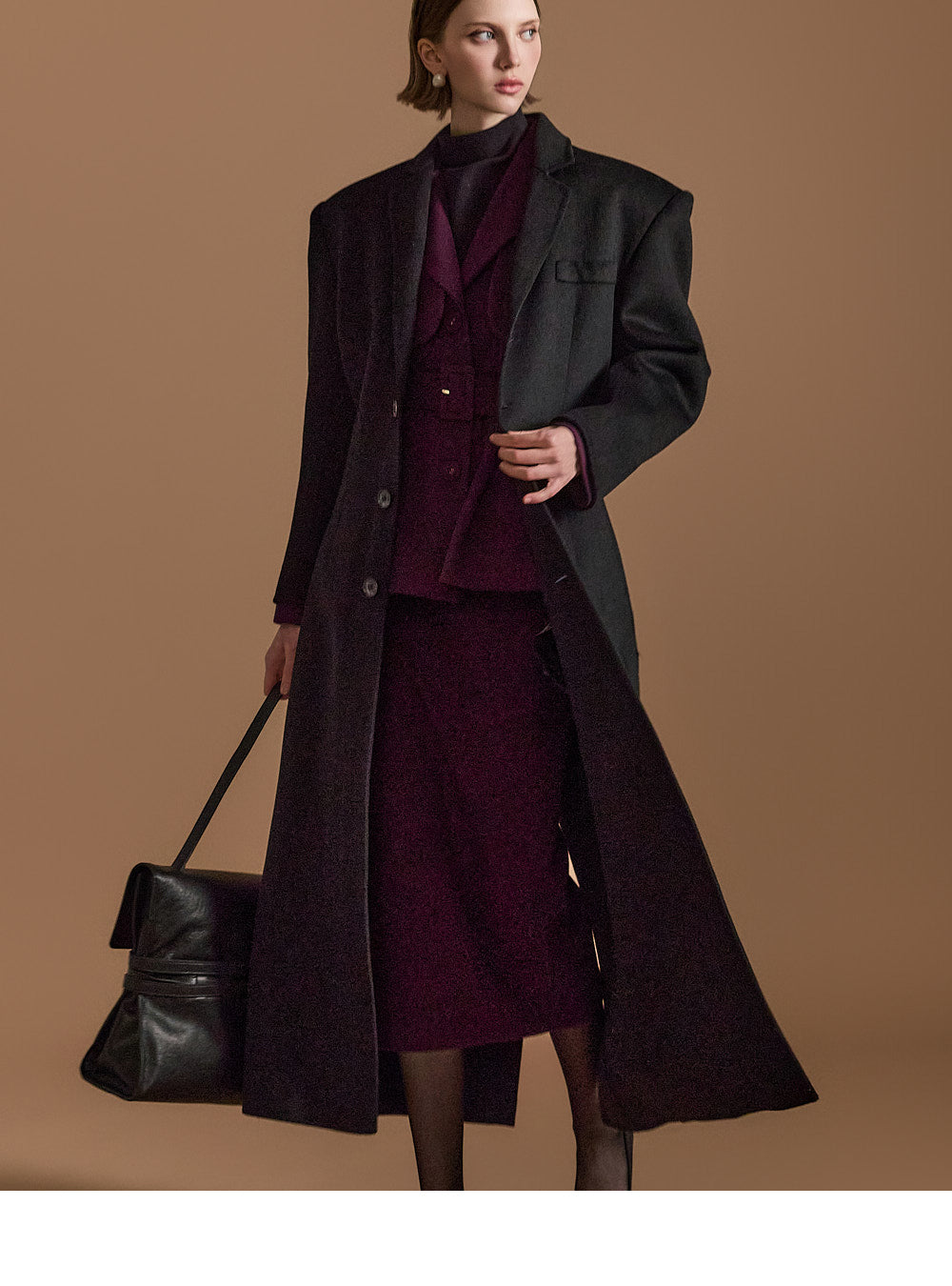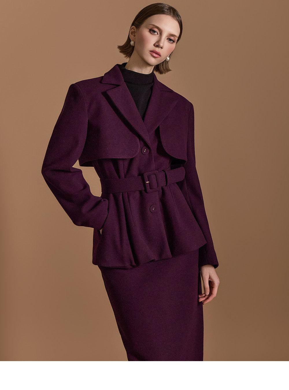 Model is 174cm tall, wearing size S in DARK PURPLE.