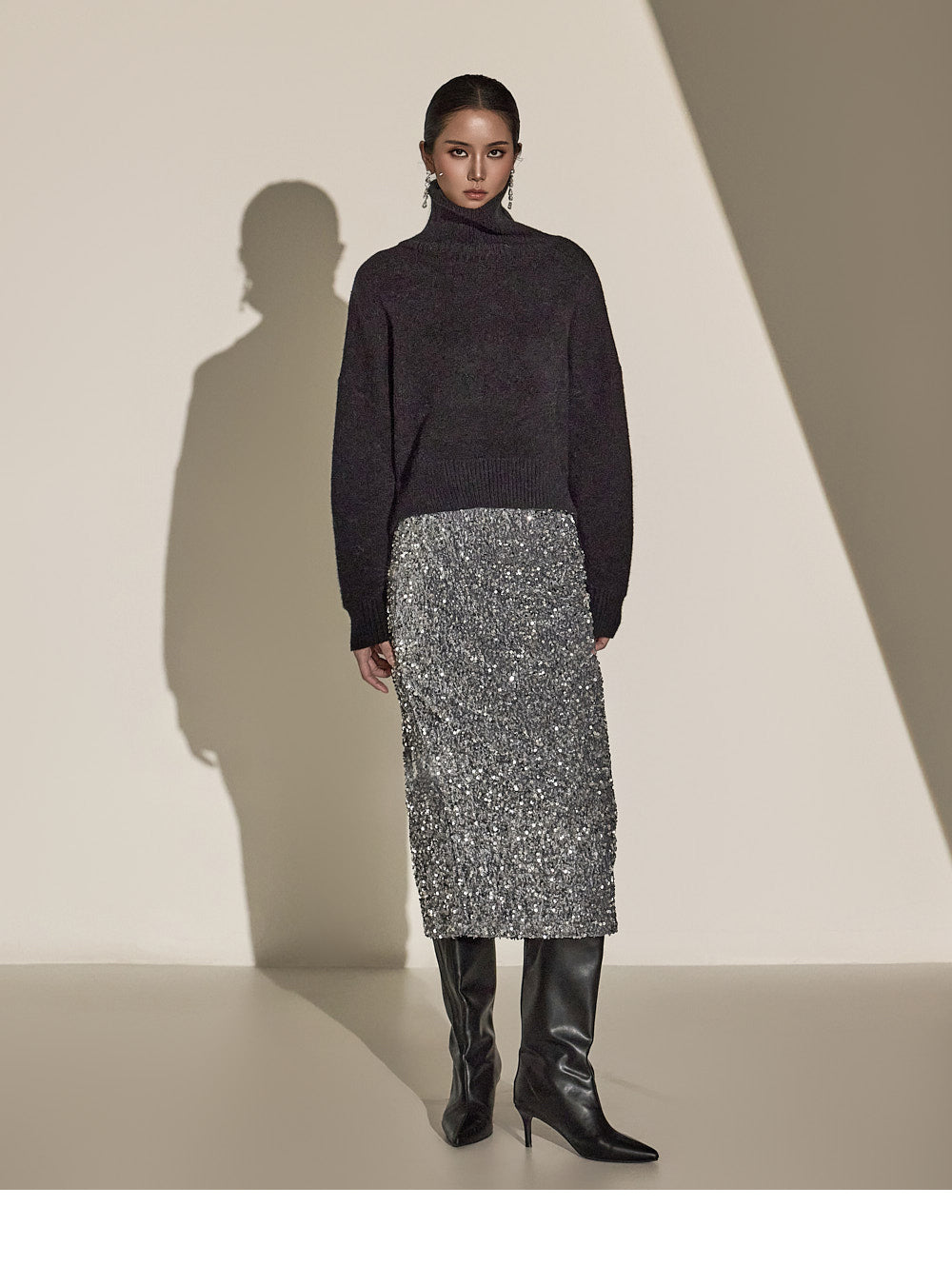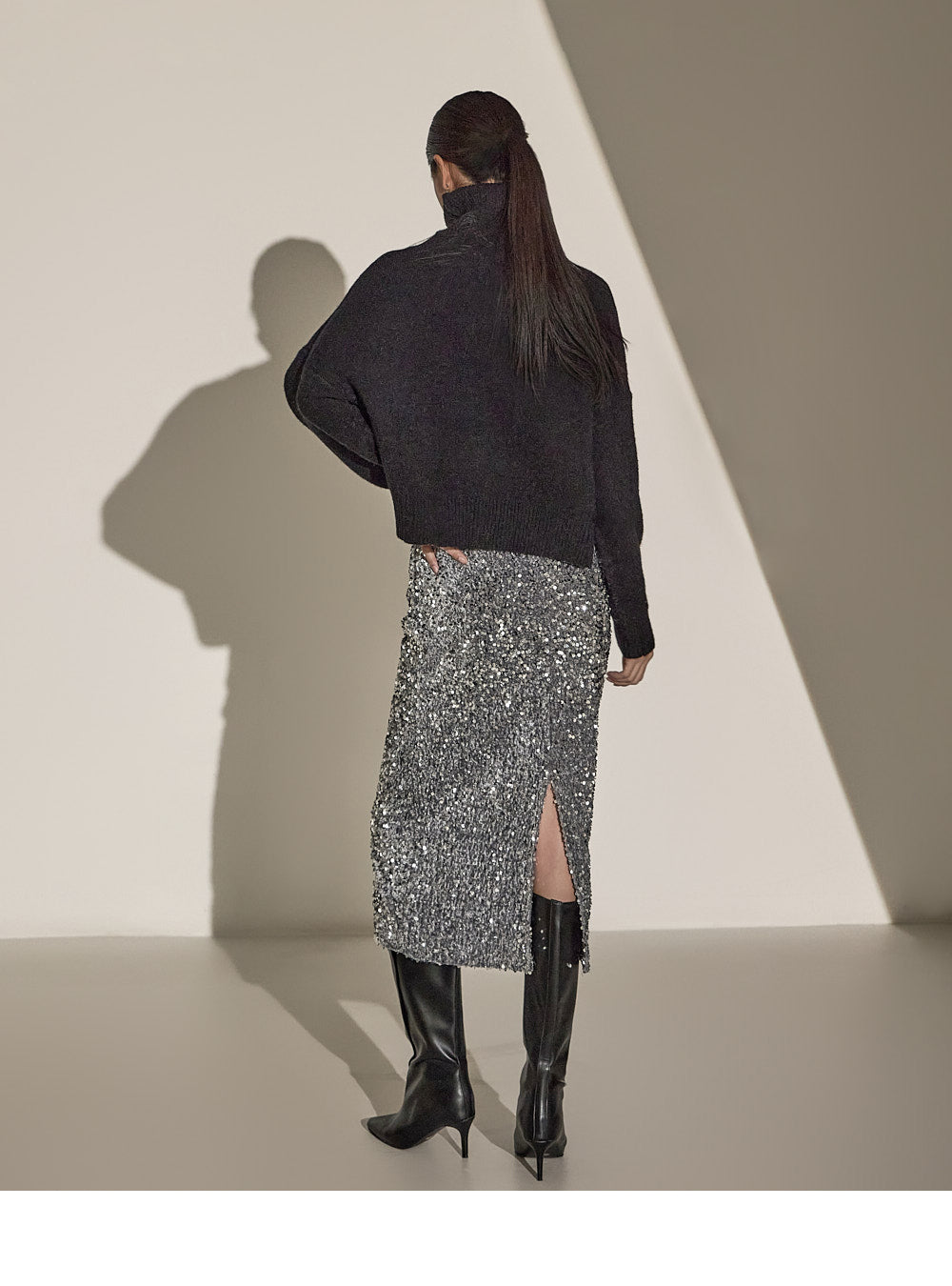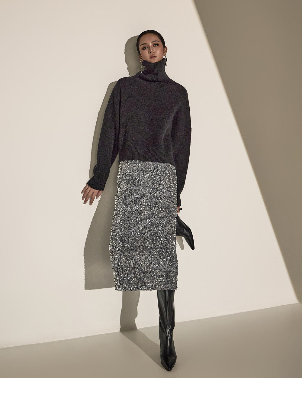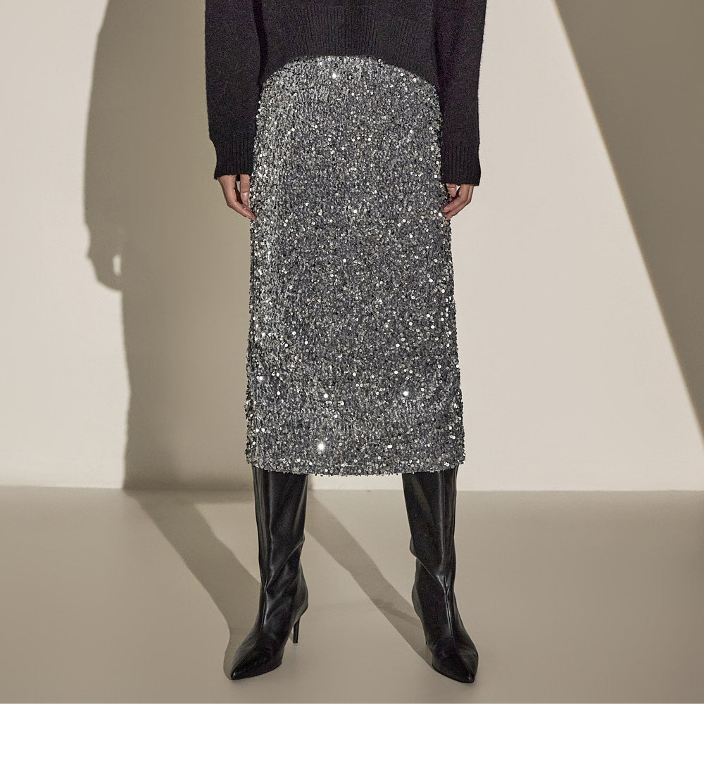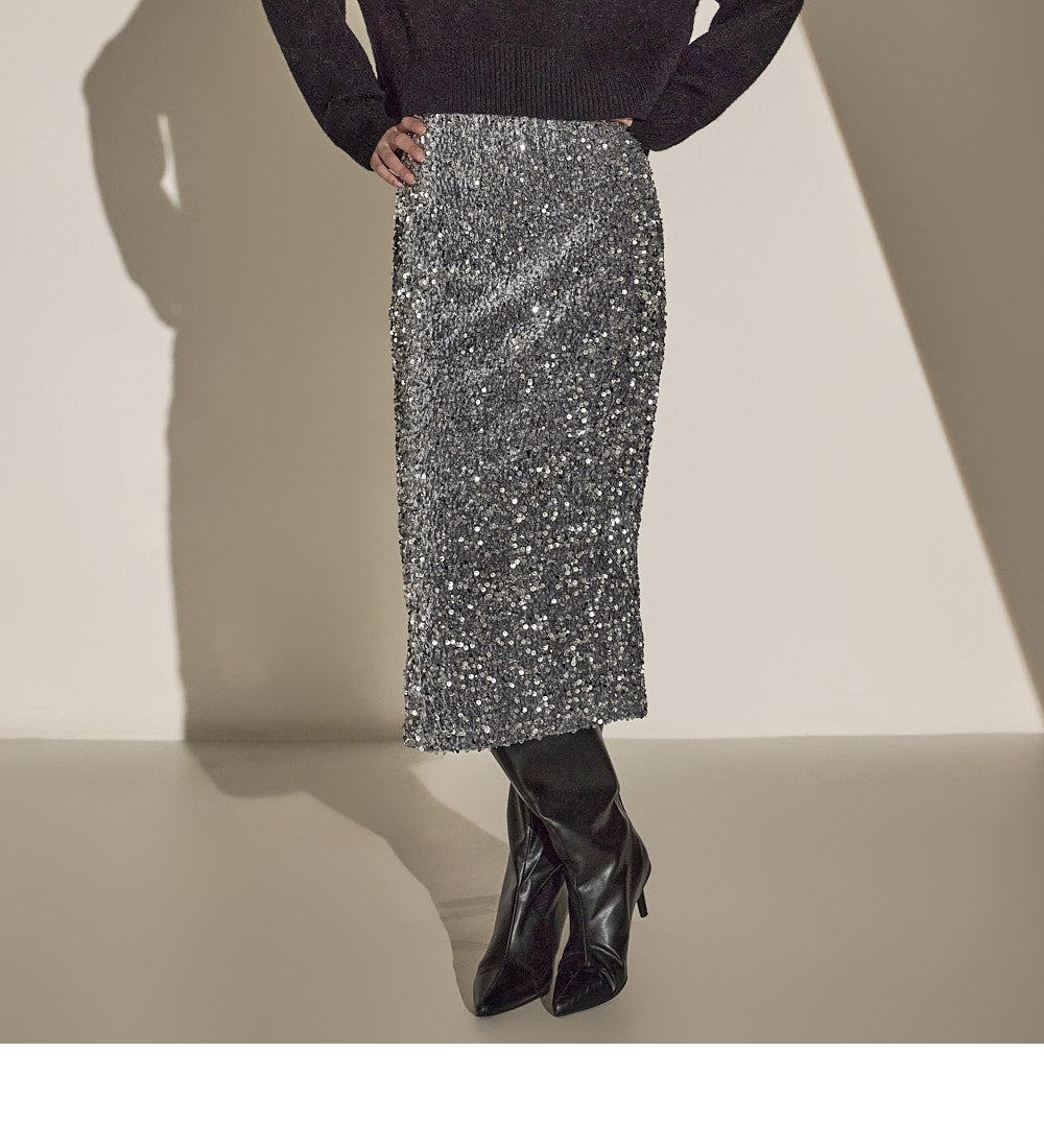 Made with sequin fabric, it enhances your style and pairs easily with a variety of tops.