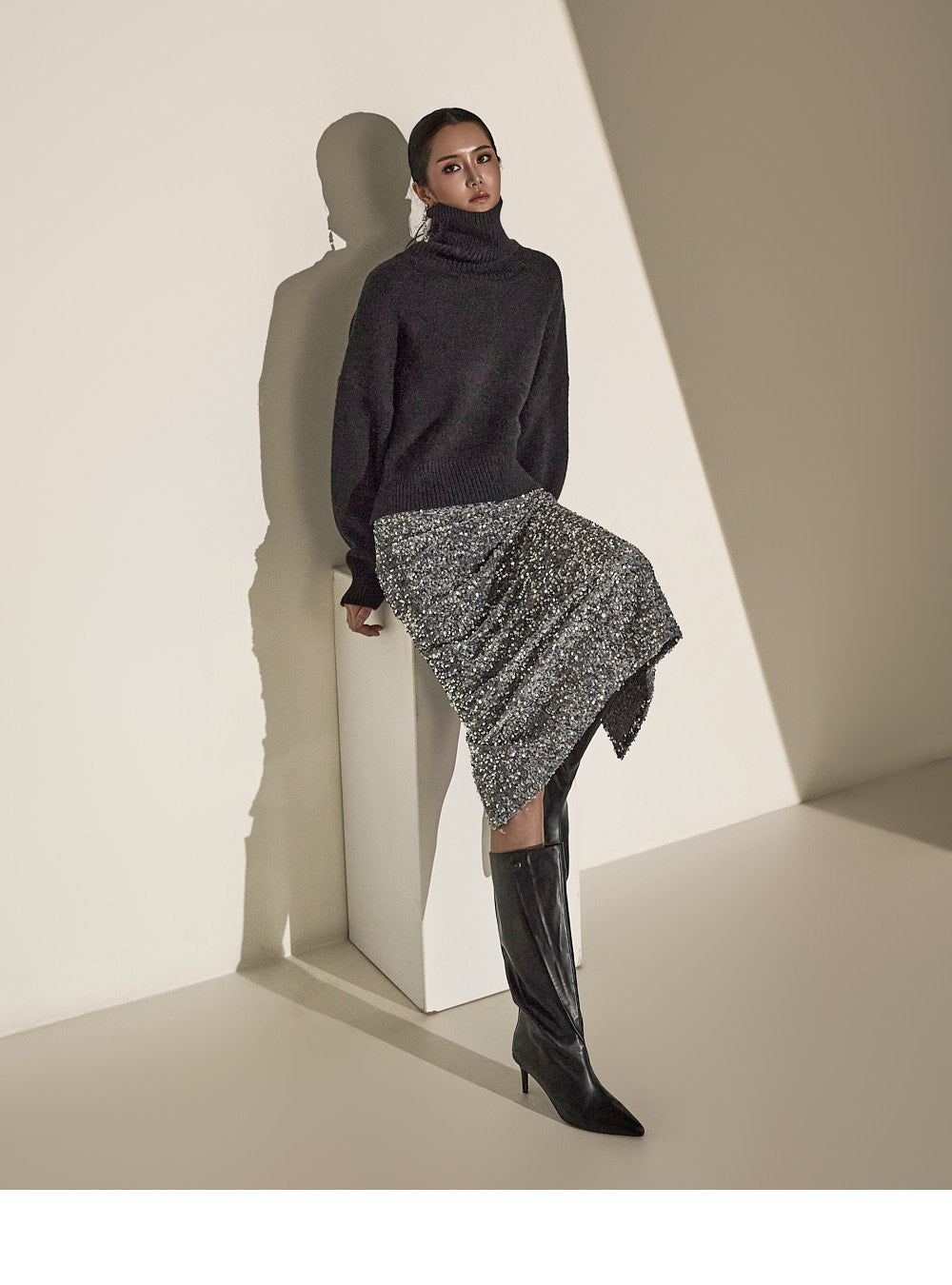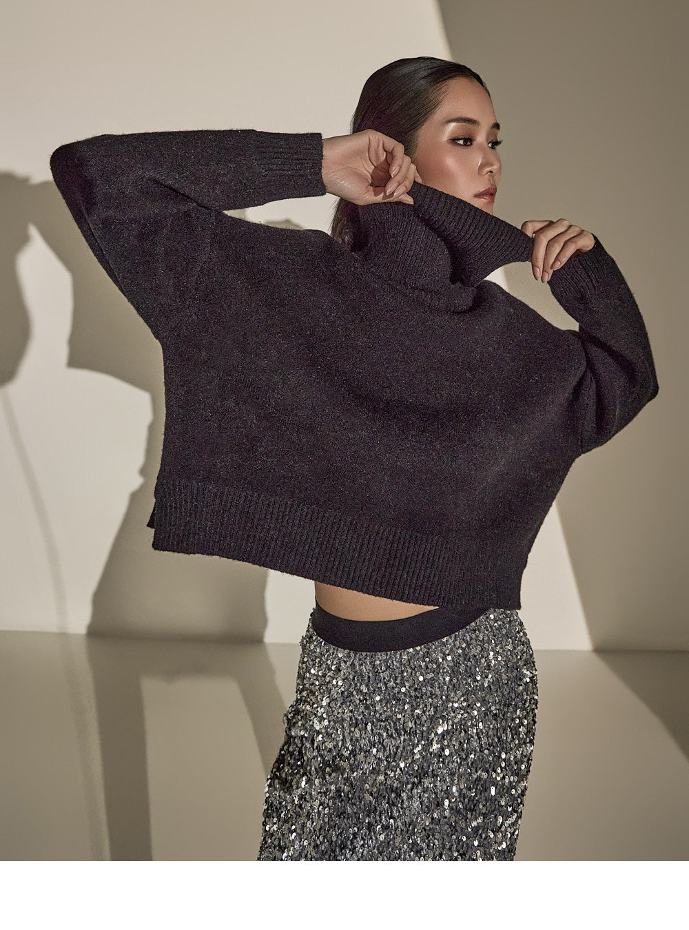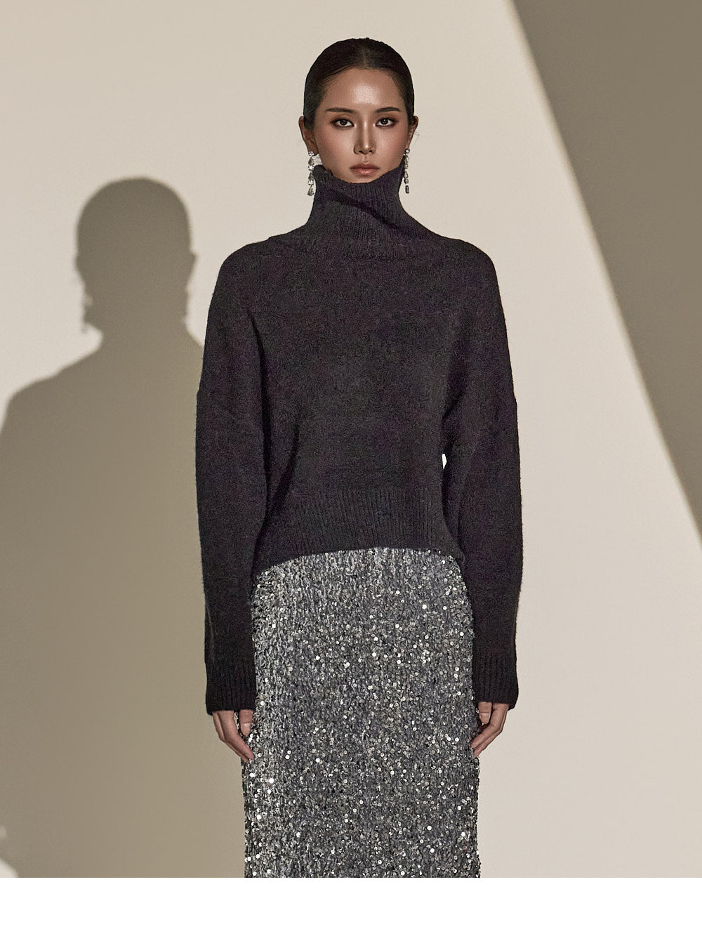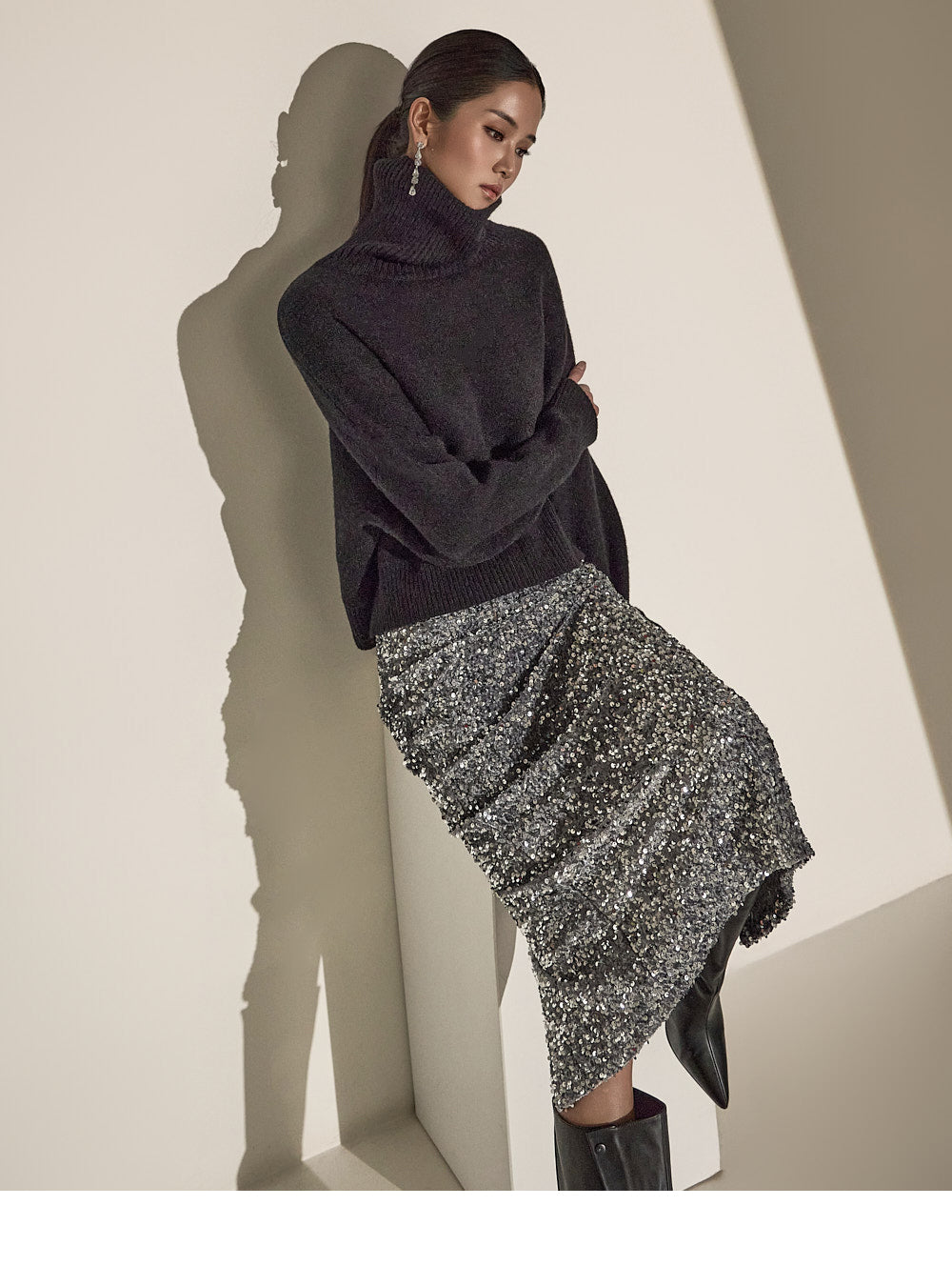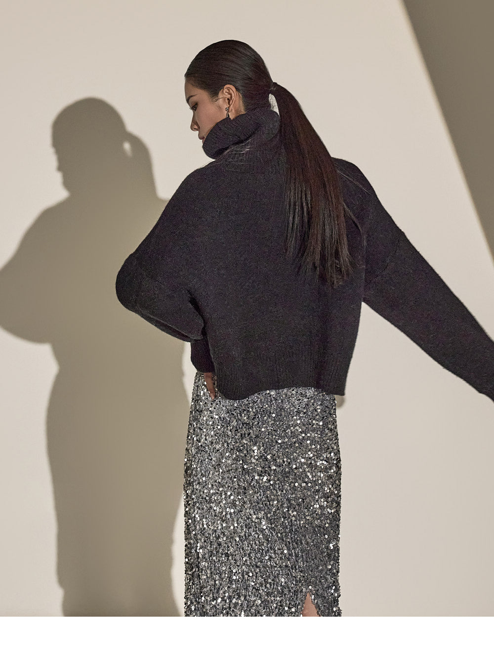 Made with sequin fabric, it enhances your style and pairs easily with a variety of tops.