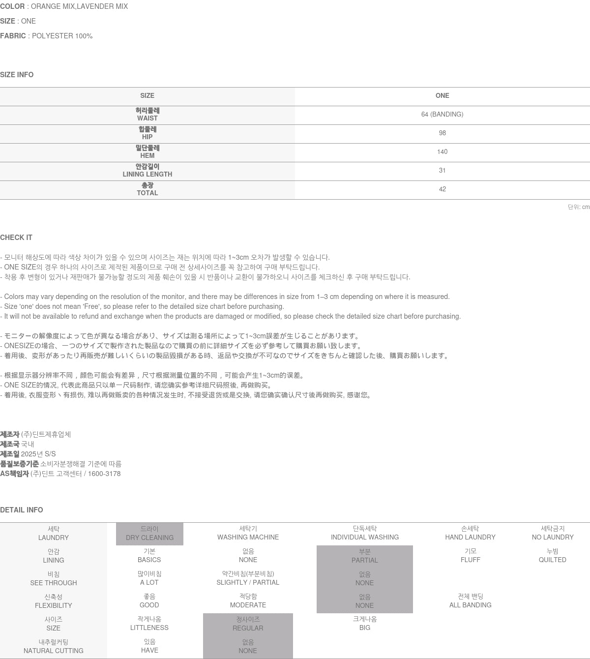 Clothing from DINT Co., Ltd. may become damaged or deformed if machine washed or tumble dried. We strongly recommend following the care instructions provided below.