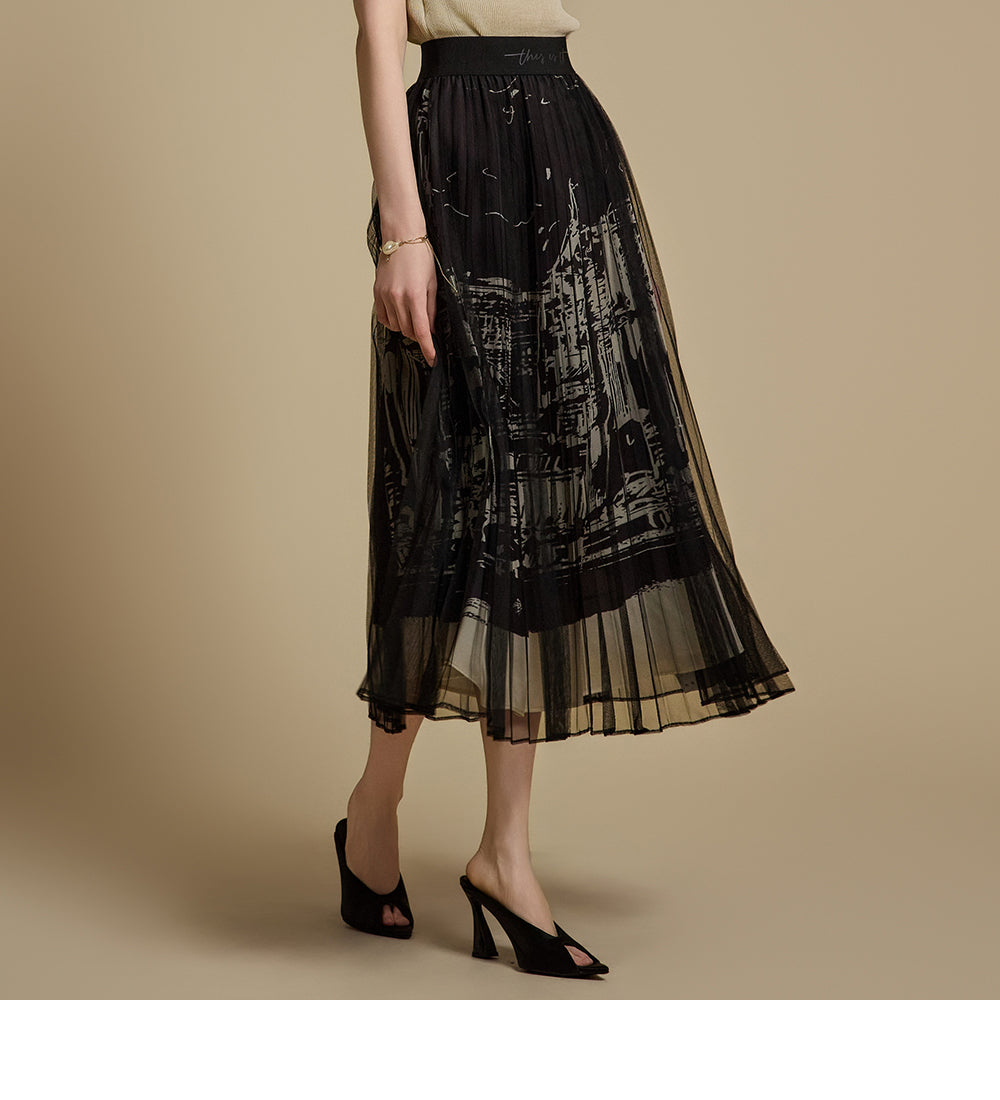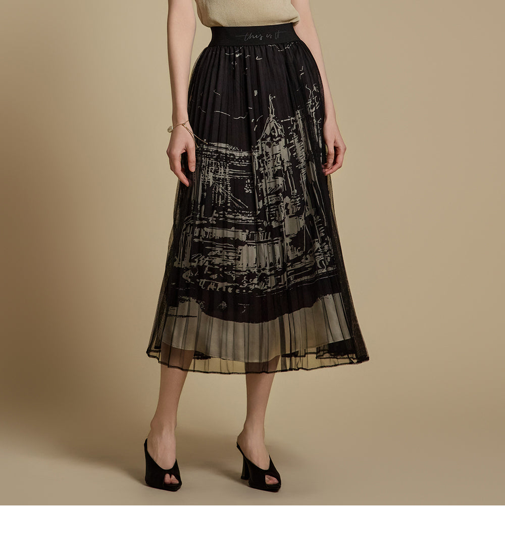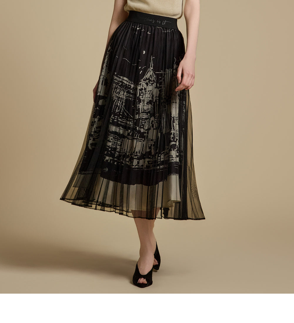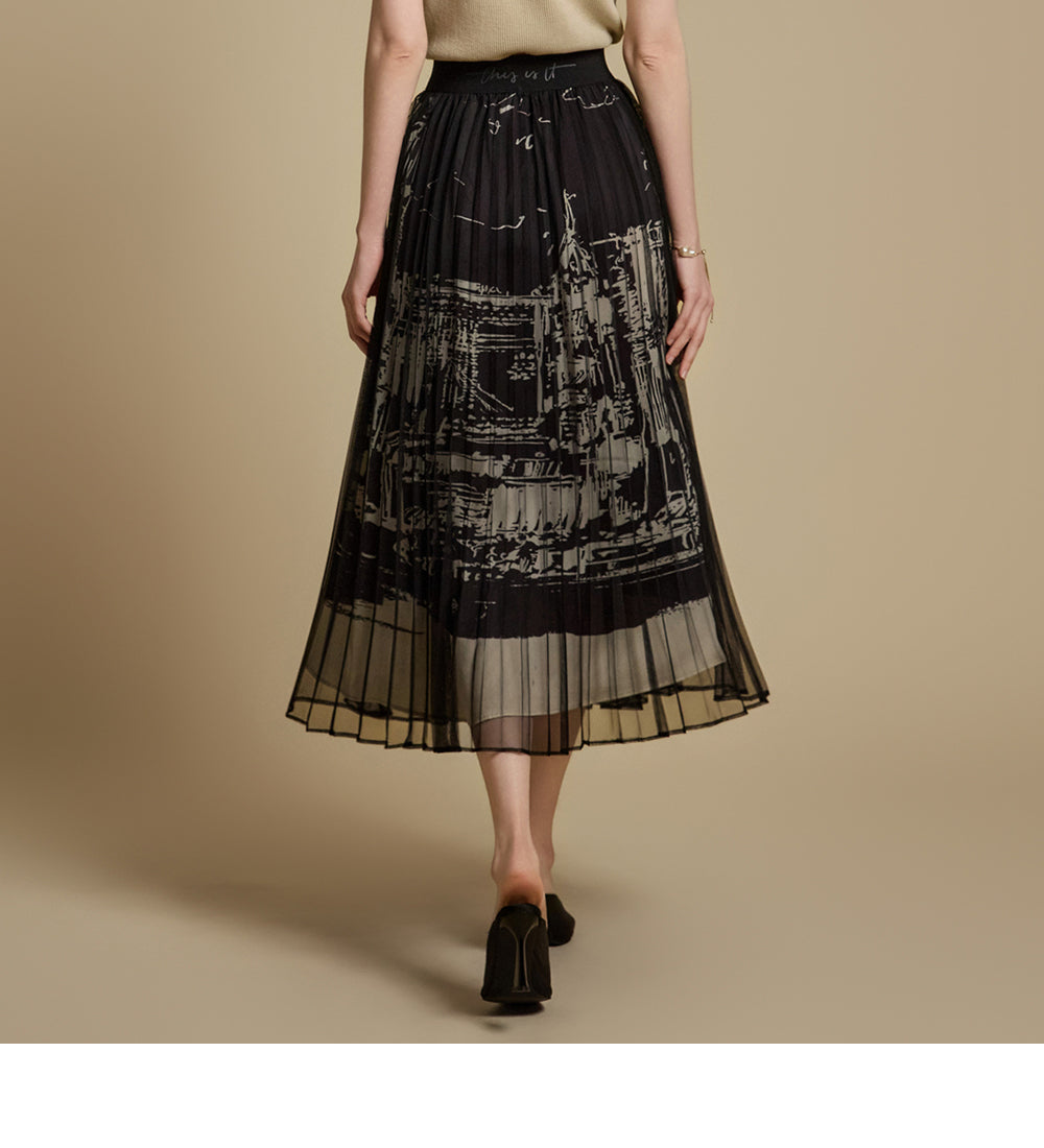 This printed pleated skirt offers a refined and stylish look.