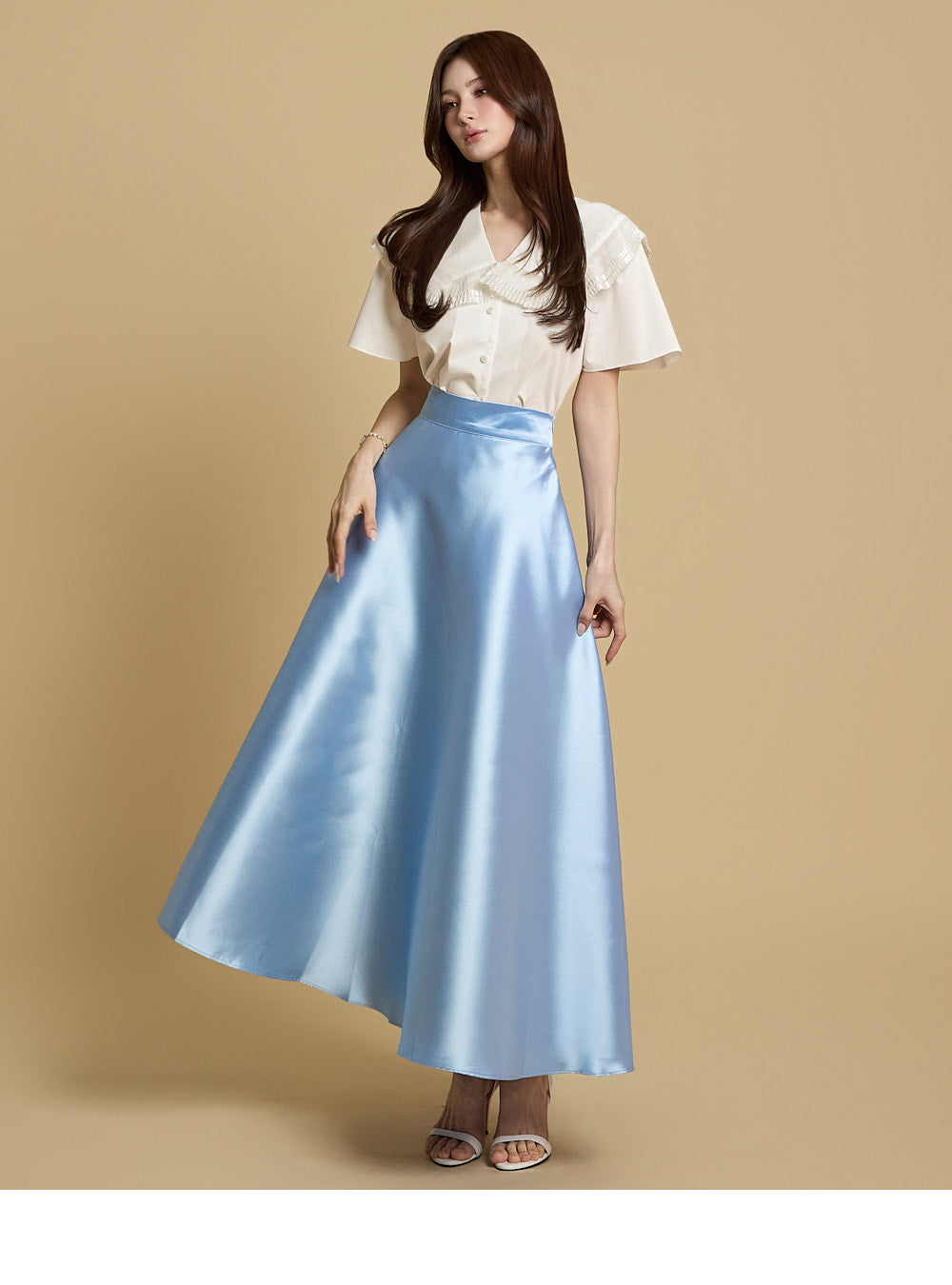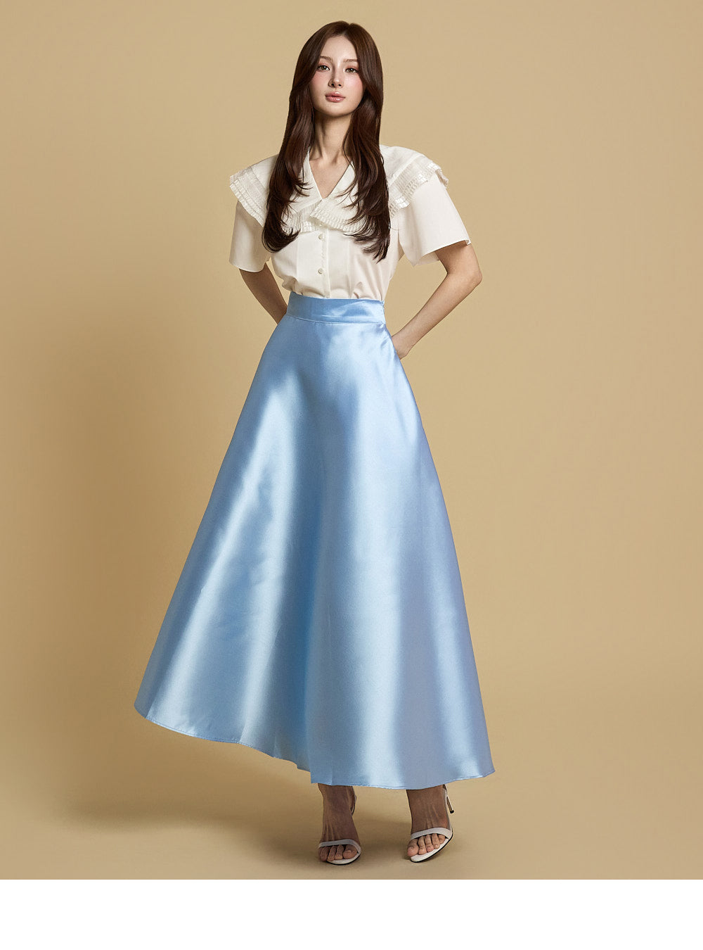 The flared silhouette naturally spreads out,