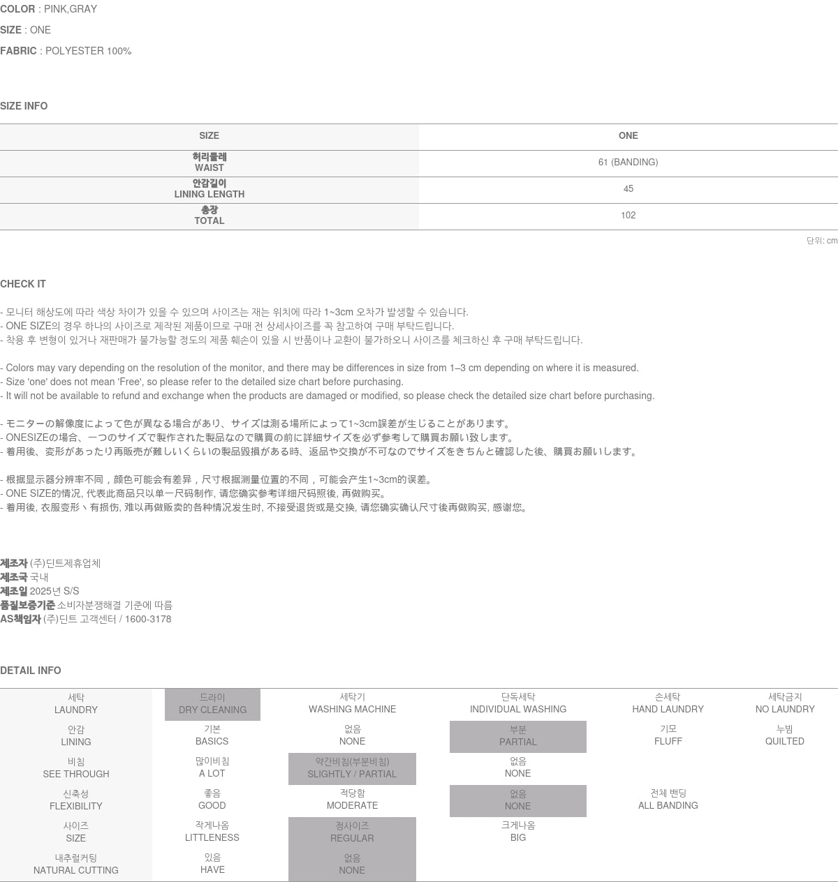 Clothing from DINT Co., Ltd. may become damaged or deformed if machine washed or tumble dried. We strongly recommend following the care instructions provided below.