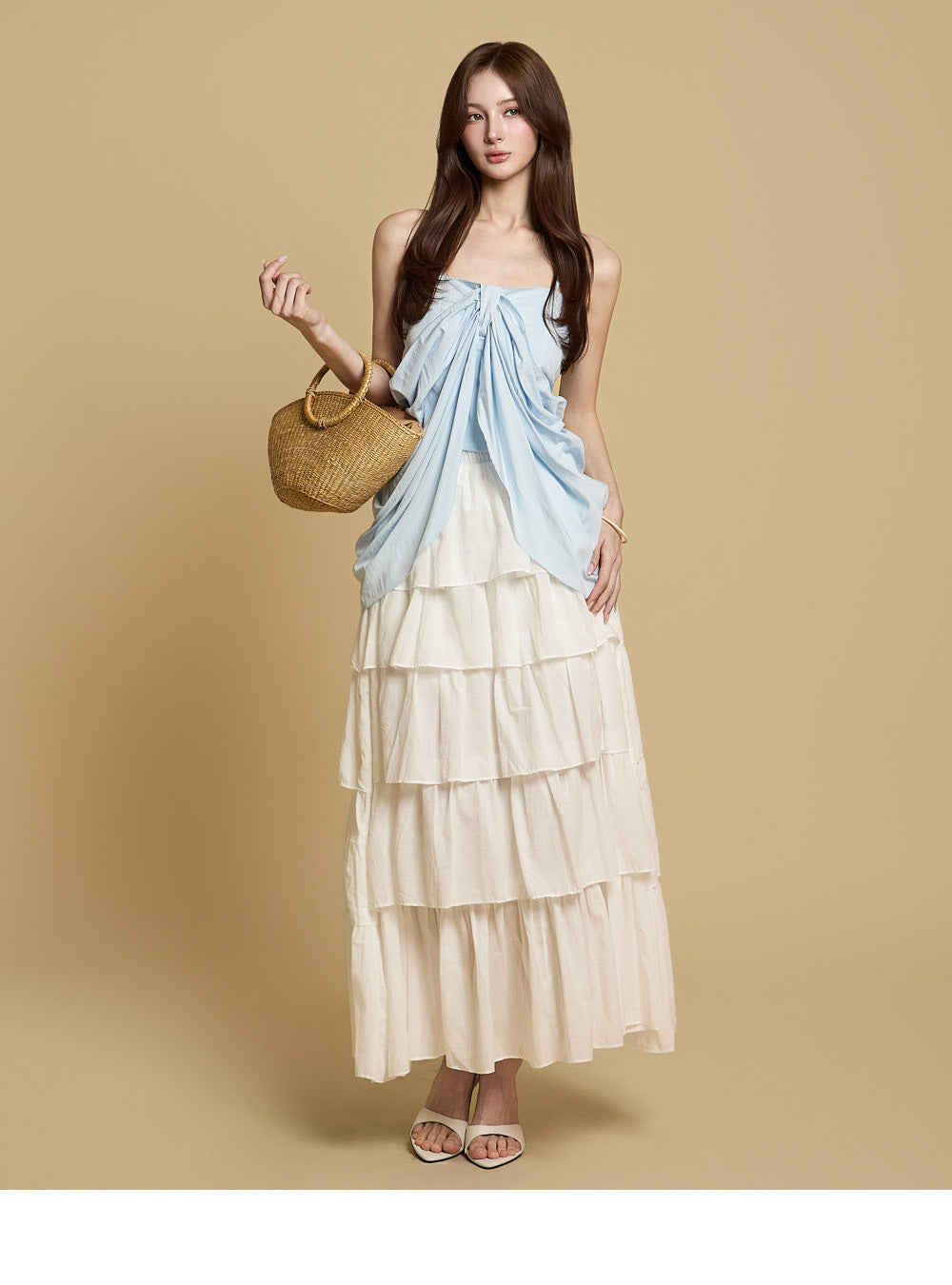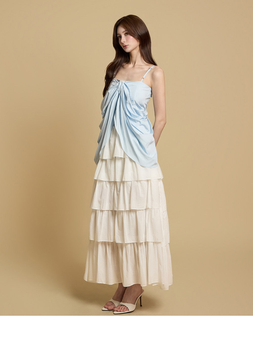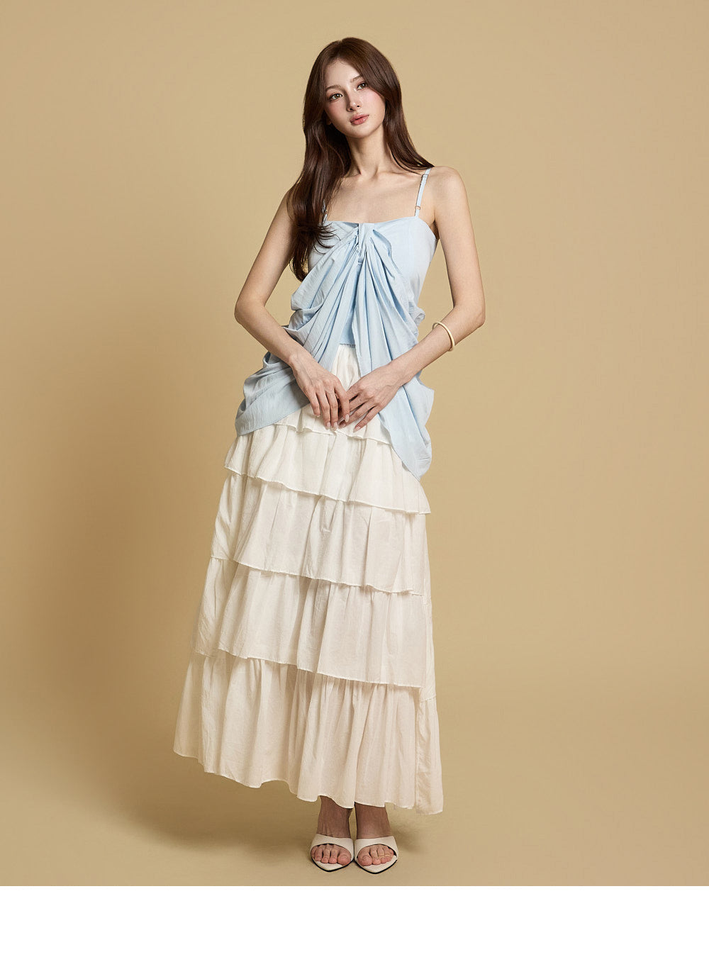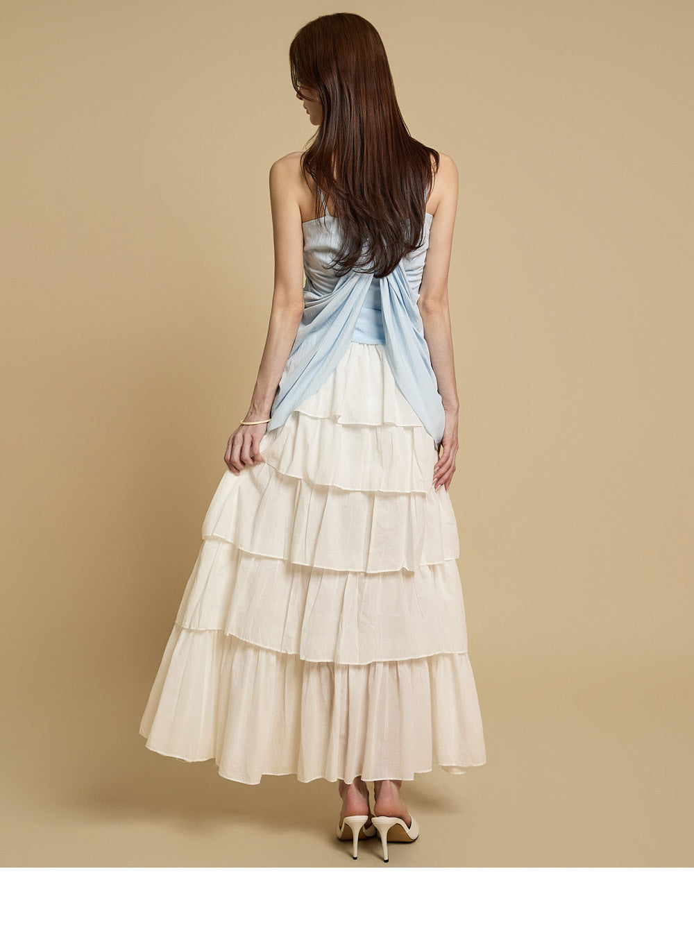 The naturally flared tiered design creates a lovely and playful silhouette,