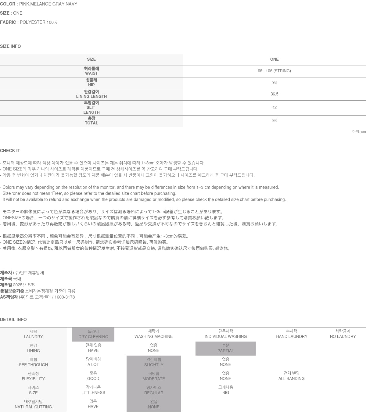 Clothing from DINT Co., Ltd. may become damaged or deformed if machine washed or tumble dried. We strongly recommend following the care instructions provided below.