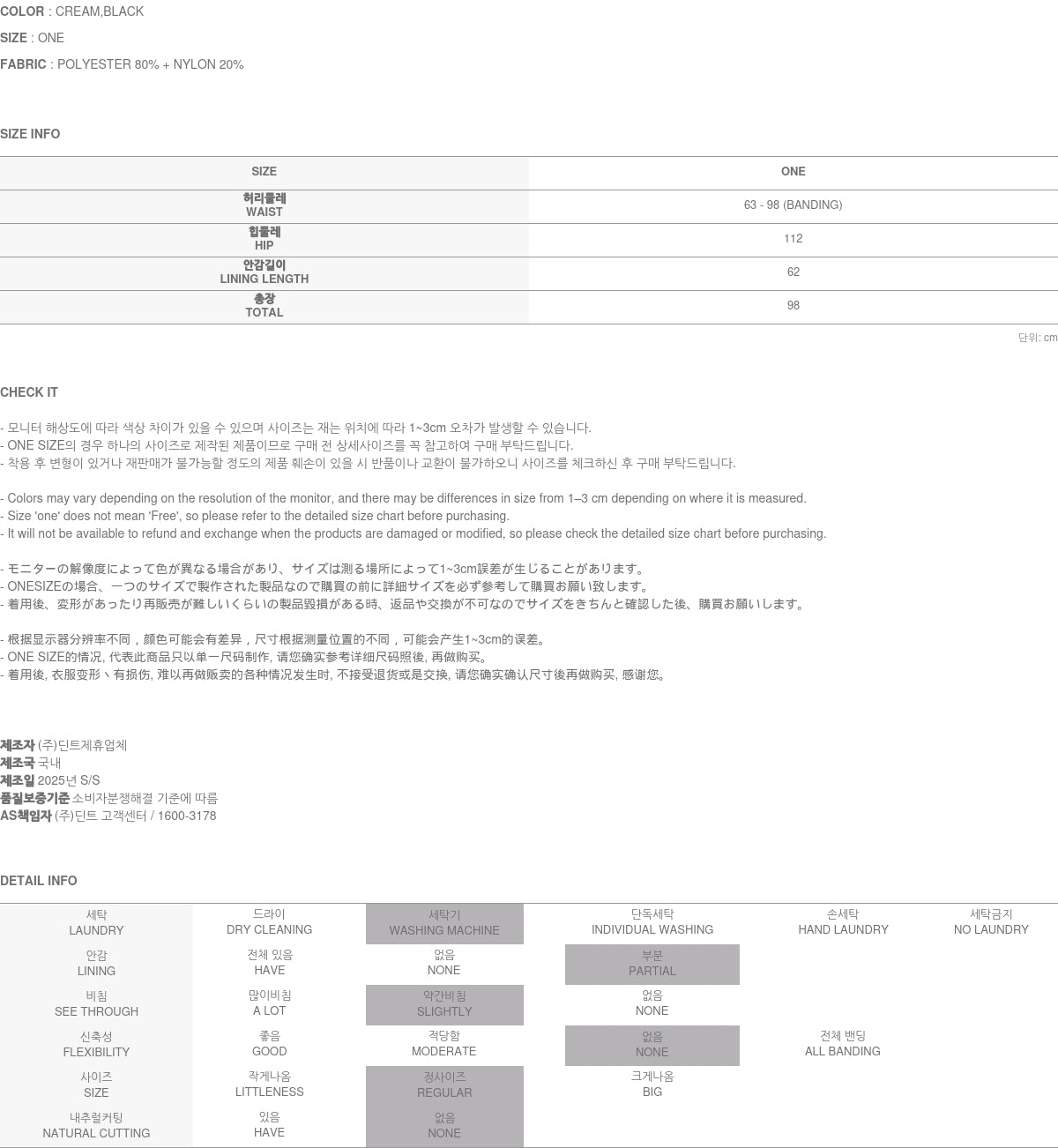 Clothing from DINT Co., Ltd. may become damaged or deformed if machine washed or tumble dried. We strongly recommend following the care instructions provided below.