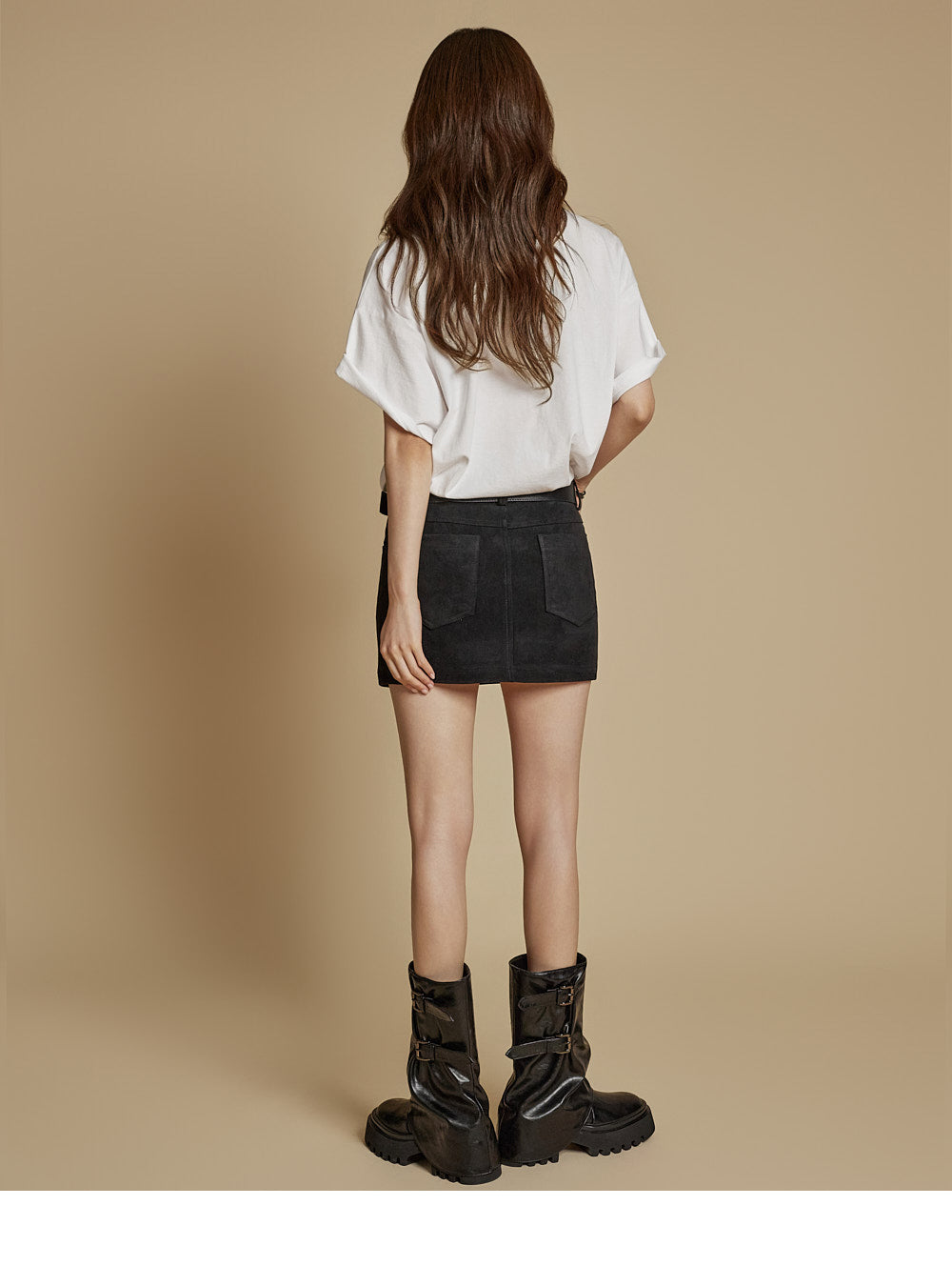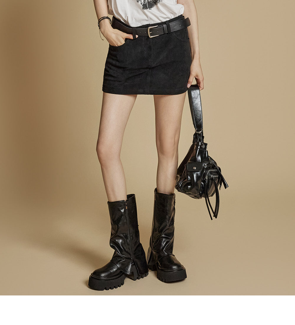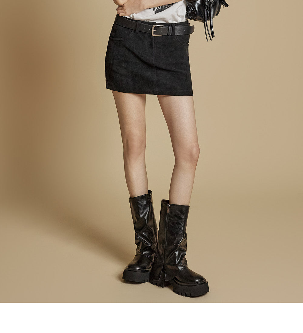 This is a modern-style suede skirt.