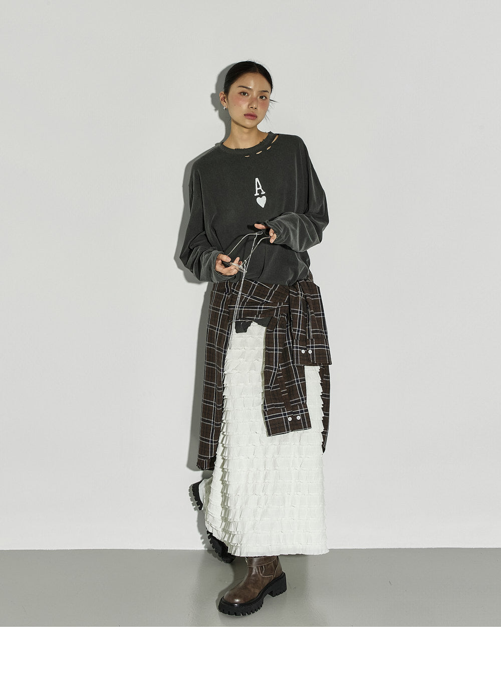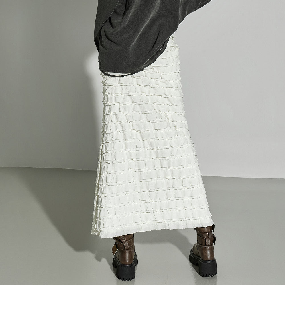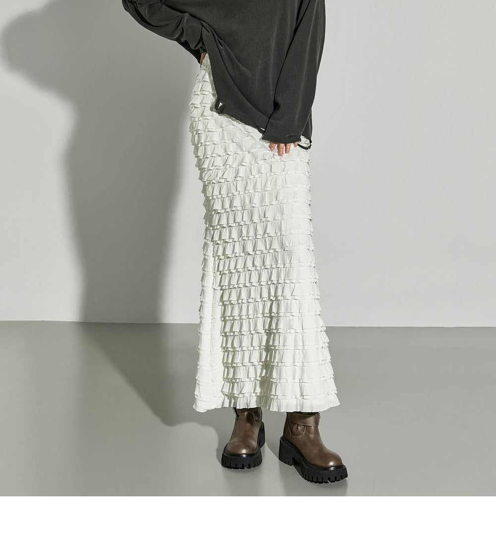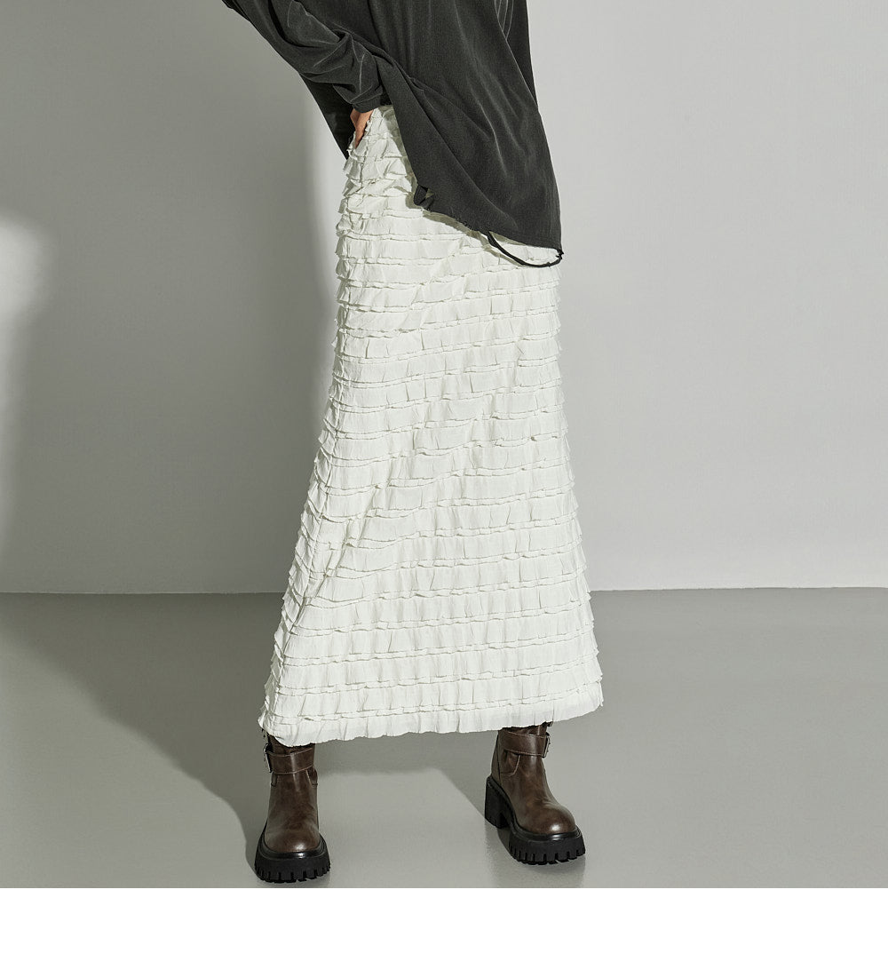This ruffled long skirt has a unique vibe.