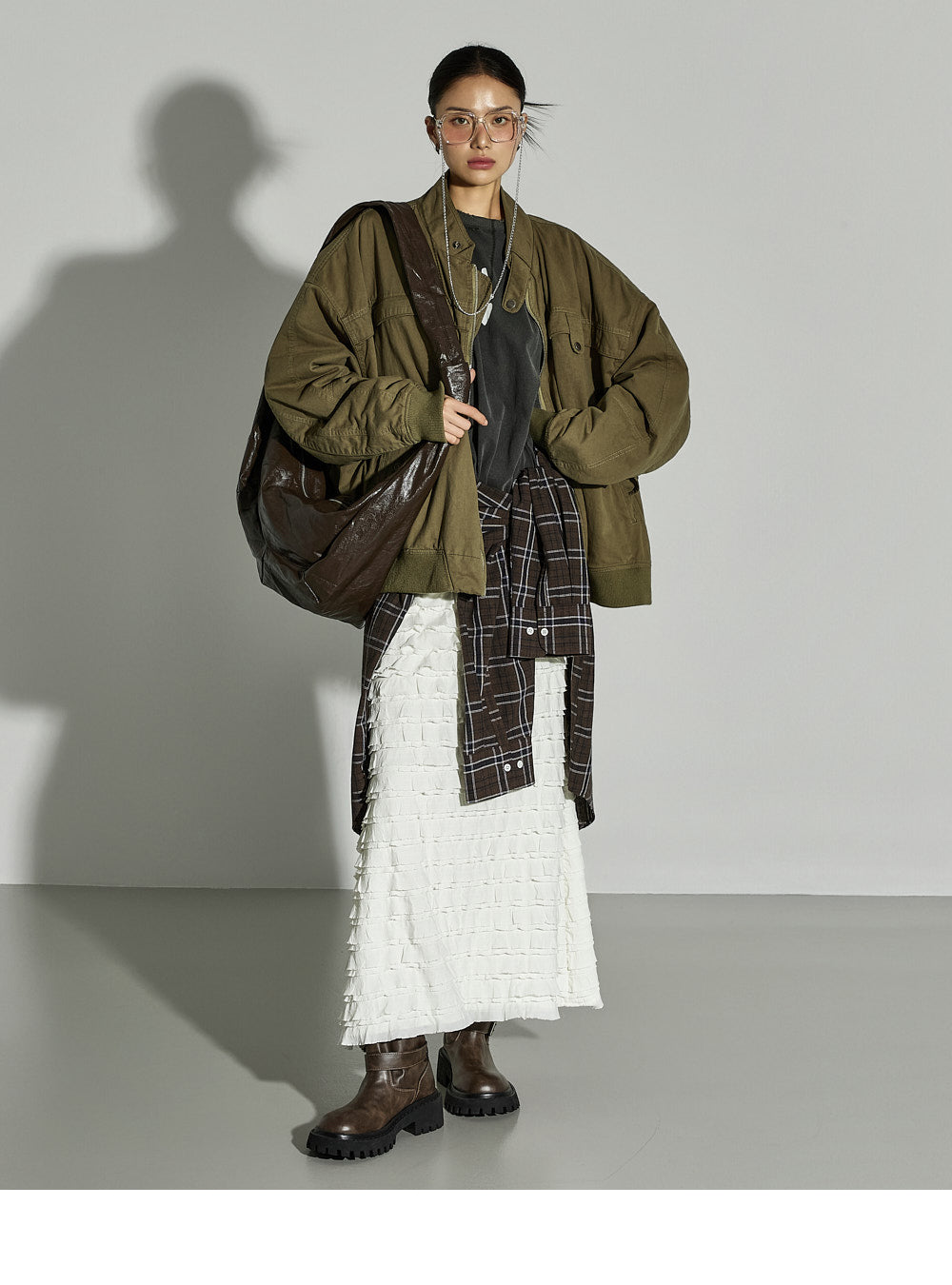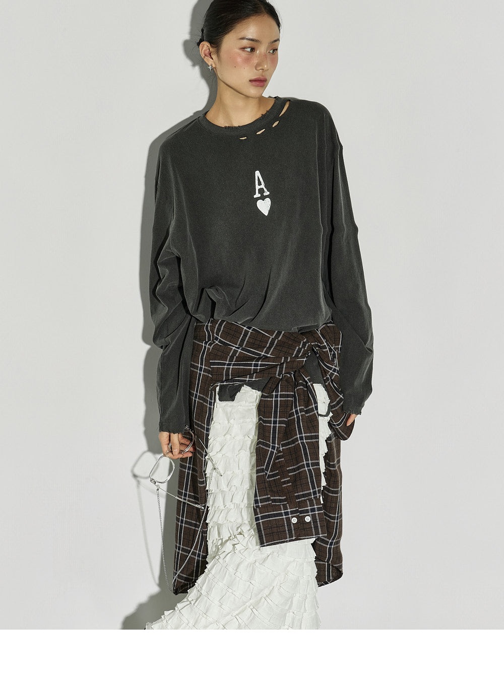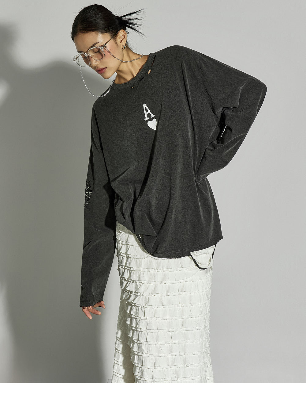 This ruffled long skirt has a unique vibe.