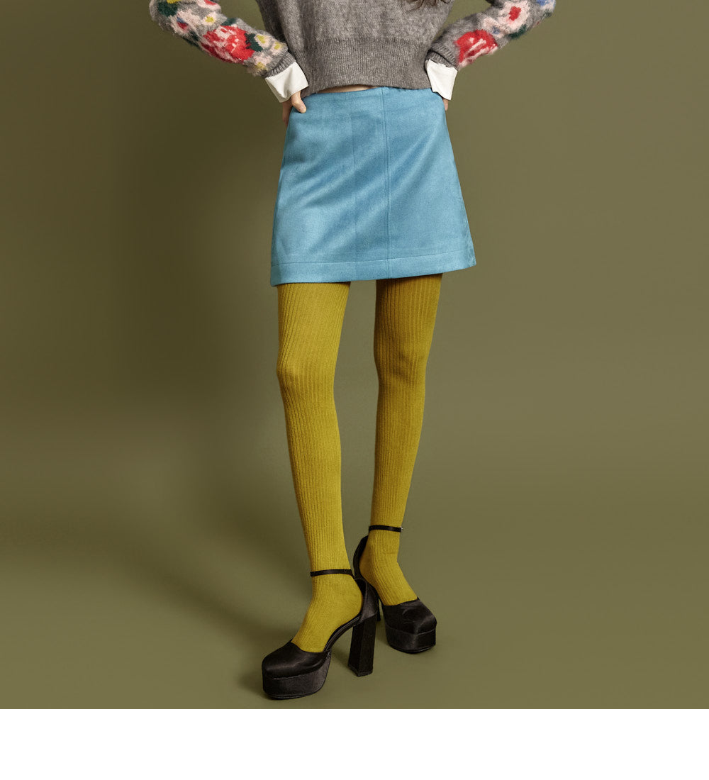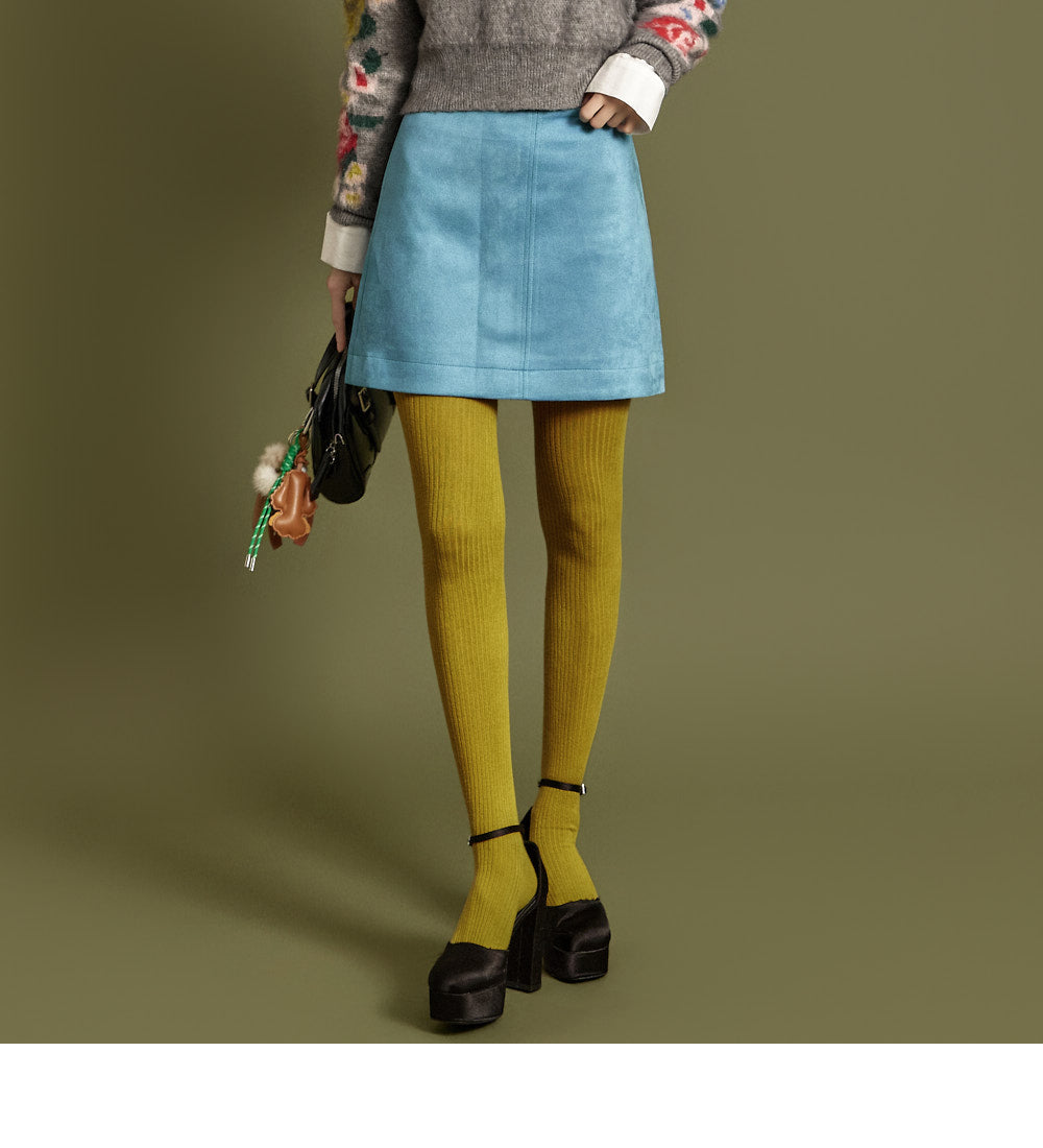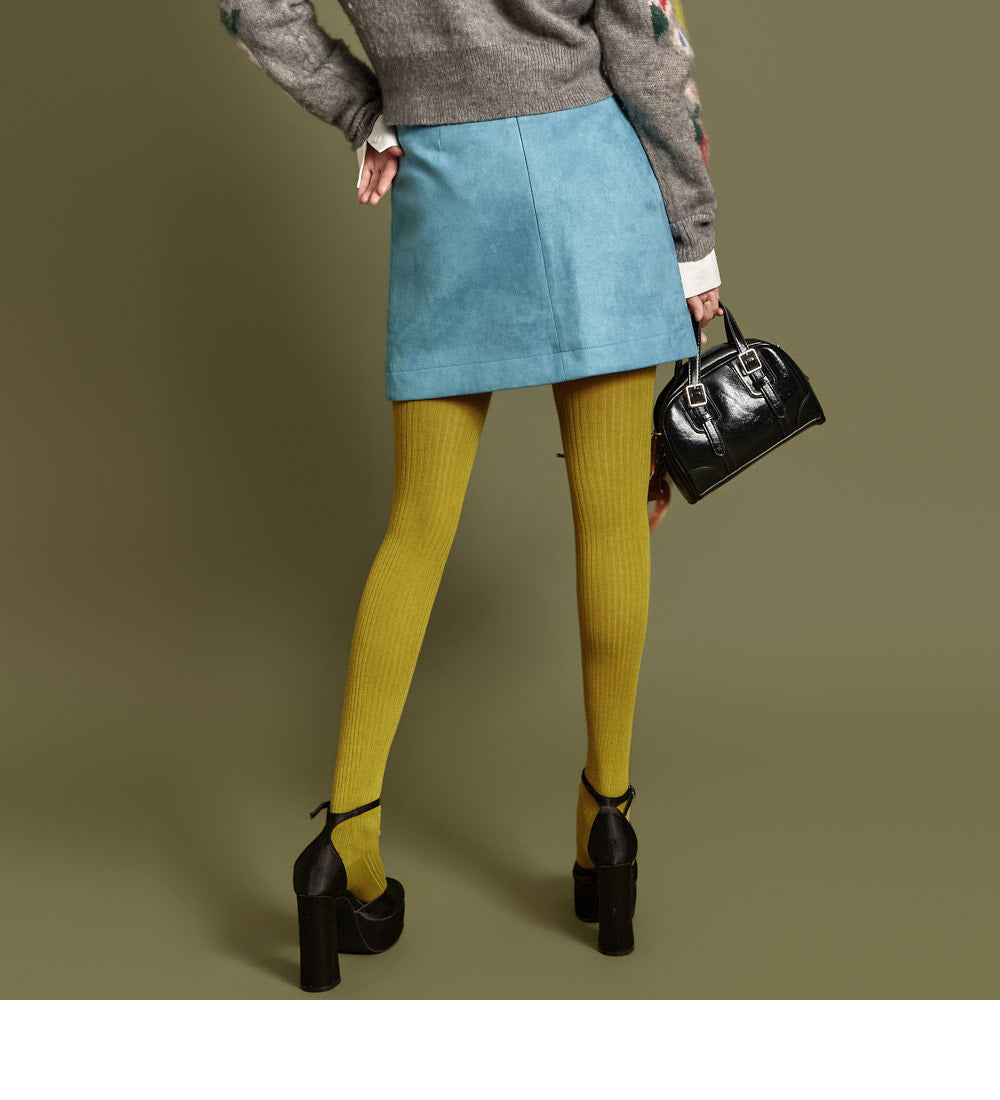 This suede mini skirt exudes a casual vibe.