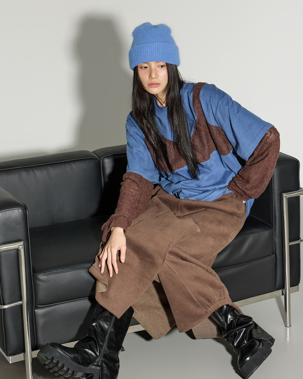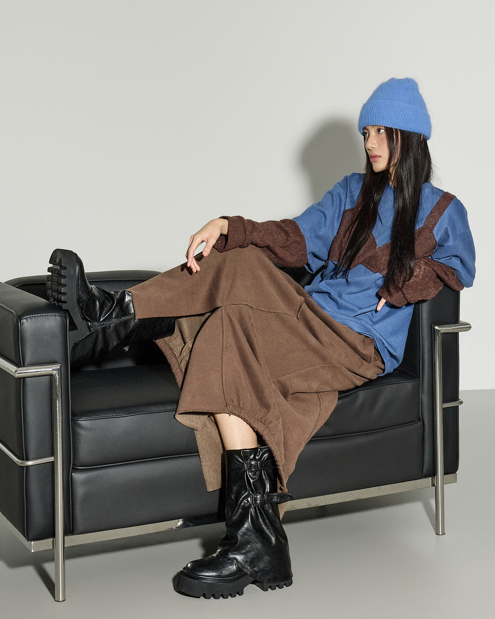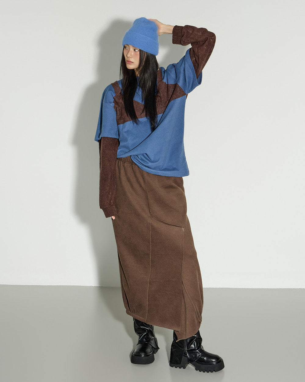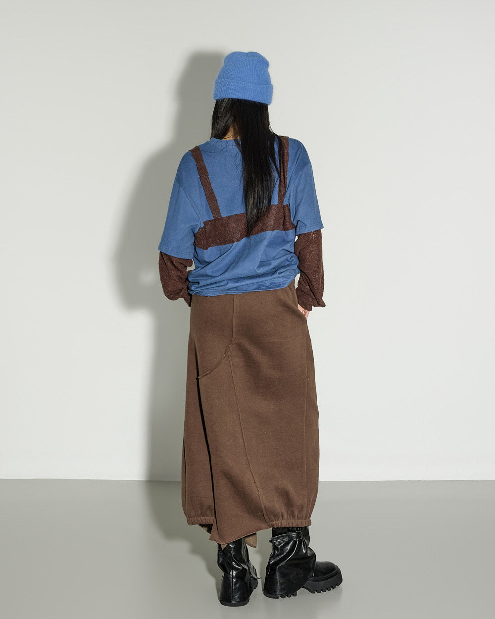 A casual asymmetric fleece-lined skirt with a relaxed mood.