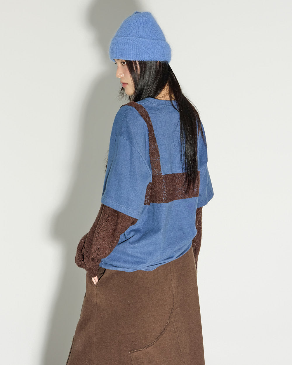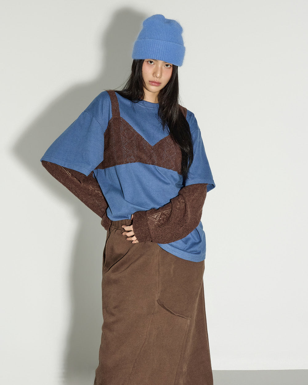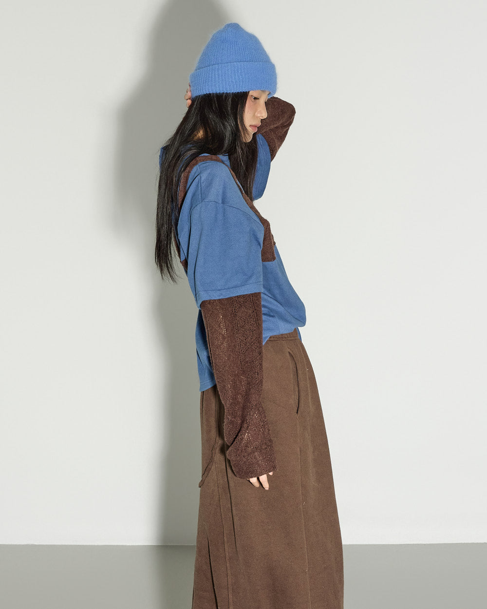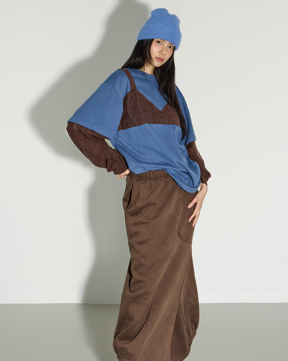 A casual asymmetric fleece-lined skirt with a relaxed mood.