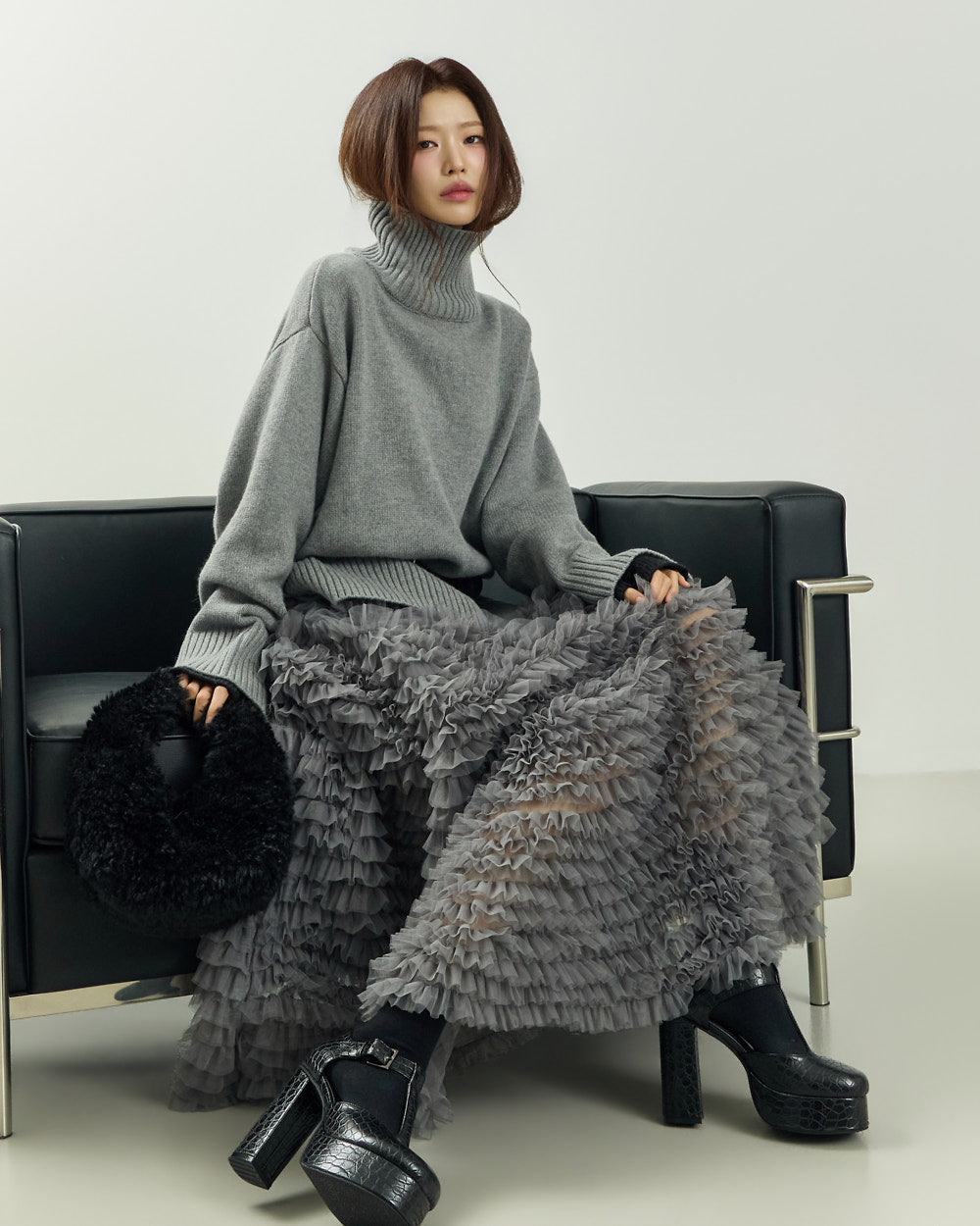 This lovely tiered long skirt is perfect for both statement looks and date nights.