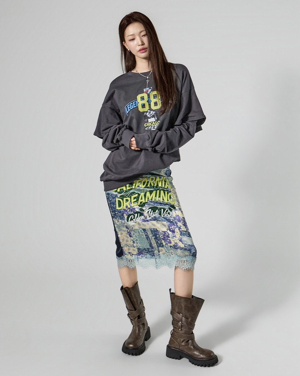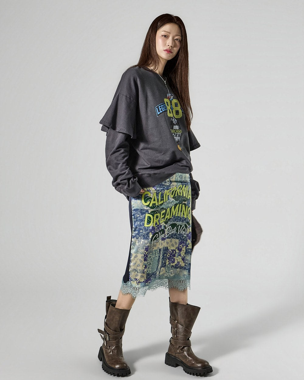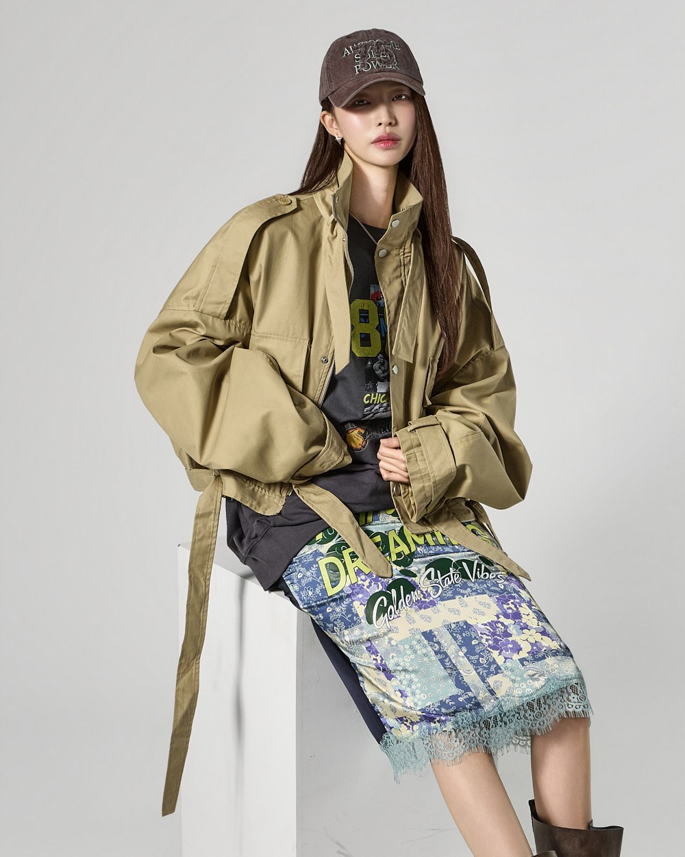 This lace skirt exudes a chic and unique style.