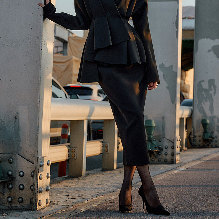 This is a stylish midi skirt that's perfect for a sophisticated look.